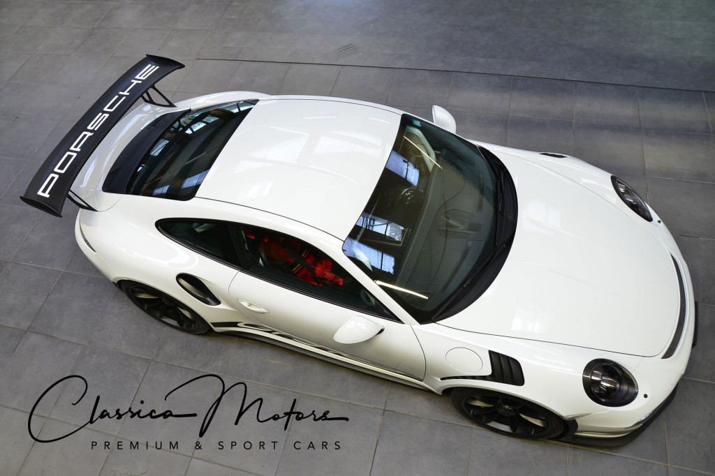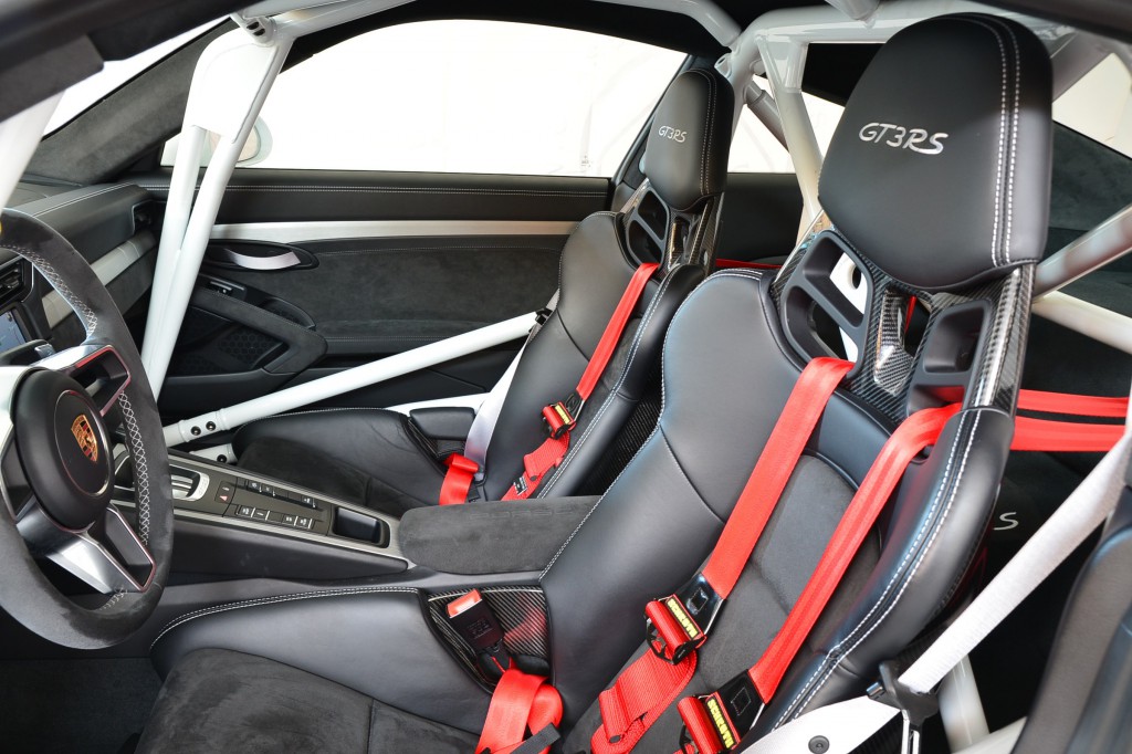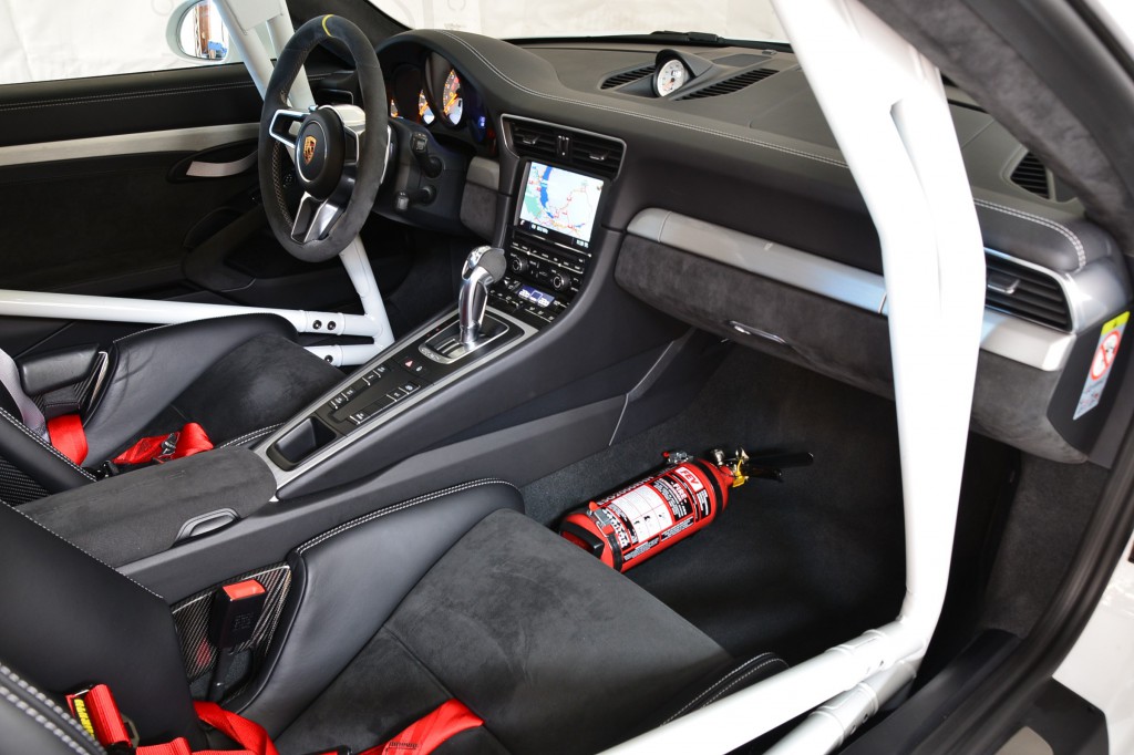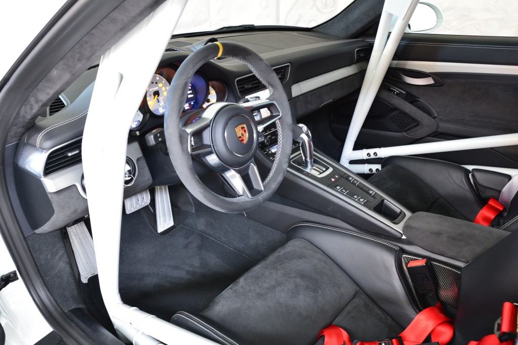Equipement complet dont le covering de protection du bloc avant, le couvercle de la console en Alcatara avec le monogramme Porsche, le pack ClubSport avec cage complète en blanc, les seuils de porte en acier spécial éclairés, les feux à Led fumés et feux dynamiques, le navigation système PCM & Bluetooth, les freins céramique PCCB, le pack Chrono Plus avec le fond blanc, le rétroviseur intérieur automatique, les jantes peintes en noir satiné mat, le bouchon du réservoir AluDesign, la console centrale en alu brossé, les fonds des compteurs en blanc, les feux arrières translucides, le pack intérieur aluminium, le lift système, le pack, éclairage intérieur, le pédalier en aluminium, les clefs de contact peintes, le réservoir 90 litres, la bande pare-soleil, les harnais 6 points, la batterie légère, Etc..