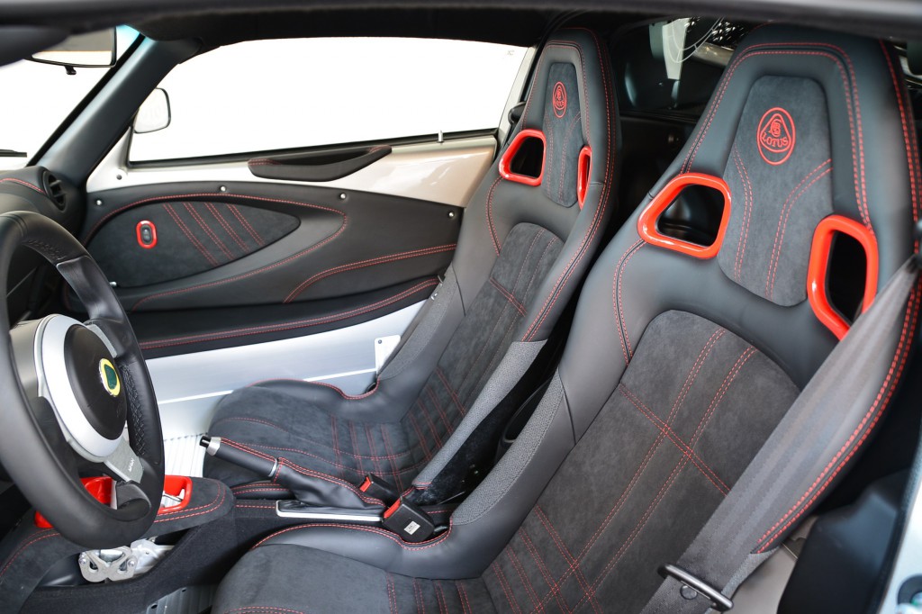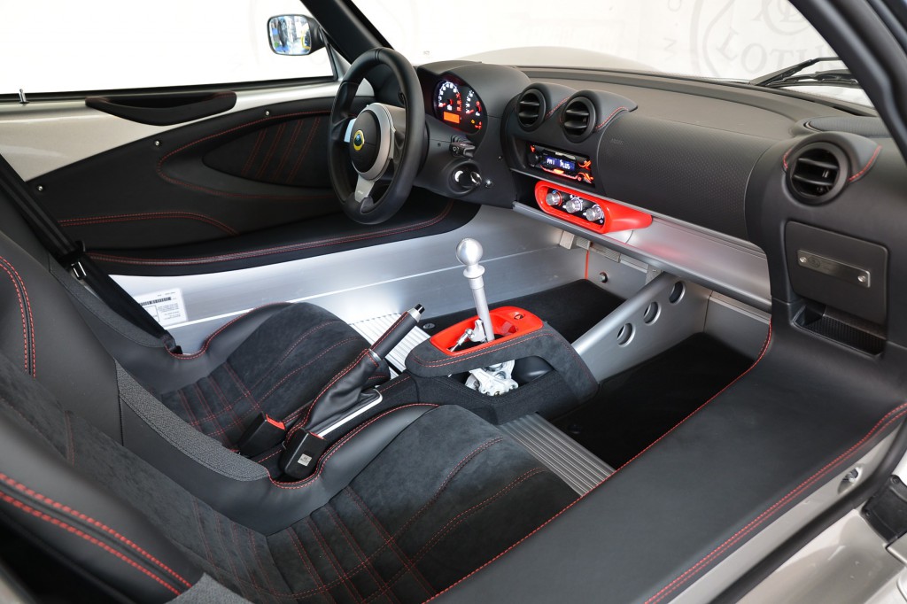 Couleur Full Evora Silver métallisé avec les sièges en Alcantara et les coutures rouges.