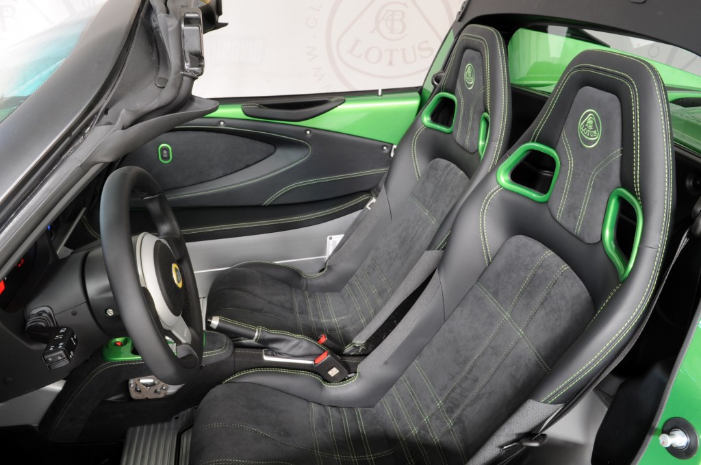 Vivid Green métallisé avec les sièges en Alcantara et coutures vertes.