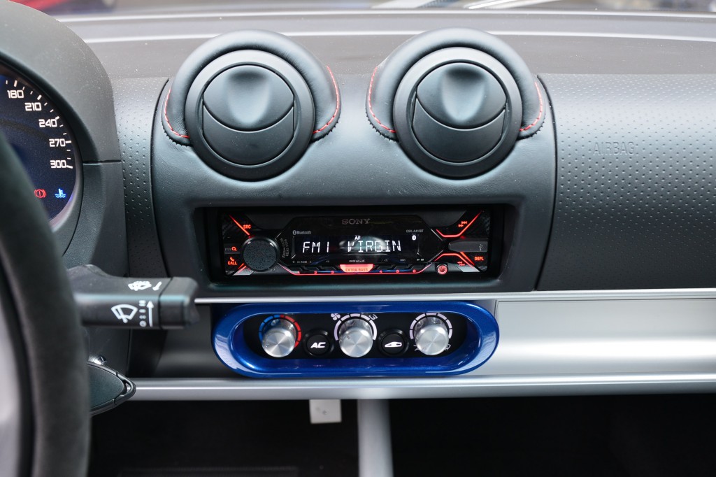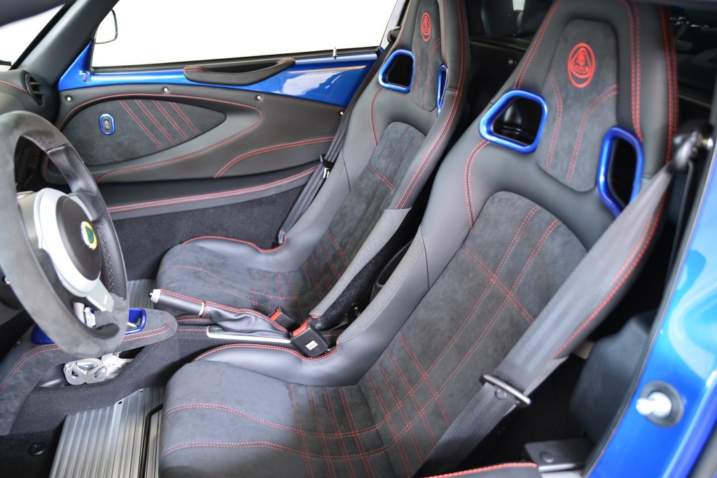Peinture Exclusive Essex Blue avec les sièges en Alcantara et coutures rouges.