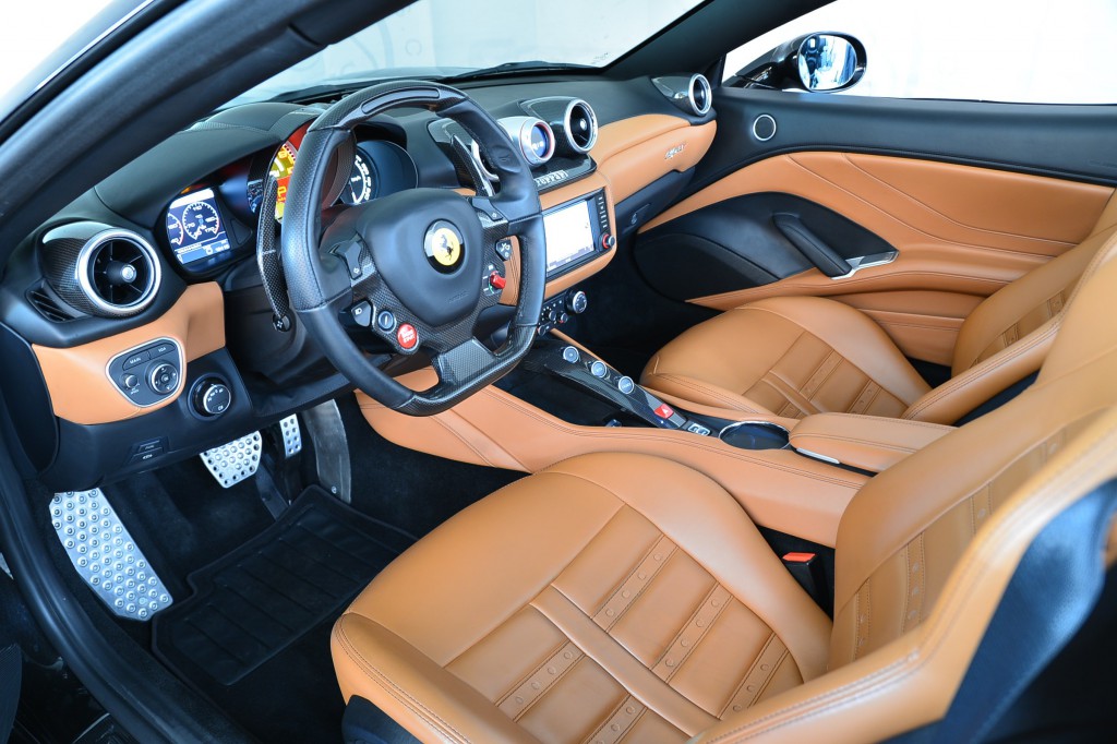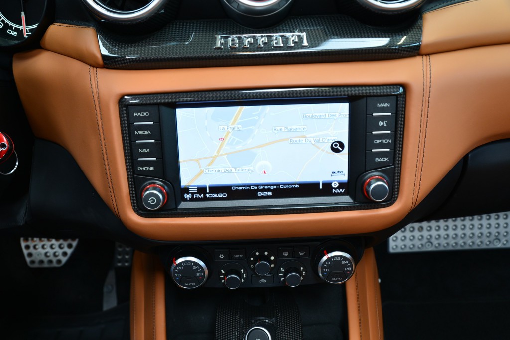 Equipement complet dont le système d'éclairage AFS, les pinces de freins jaunes, les freins céramiques, le lecteur CD, les placages intérieurs en Carbone, les aérateurs de ventilation en Carbone, les seuils de portes en Carbone, la suspension , les écussons ¨Scuderia Ferrari" sur les ailes avant, les sièges full électriques, le volant Carbone à Leds, les palettes au volant en Carbone, le compte-tours jaune, les appuie-têtes avec le Cavallino, le cale-pied en aluminium, le pare-brise isolant, Etc..