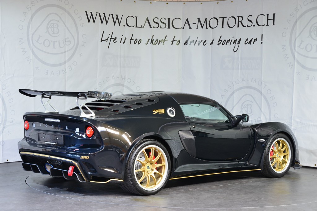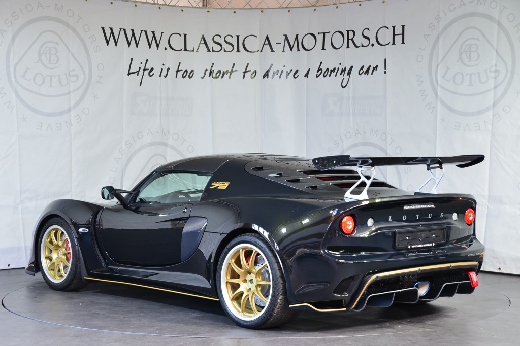 Cette série ultra limitée de 10 exemplaires reprend les couleurs de la Formule 1 Type 79 avec laquelle Mario Andretti est devenu champion du monde F1 et qui a permis à Lotus de gagner le titre de champion du monde constructeur la même année. Cette voiture est la seule disponible en Suisse.