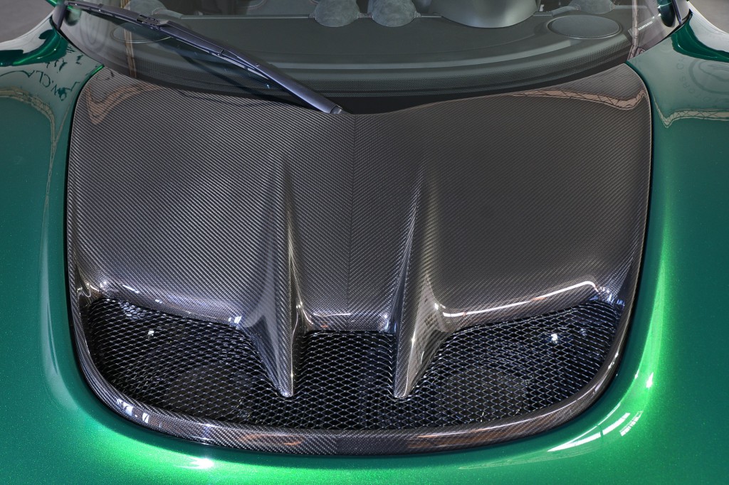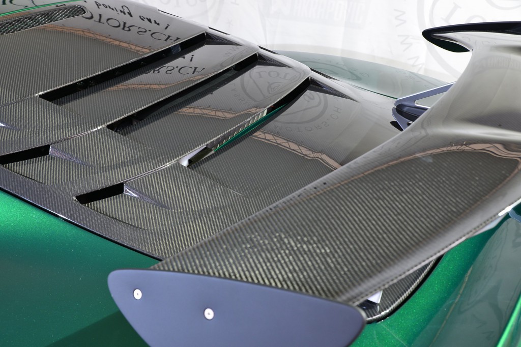 Motorsport Green Metallic avec les sièges Carbone en Alcantara, Pack couleur intérieure Silver et coutures blanches et rouges.