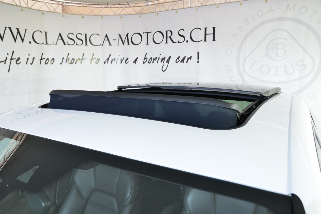 Blanc Carrera métallisé avec les sièges Sport adaptatifs avec pack mémoire en cuir complet natuel Expresso. Voiture suisse de 1ère main.