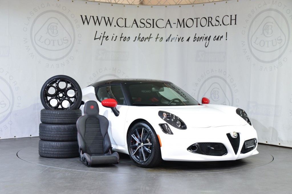 Excellent état et bel équipement pour cette Alfa 4C. Voiture suisse de 1 ère main. Voiture légèrement coursifée avec un demi-arceau homologué + un siège baquet Recaro Sitz Pole position + un harnais Schroth. Pneumatiques 215/45/17 et 235/40/18.