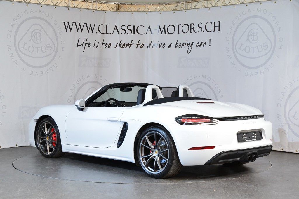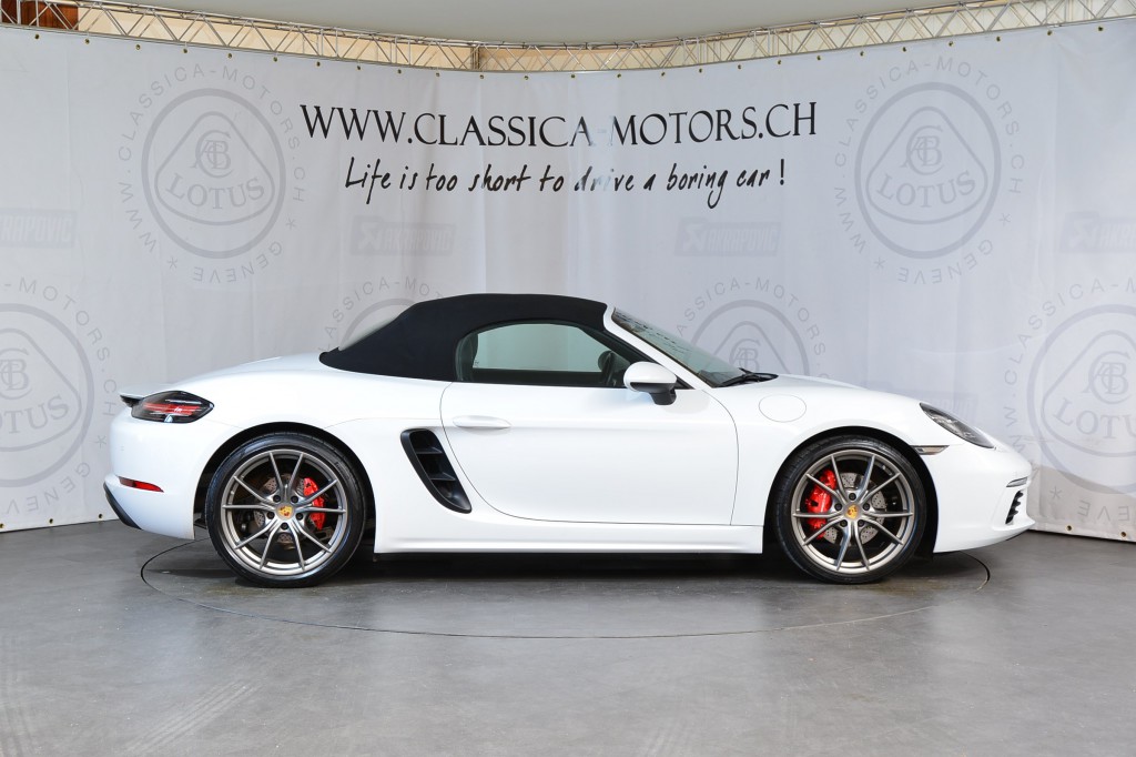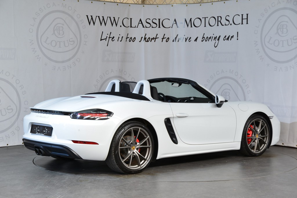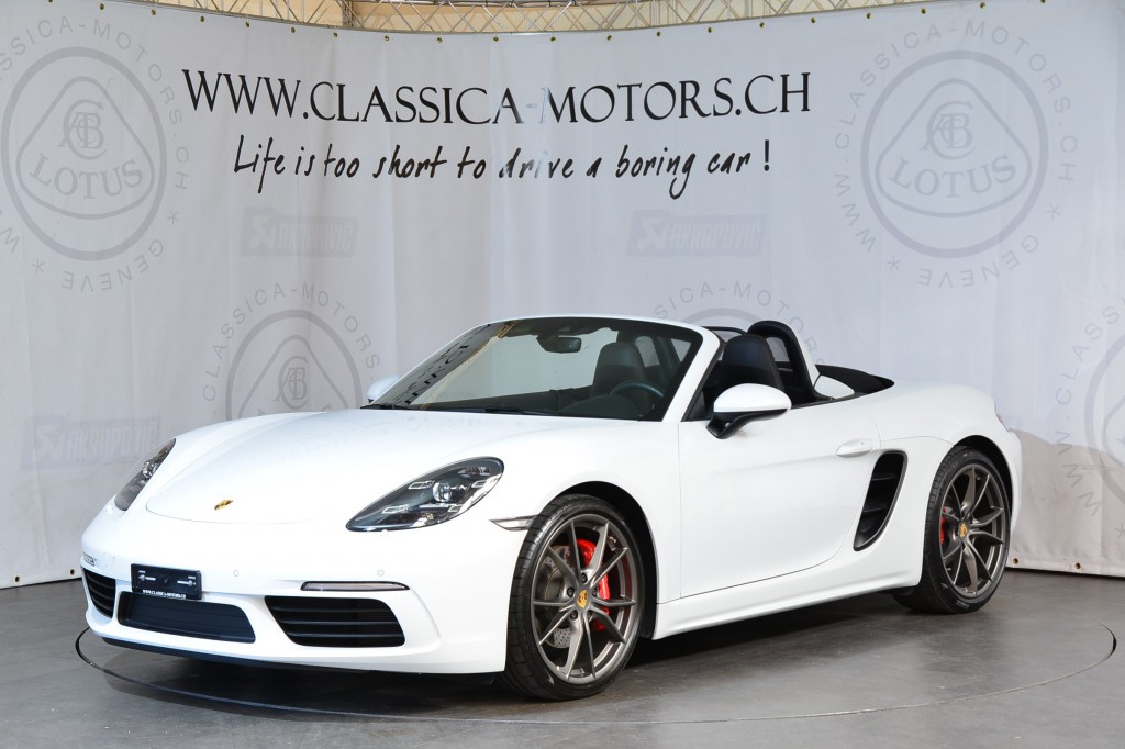 Équipement du véhicule, 2 + 2 ans de garantie (d'une valeur de CHF 2'770.-), Porsche Swiss Package (d'une valeur de CHF 4'030.-),Désignation du modèle peint, Phares LED incl. Porsche Dynamic Light System Plus (PDLS+), Assistance parking avant et arrière, Pare-brise à bande grise dégradée, Arceaux de sécurité peints en couleur extérieure, Gicleurs de lave-phare peints en couleur extérieure, Boîte de vitesse Porsche Doppelkupplung (PDK), Power Steering Plus, Pack Sport Chrono, Système d'échappement sport avec sorties d'échappement sport en noir, Jantes Carrera S 20" peintes en couleur Platine (finition satinée), Régulateur de vitesse, Assistance angles morts, Affichage des limitations de vitesse, Pack Design éclairage, Volant multifonctions chauffant, Alarme avec surveillance de l'habitacle, Sièges sport (14-way), réglables électr., incl. Pack mémoire, Ventilation des sièges, Kit "fumeur", Tapis de sol, Fond du chronomètre "Sport Chrono" en Blanc, Intérieur cuir, Emblème "Porsche" sur les appuis-tête, Module navigation pour Porsche Communication Management (PCM), BOSE® Surround Sound-System, Radio digitale, Connect Plus, Etc..