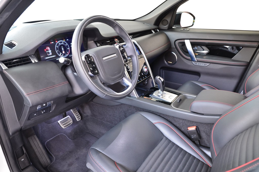 ¨LIFE IS TOO SHORT TO DRIVE A BORING CAR!", Magnifique Land Rover Discovery Sport R-Dynamic P250 SI4 HSE 7 places., Blanche avec les sièges en cuir premium noir., Equipement complet dont : Roues hiver, Crochet d'attelage électrique, Toit panoramique, Climatisation automatique 2 zones, Sièges électriques chauffants à mémoires, Camera surround, DAB, Volant chauffant, Pack hiver, Cruise Control ACC, Keyless, Blind spot, Etc..