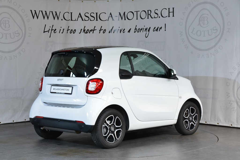 ¨LIFE IS TOO SHORT TO DRIVE A BORING CAR!", Très belle Smart Fortwo Passion Twinmatic. Blanche avec les sièges noir. Equipement complet dont : Roues hiver, Climatisation, Pack Confort, Pack Sensor, Phares antibrouillard, Cellule de sécurité en blanc, Toit panoramique, Réservoir de carburant 35 litres, Sièges chauffants, Accoudoir central, Park control arrière, DAB, Crochet pour smartphone,Etc..