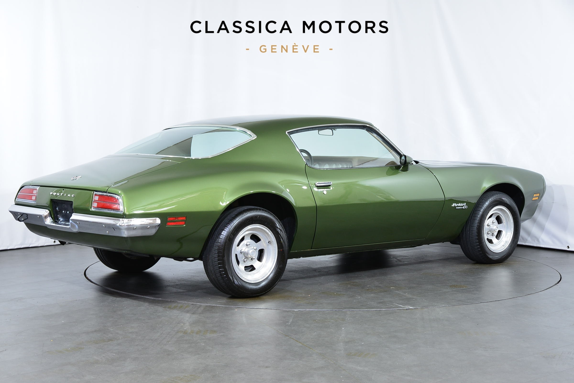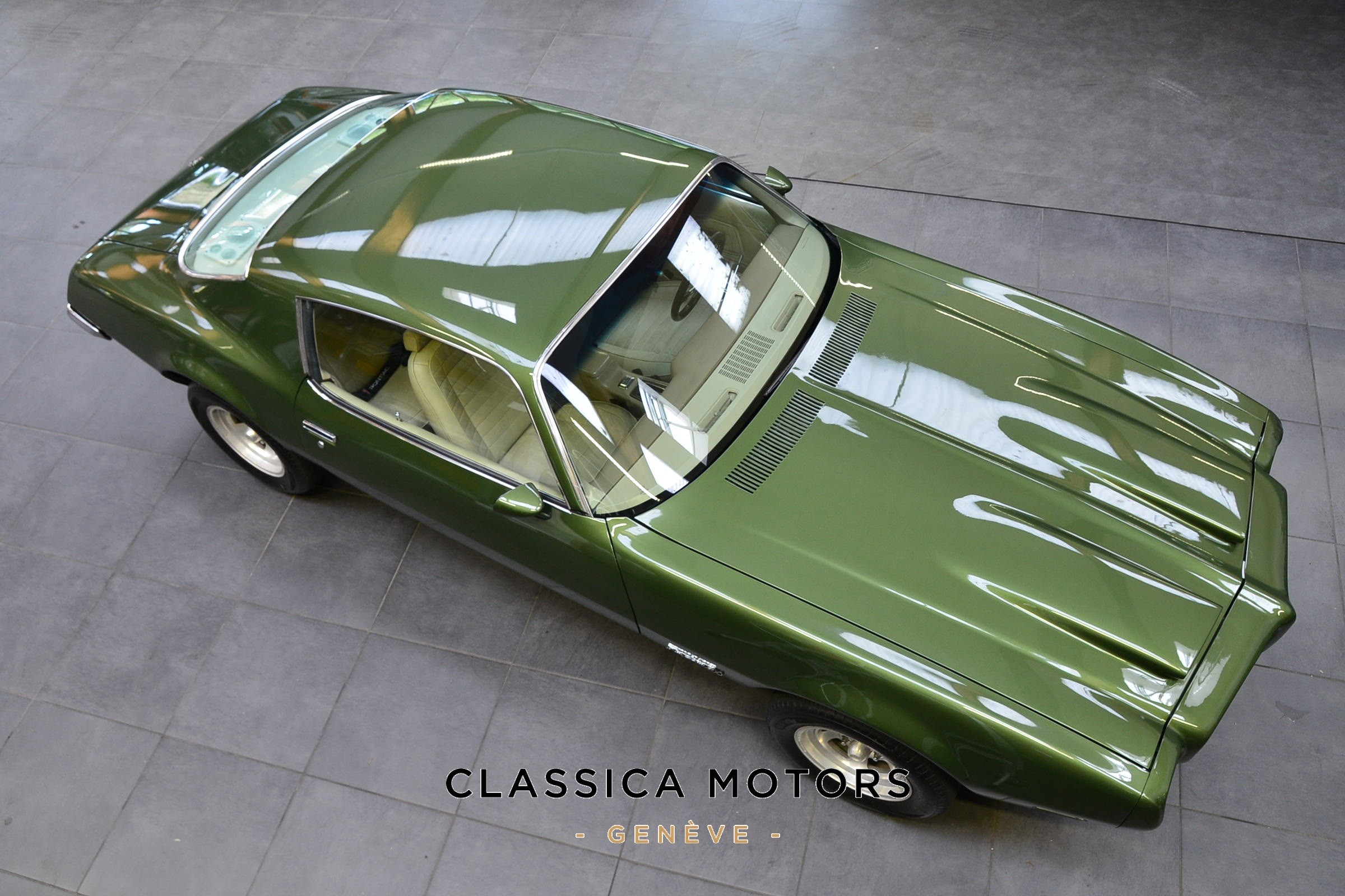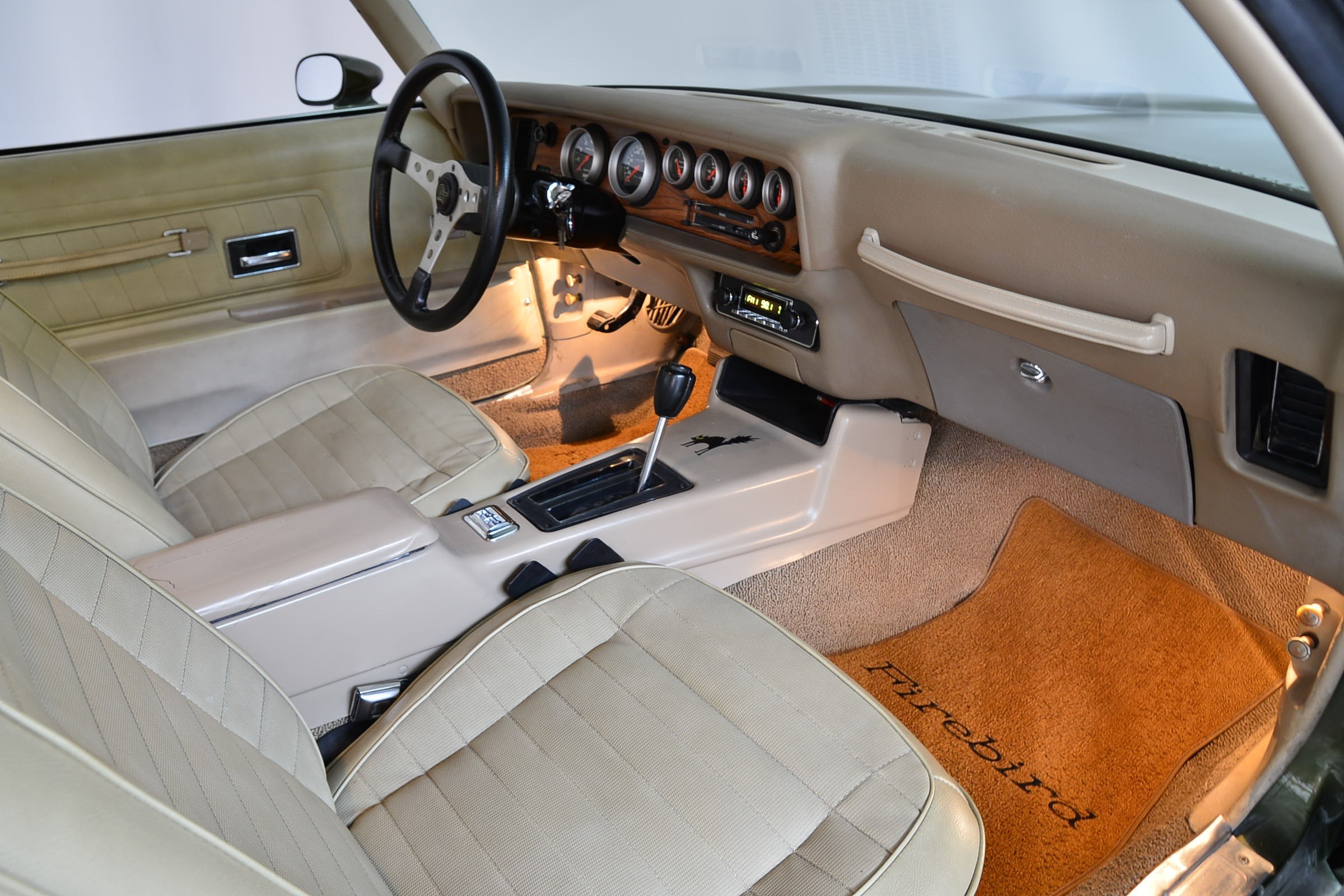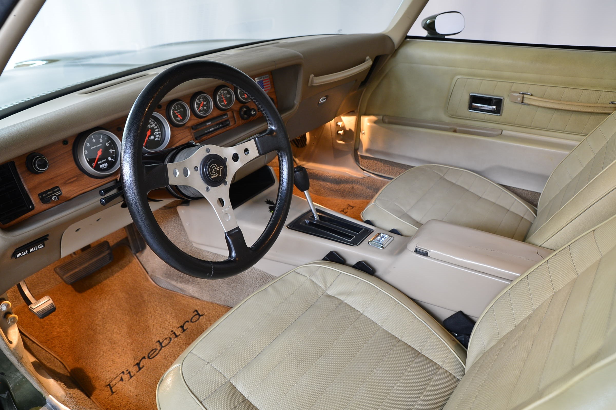 Pontiac Firebird, présentée dans une élégante teinte Verte avec intérieur en cuir beige.