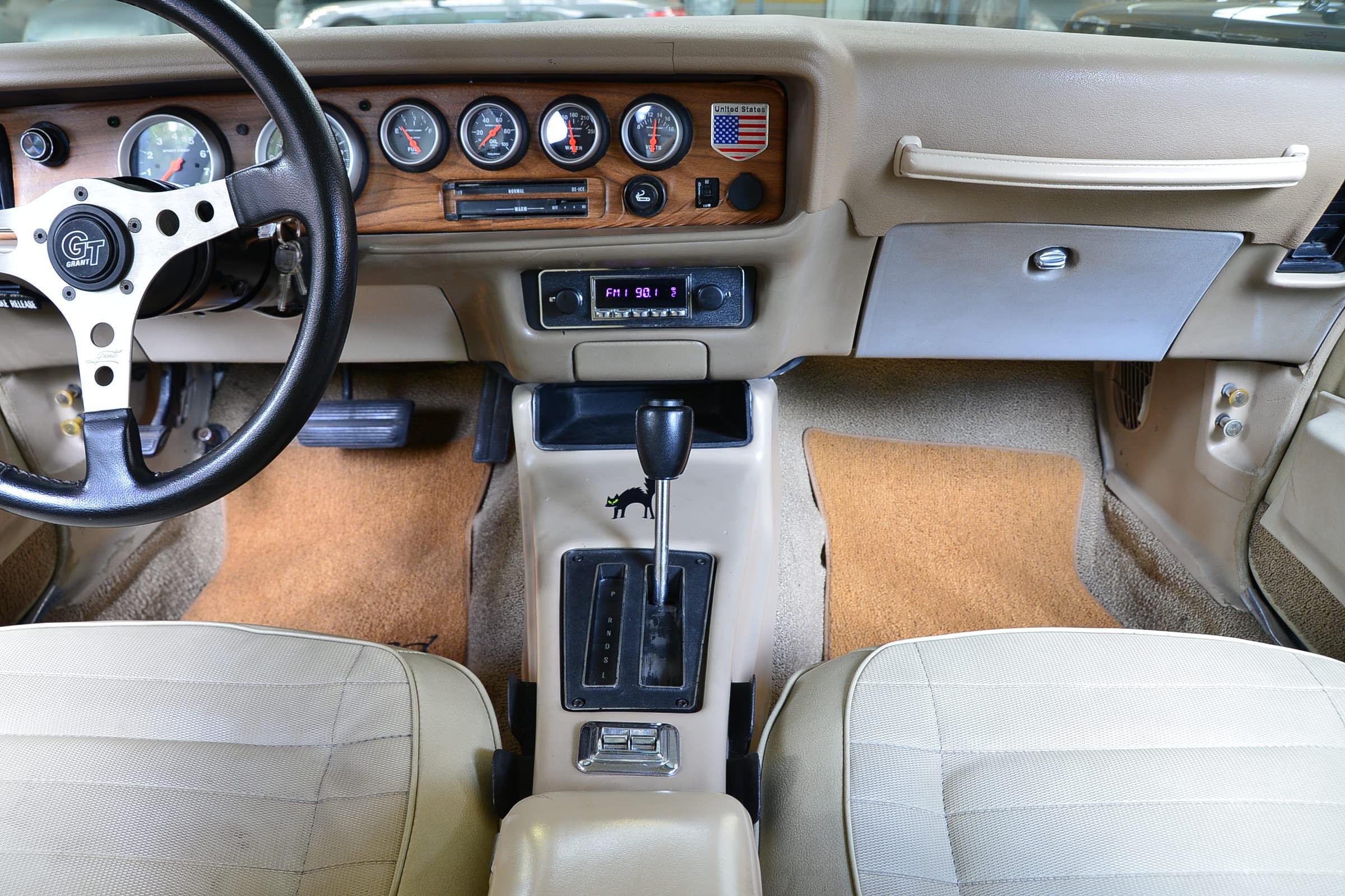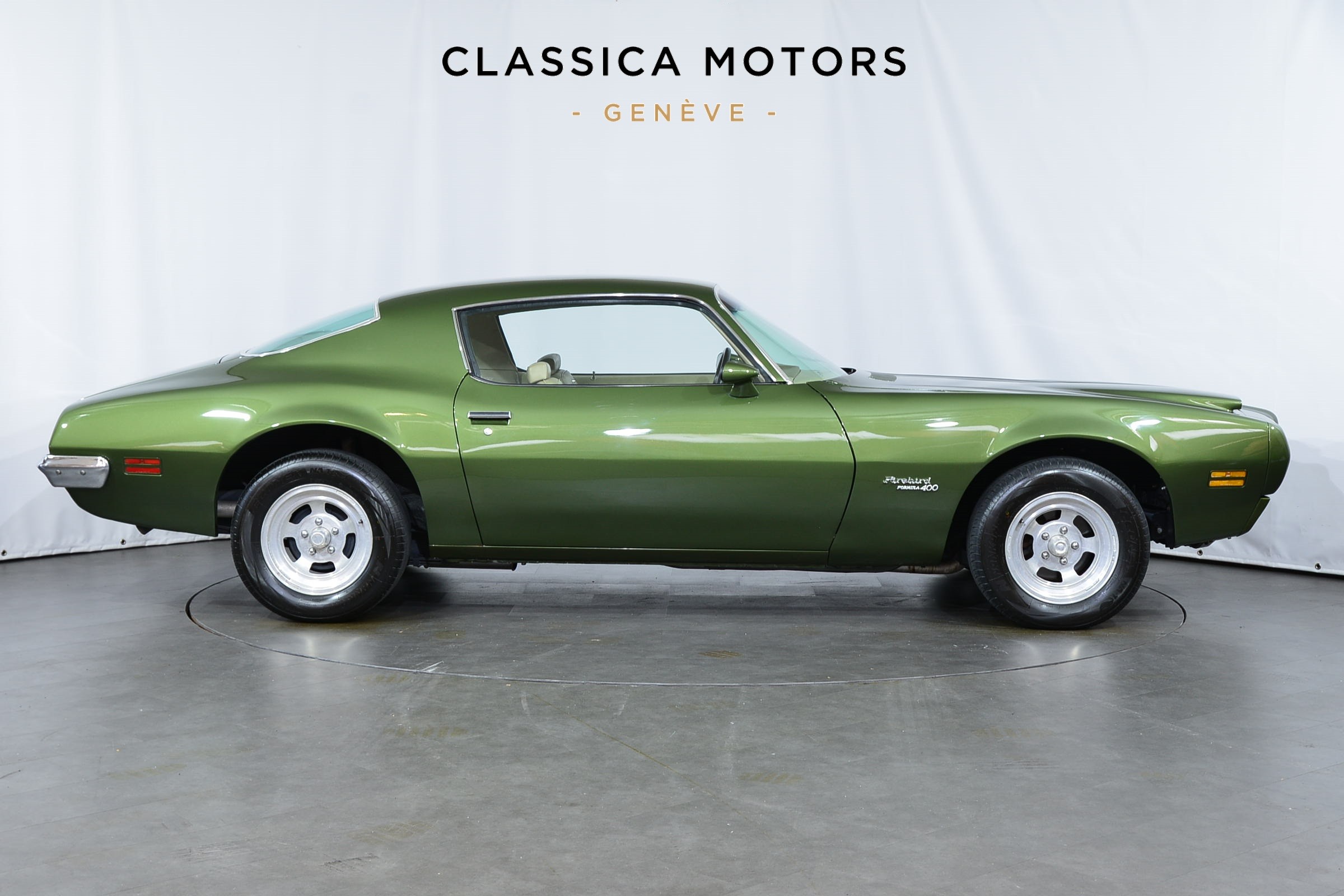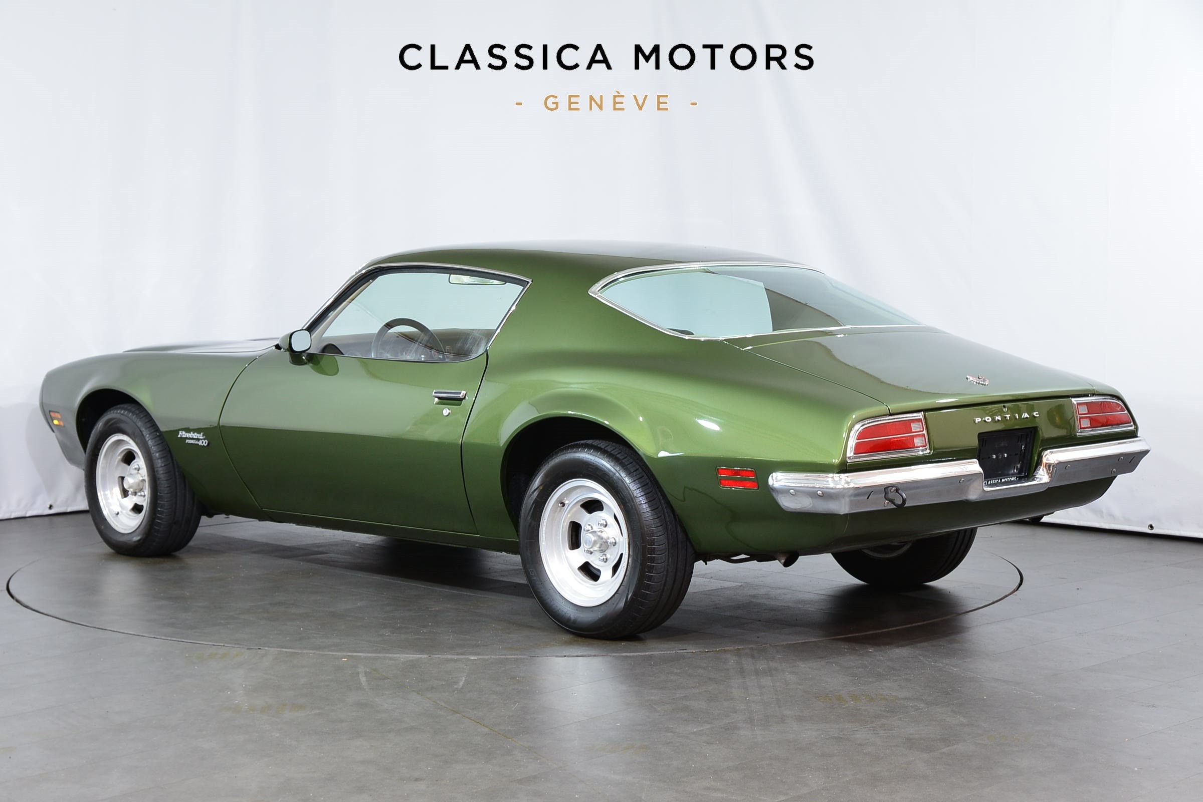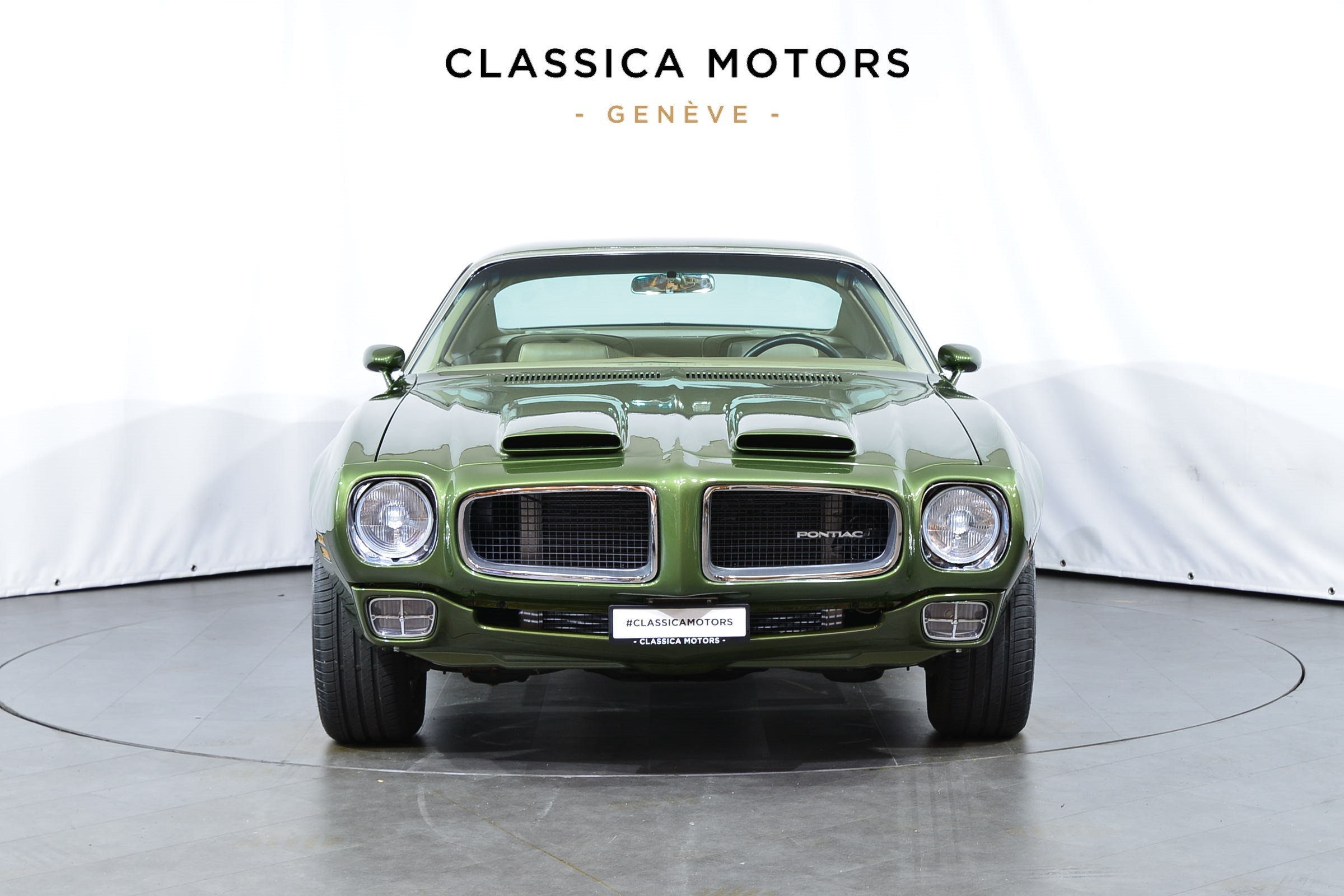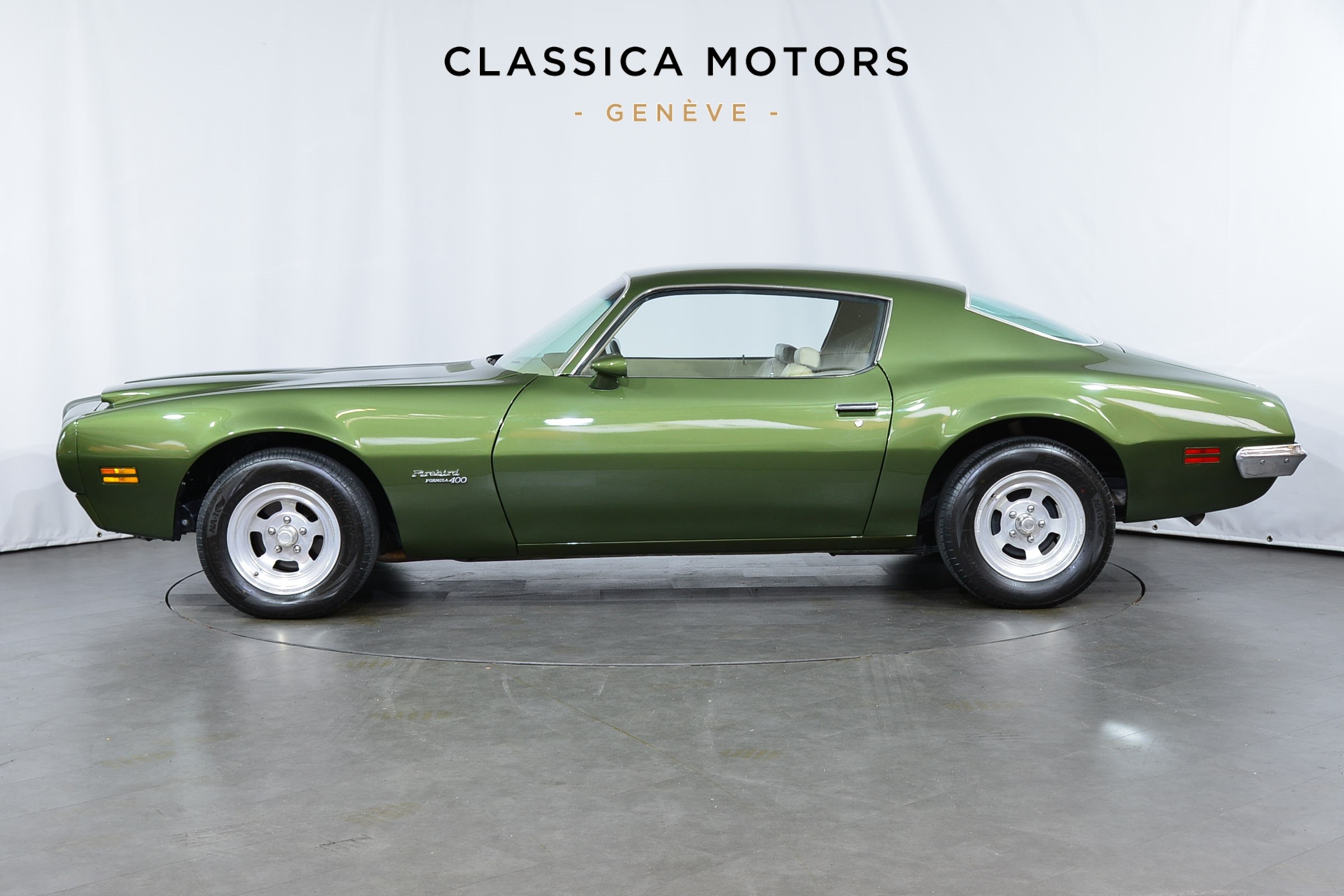 Pontiac Firebird, présentée dans une élégante teinte Verte avec intérieur en cuir beige.