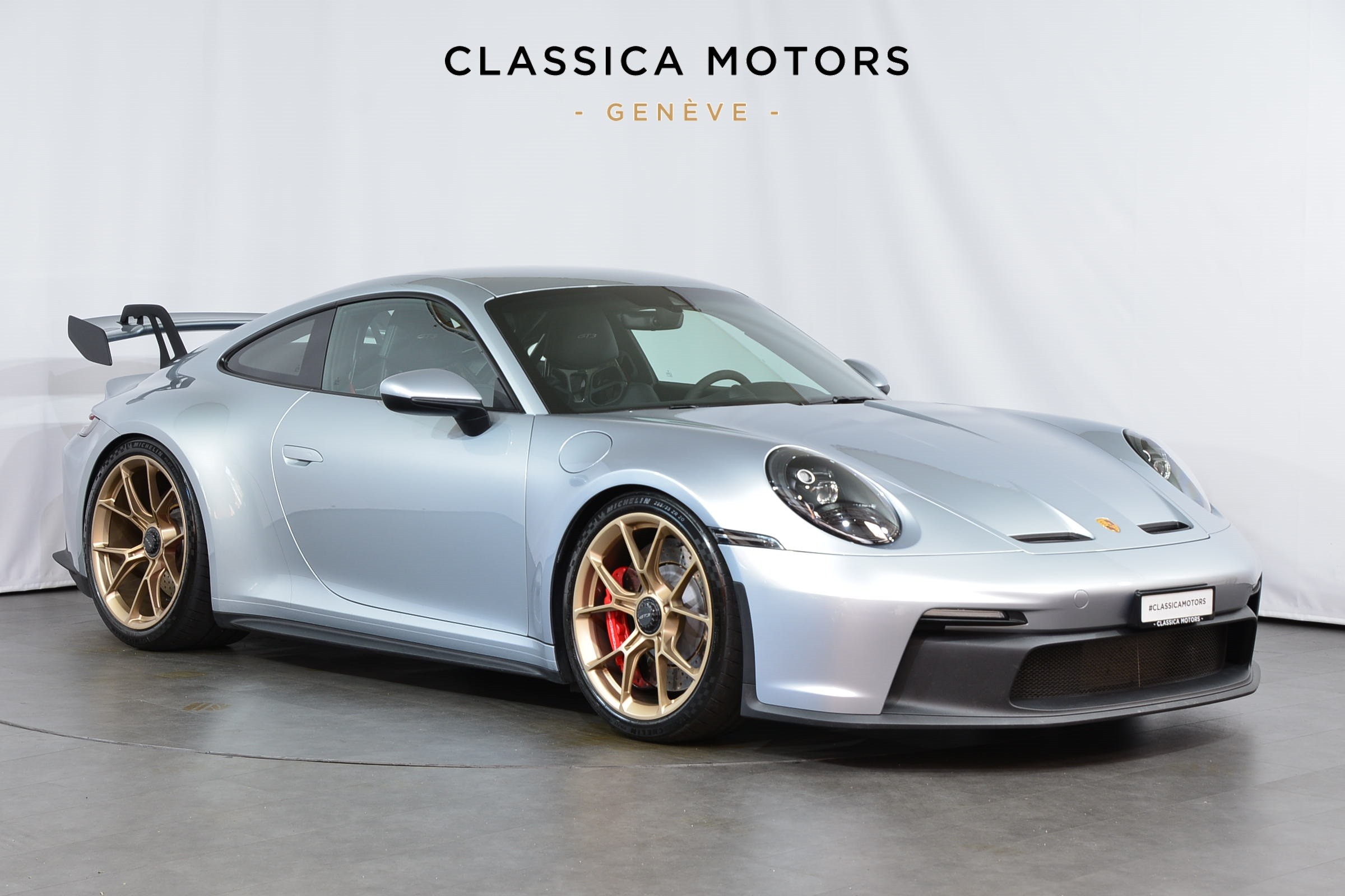 Porsche 911 GT3 PDK, Véhicule suisse, présentée dans une superbe teinte Bleu Gentiane métallisé avec intérieur cuir et Alcantara noir.
