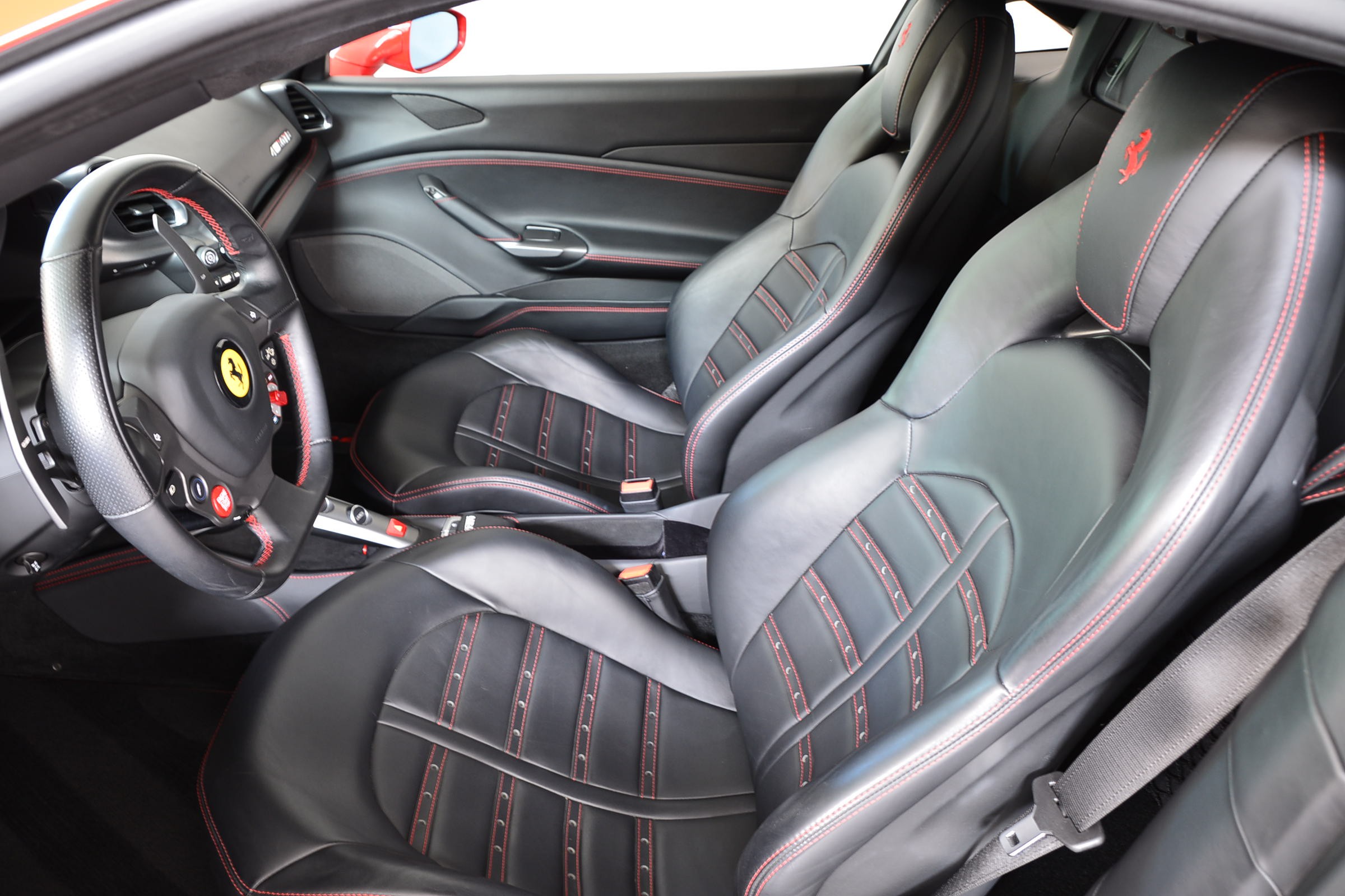 Adaptive Frontlight System (AFS1), étriers de freins rouges (CALR), film de protection du bouclier avant (CHPP), sièges Daytona (DAYT), sièges électriques (ELEC), Suspension Lifter (ELEV), Cavallino brodé sur appuie-tête Rosso 0504 (EMPH), tapis de sol colorés avec logo (FLMA), High Emotion Low Emission (HELE), écussons Scuderia Ferrari (LOGO), surpiqûres contrastées Rosso 0504 (STC1), etc.