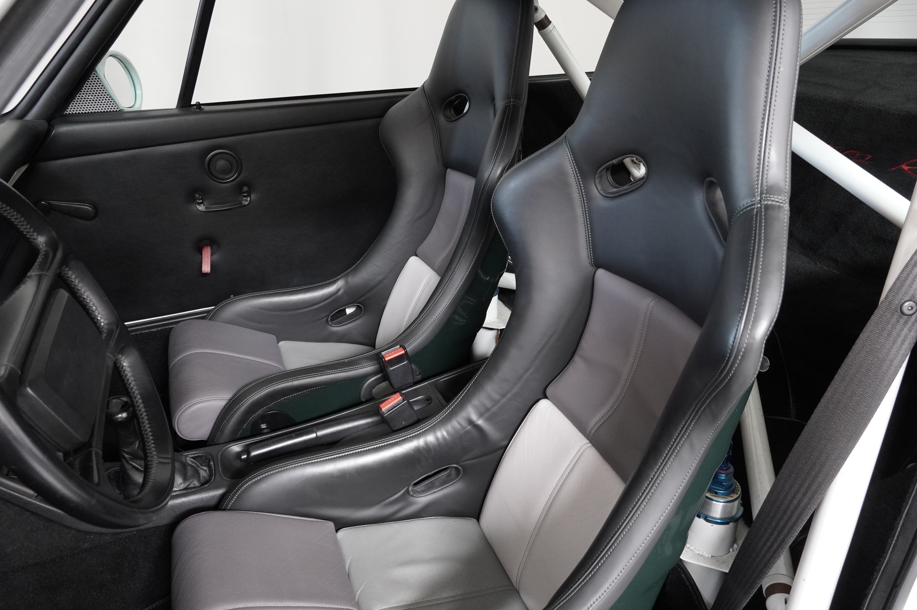 Vérins pneumatiques Airjack homologués, arceau 4 points Matter, autobloquant Torsen, jantes magnésium, capot aluminium, harnais 4 points, suspensions AV et AR RSR, rétroviseurs Cup, moteur préparé par Ofzky Performance en 2005 à 86’480 km (3’800 cm³), etc.