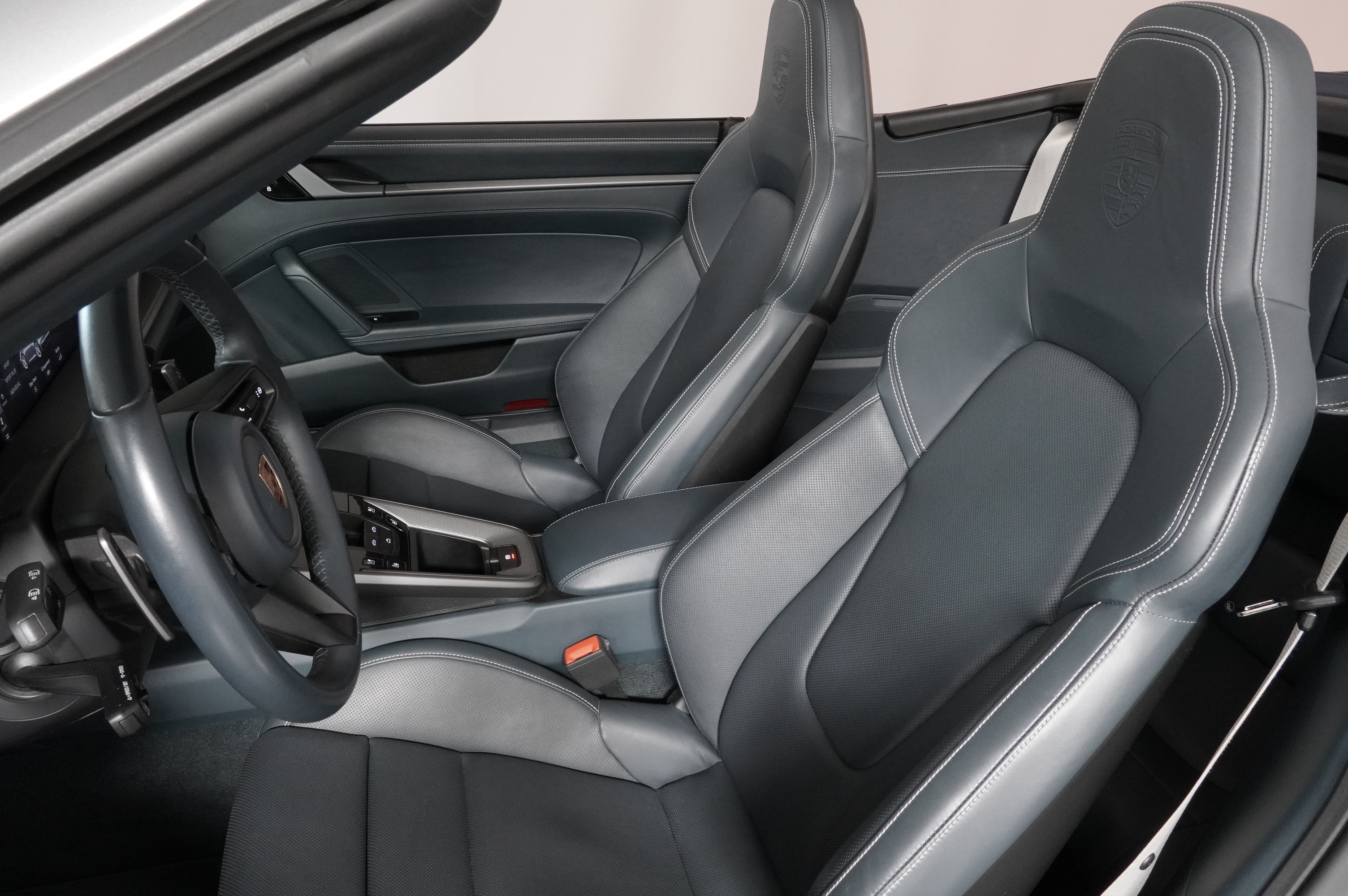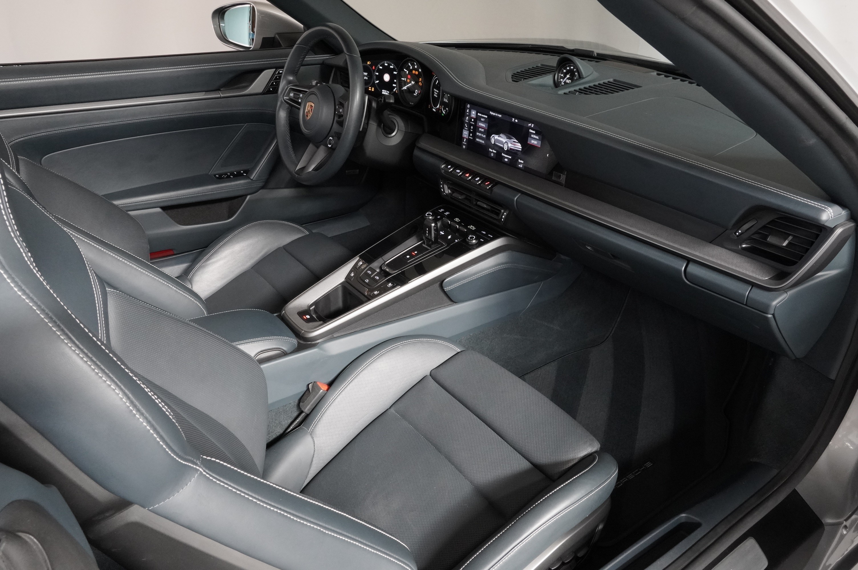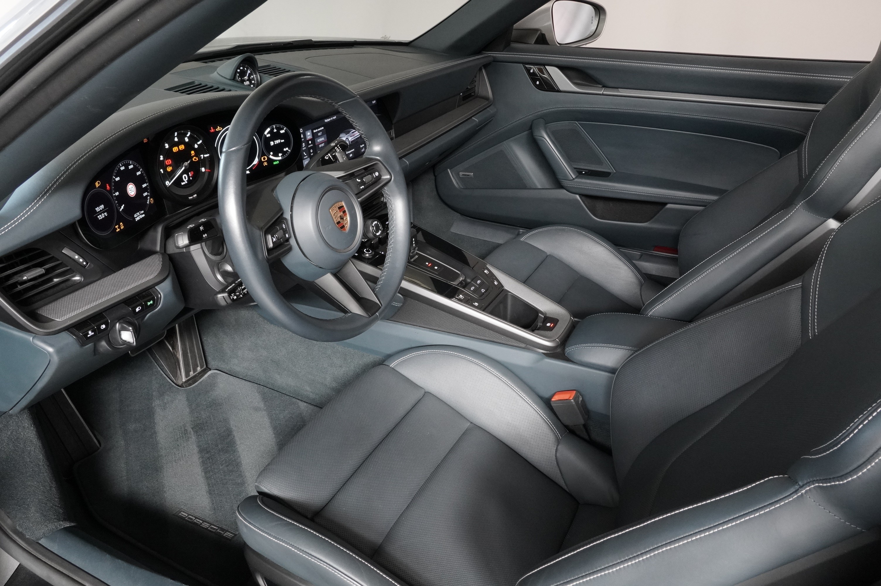Peinture métallisée, assistant de voie avec reconnaissance des panneaux, sièges avant ventilés, système Bose Surround Sound, pack SportDesign, ceintures de sécurité Craie, sièges sport adaptatifs (18 positions) avec pack mémoire, jupes latérales SportDesign, échappement sport noir, pack Sport Chrono avec sélecteur de mode et Porsche Track Precision App, volant sport chauffant, jantes Carrera Classic 20/21 pouces bicolores, phares LED Matrix avec PDLS Plus, rétroviseurs extérieurs rabattables électriquement avec éclairage de courtoisie, capote bleue, roues arrière directrices, régulateur de vitesse adaptatif ACC, logo "PORSCHE" noir brillant, direction assistée Plus, radio digitale, écussons Porsche sur appuie-tête, sellerie cuir bleu graphite avec coutures contrastées Craie, Porsche Swiss Package, etc.