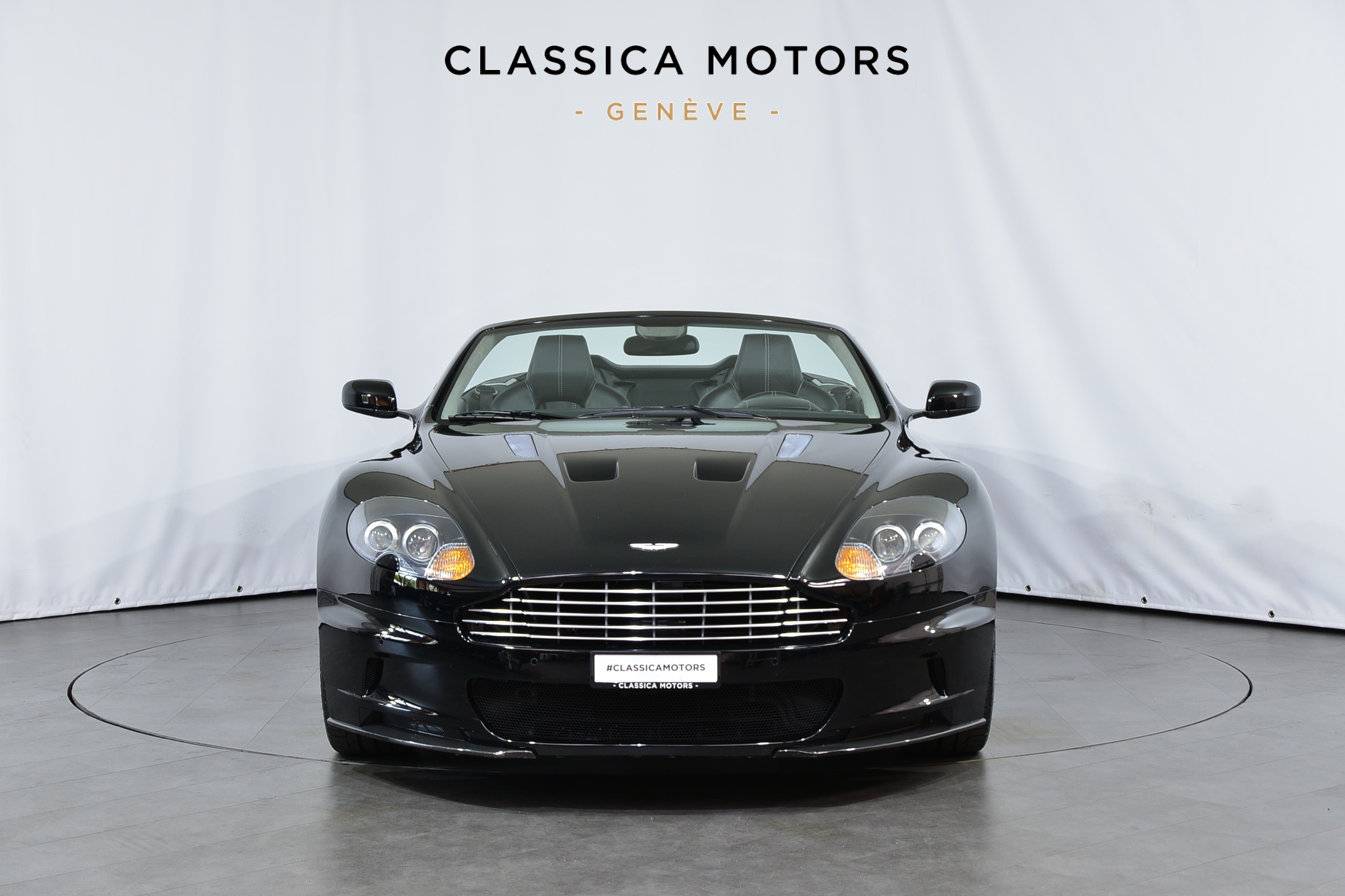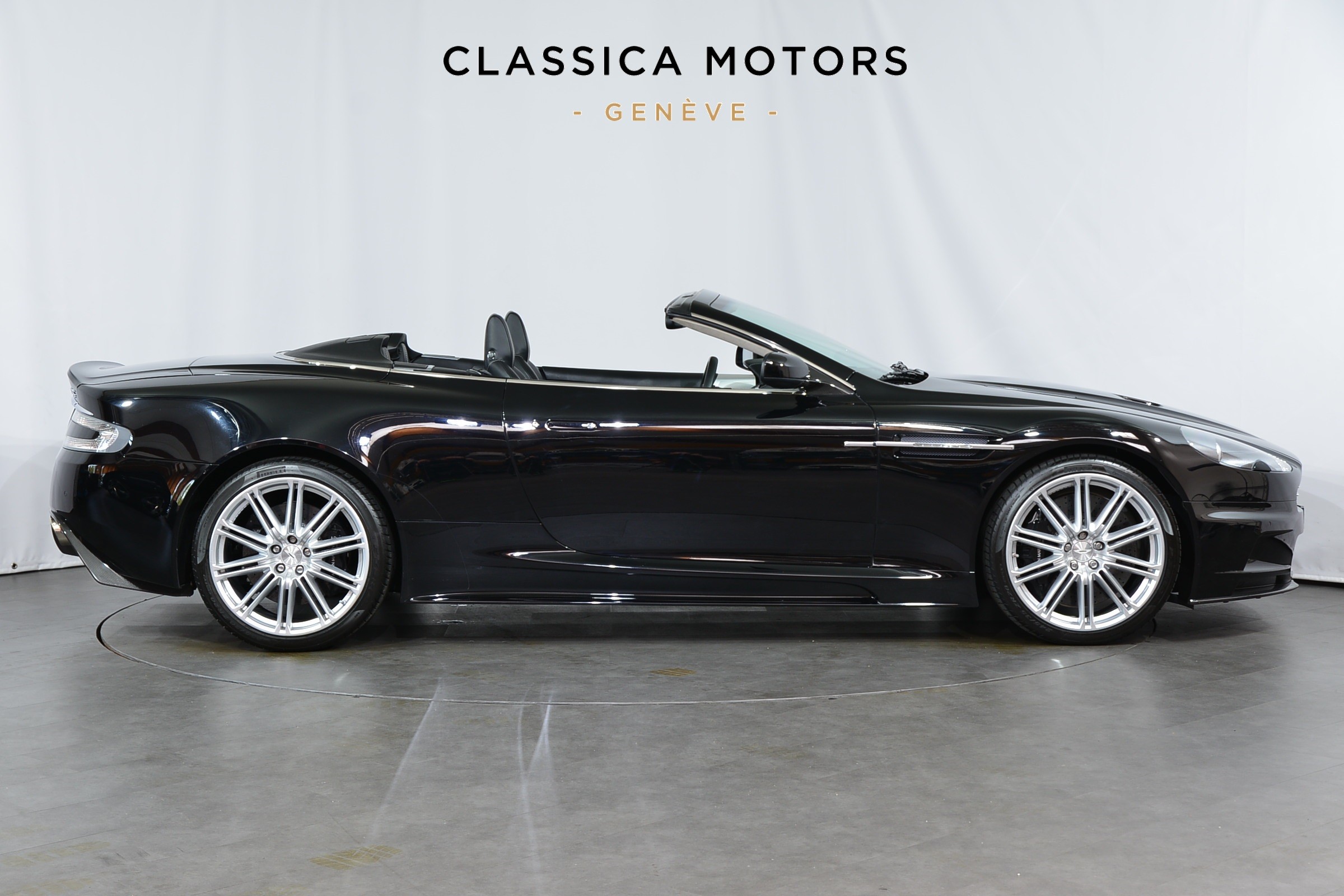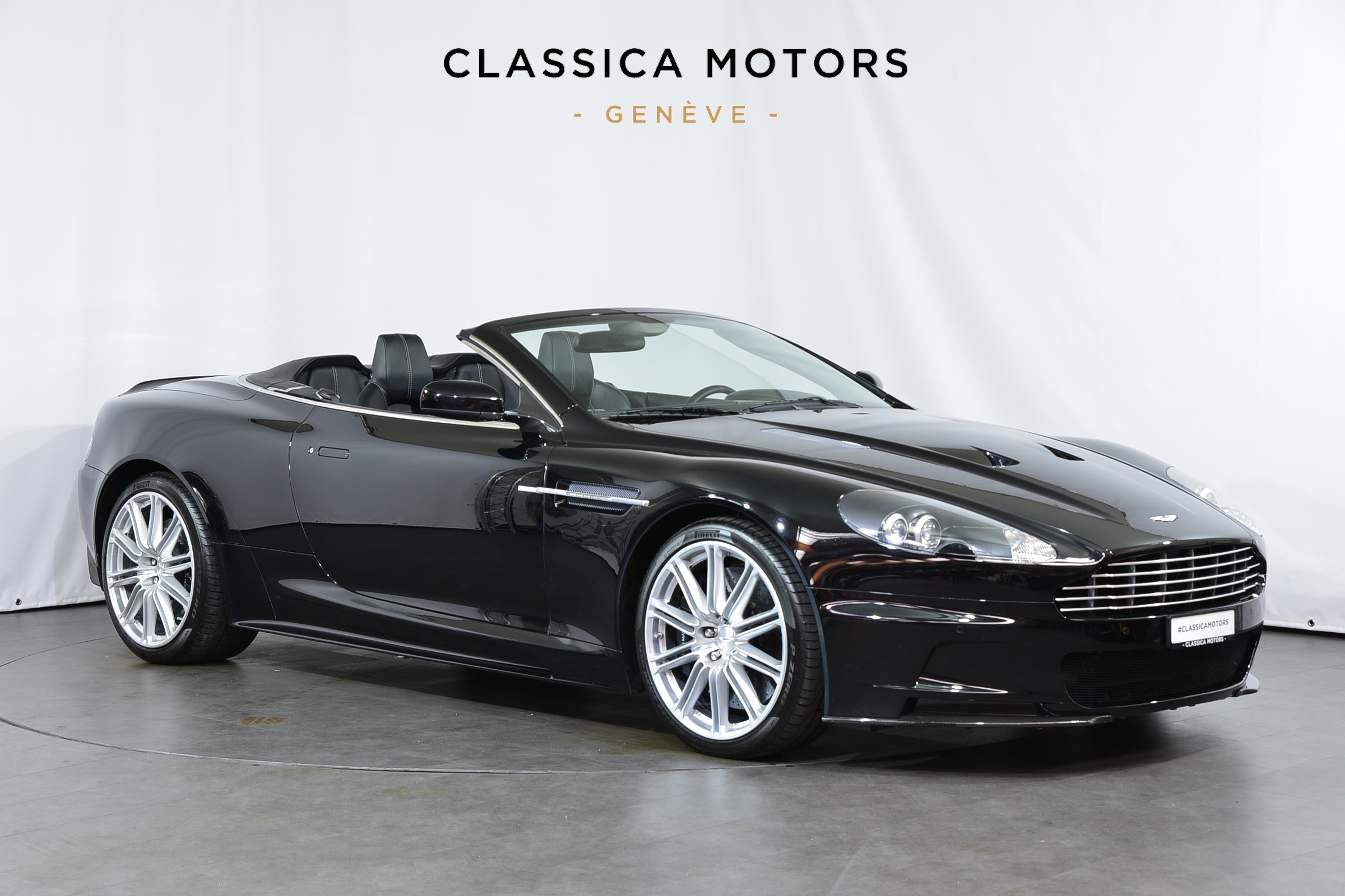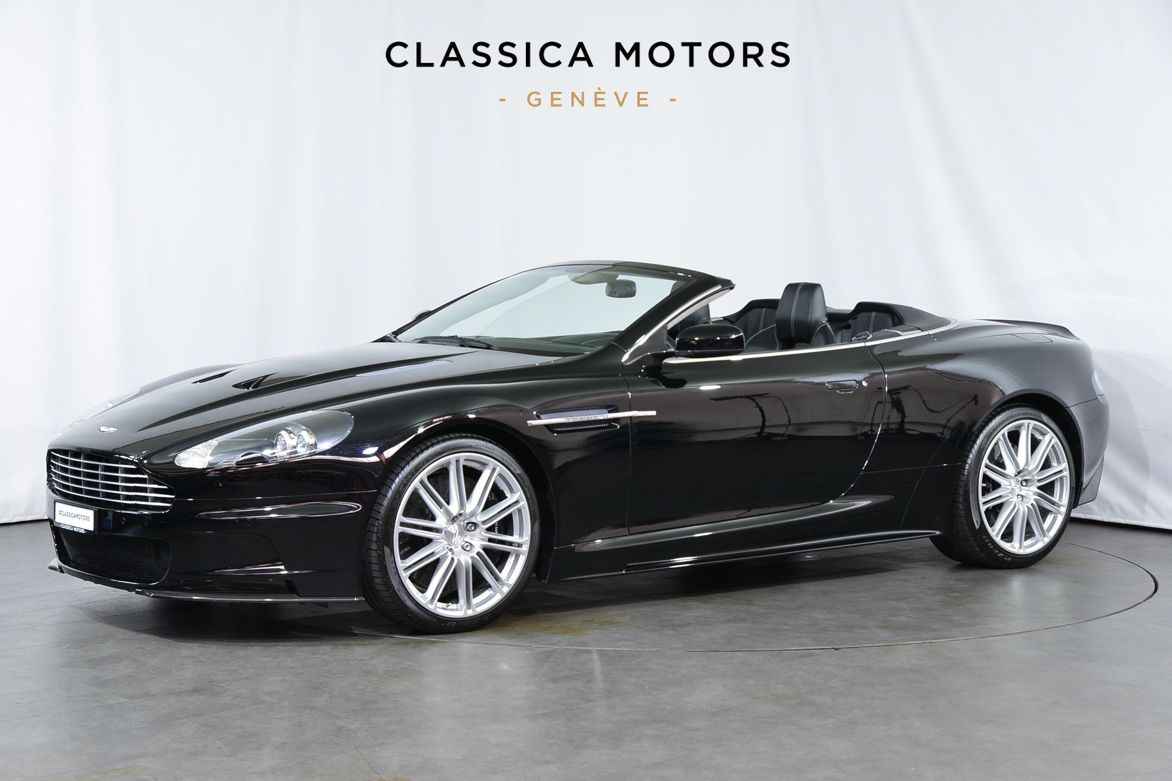 Aston Martin DBS Volante Touchtronic 2, présentée dans une élégante teinte Noir brillant avec intérieur en cuir noir.