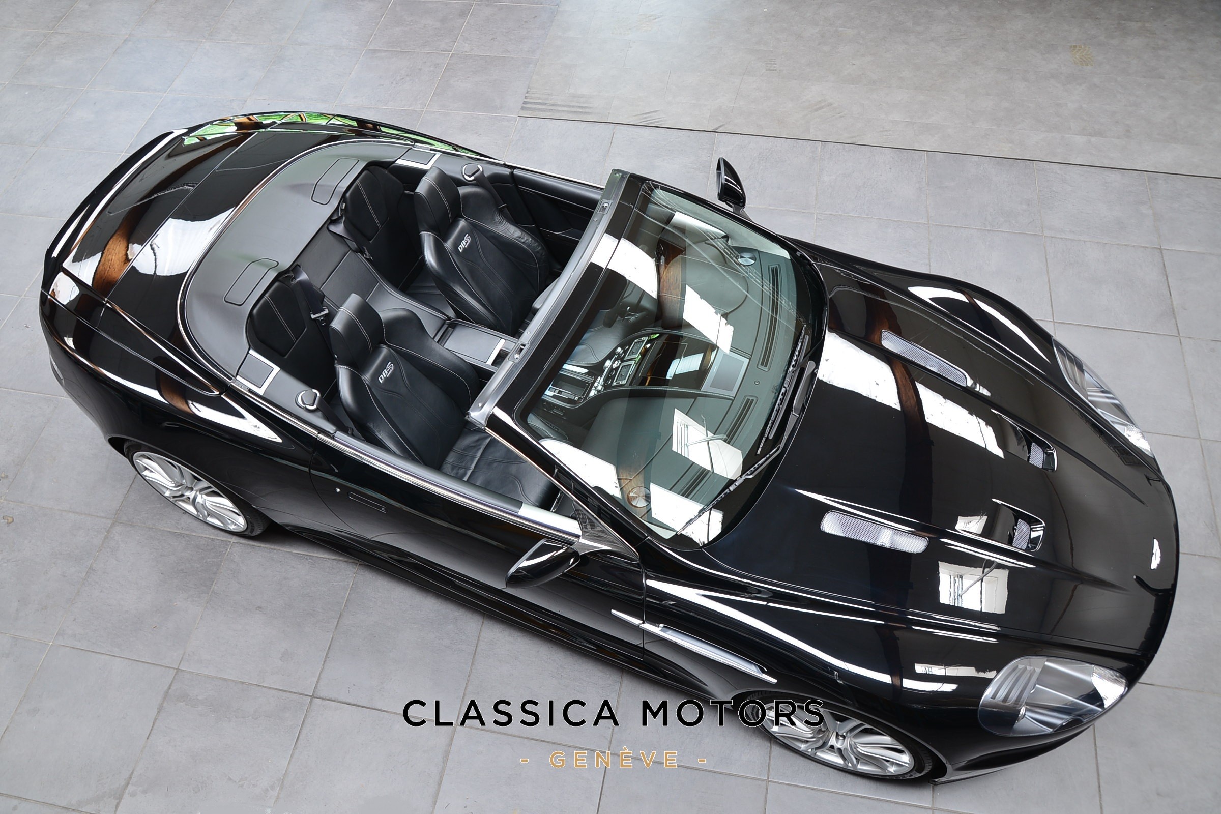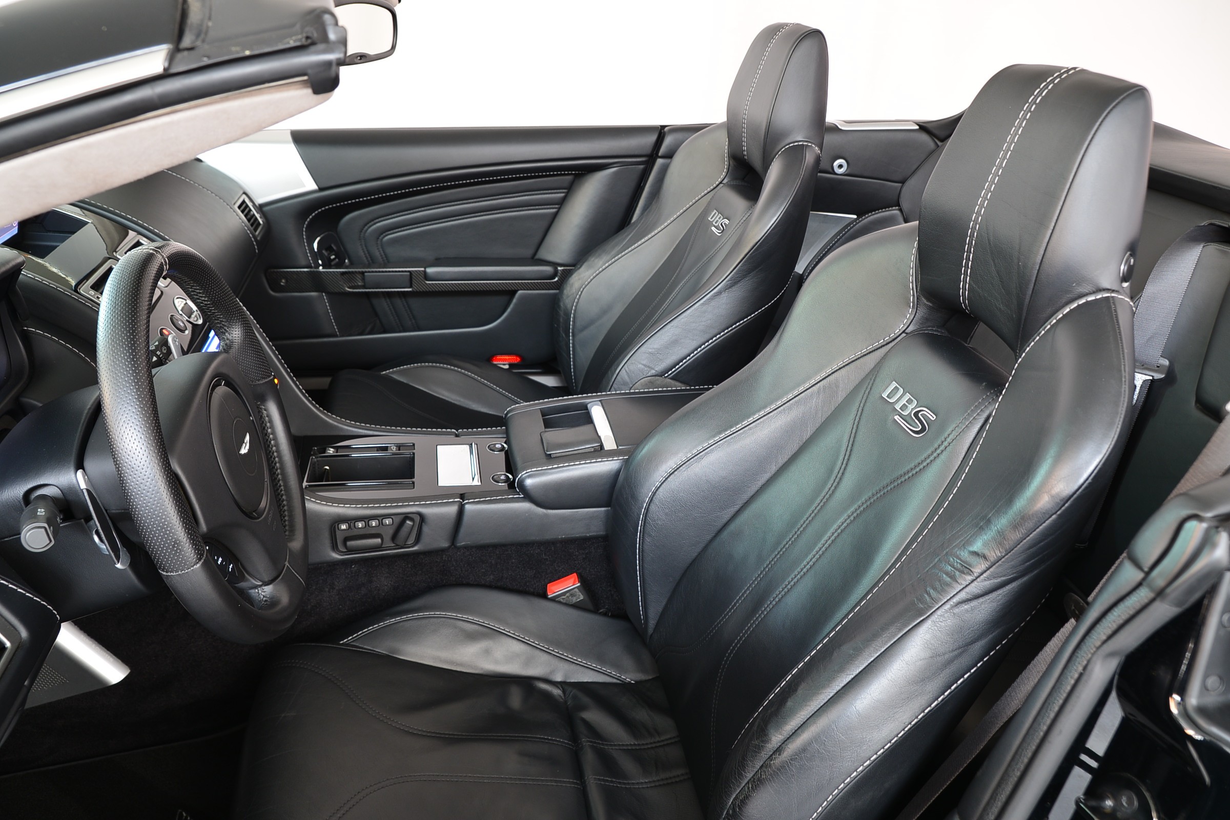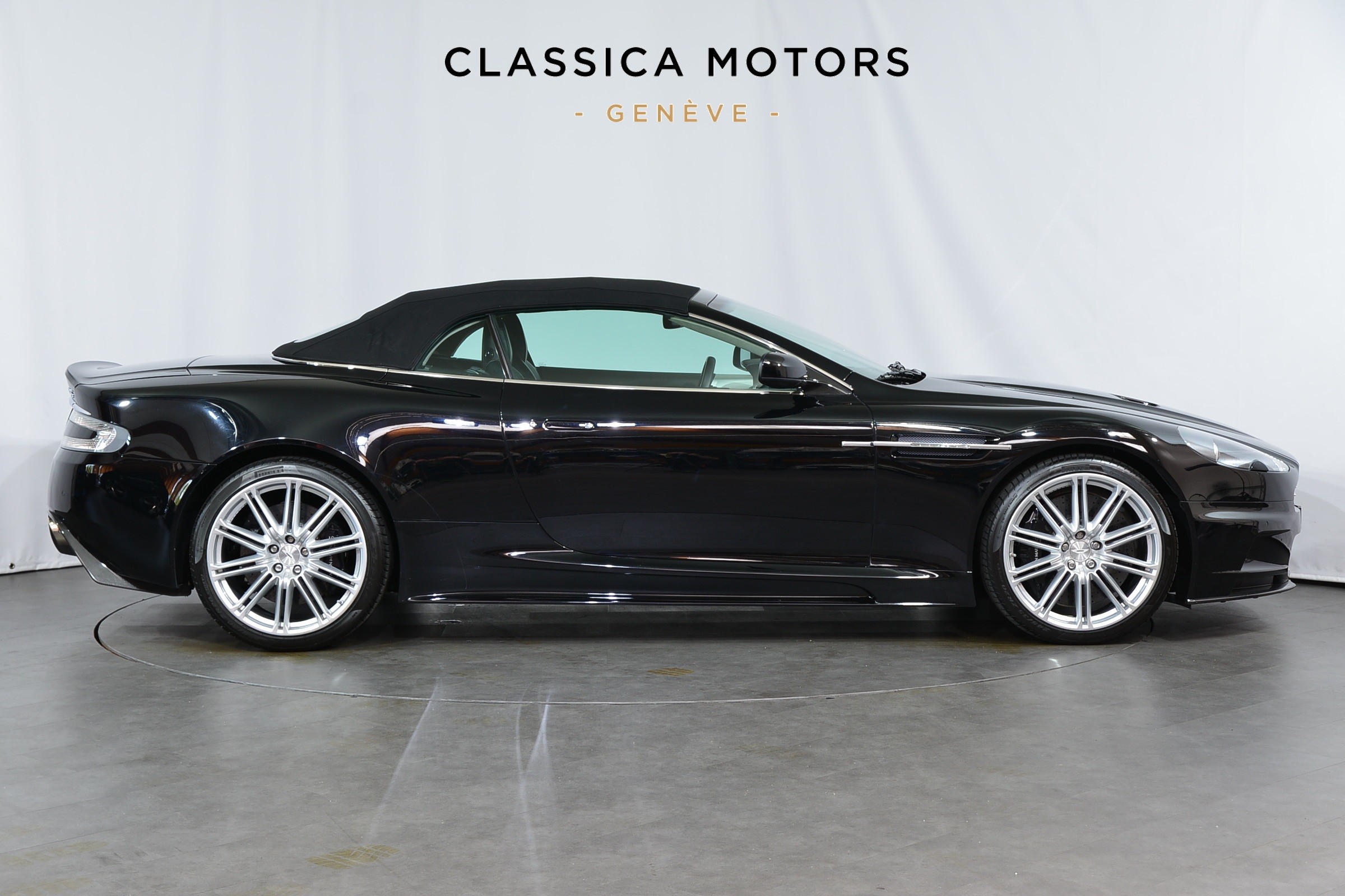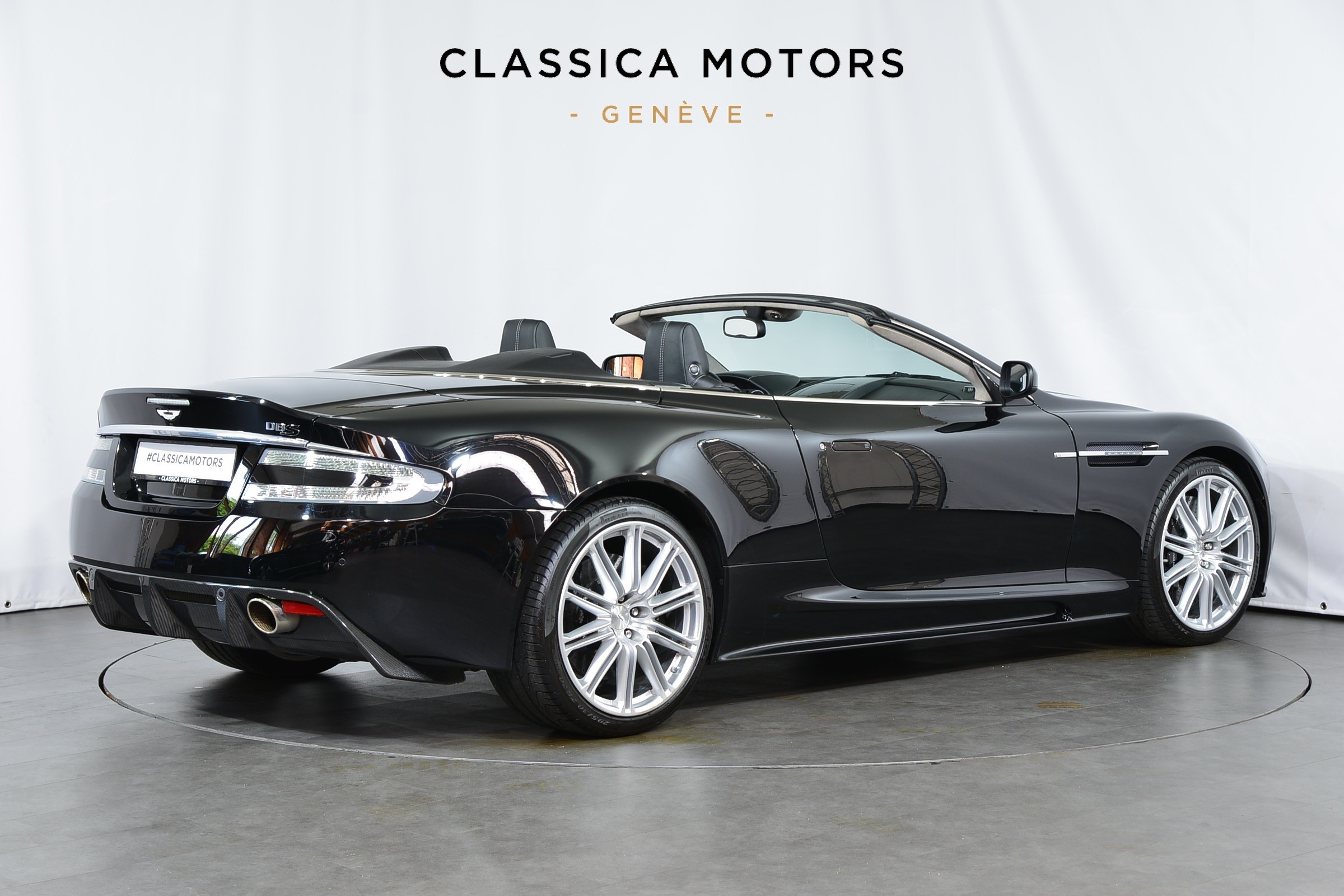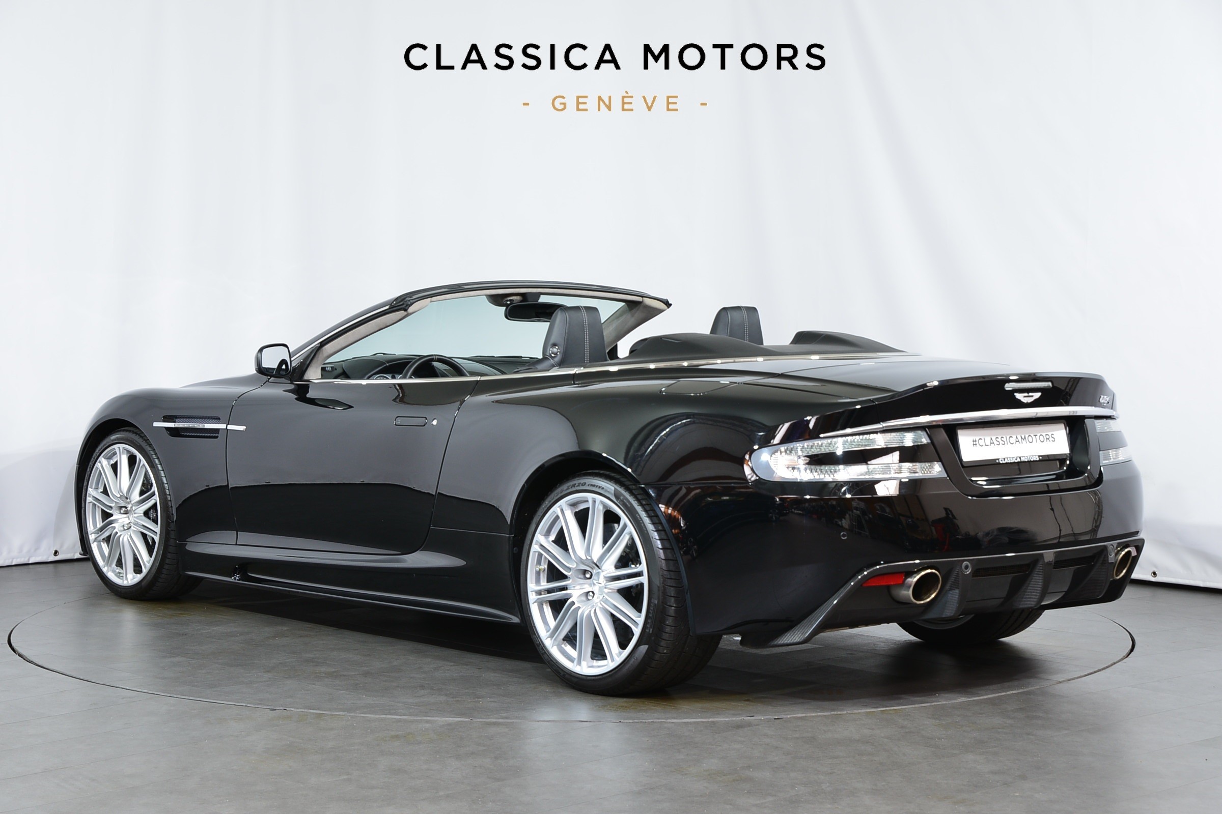 Aston Martin DBS Volante Touchtronic 2, présentée dans une élégante teinte Noir brillant avec intérieur en cuir noir.