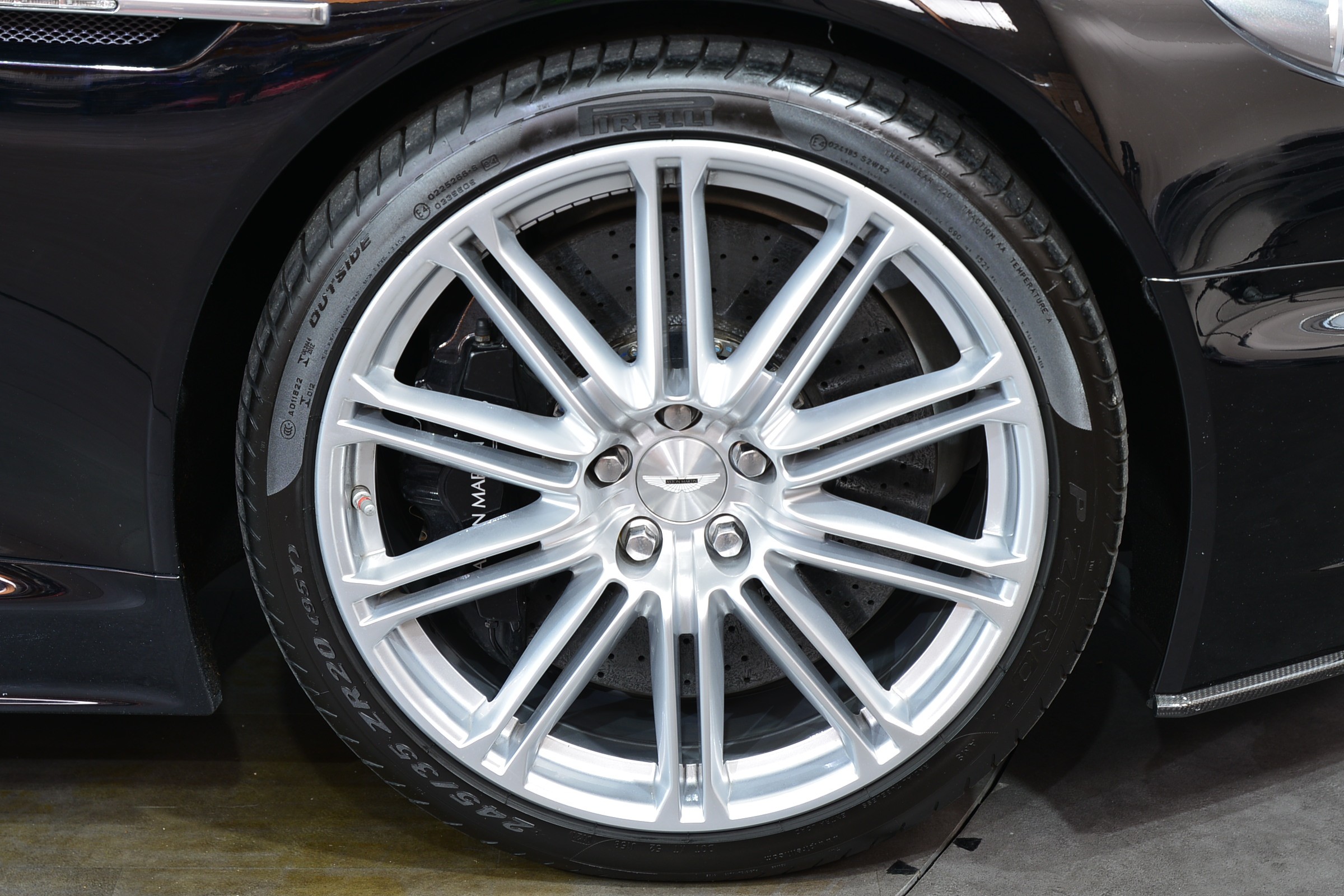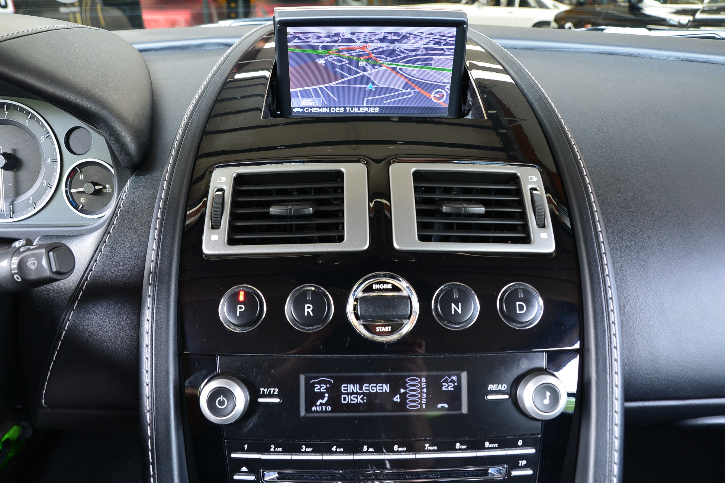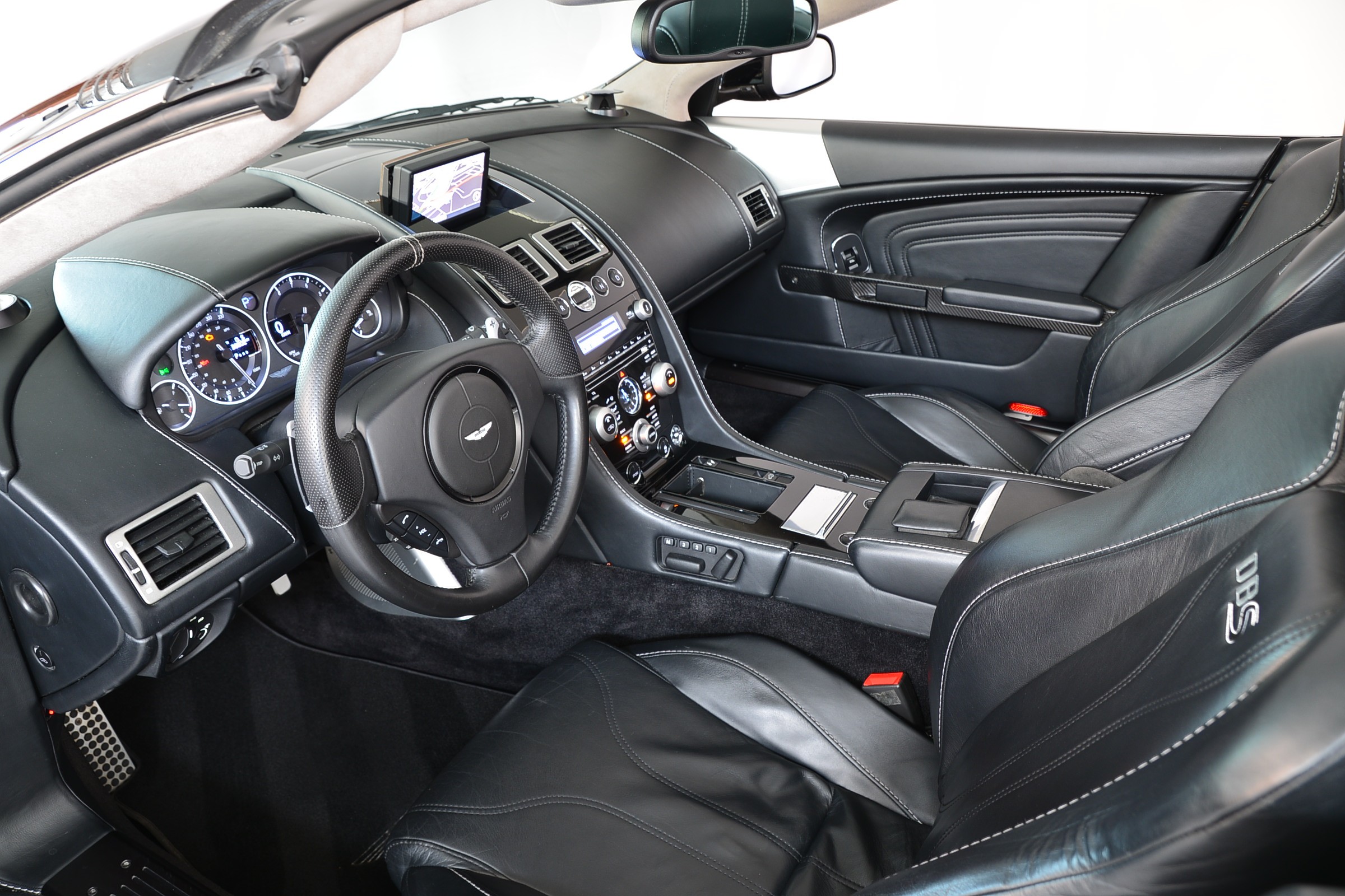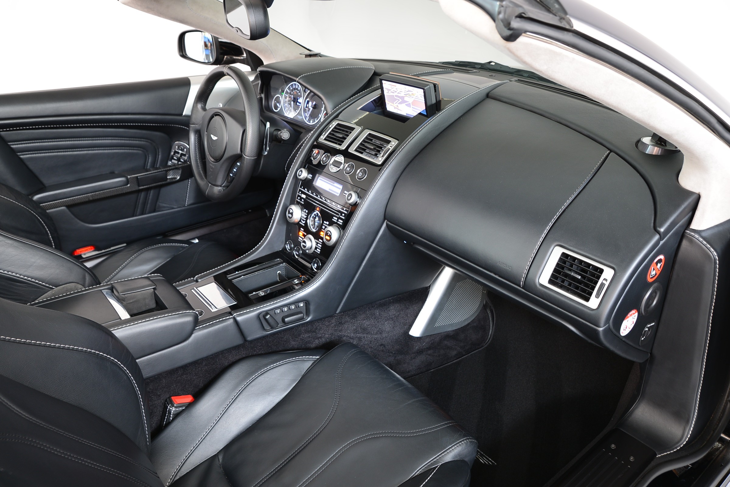 Aston Martin DBS Volante Touchtronic 2, présentée dans une élégante teinte Noir brillant avec intérieur en cuir noir.