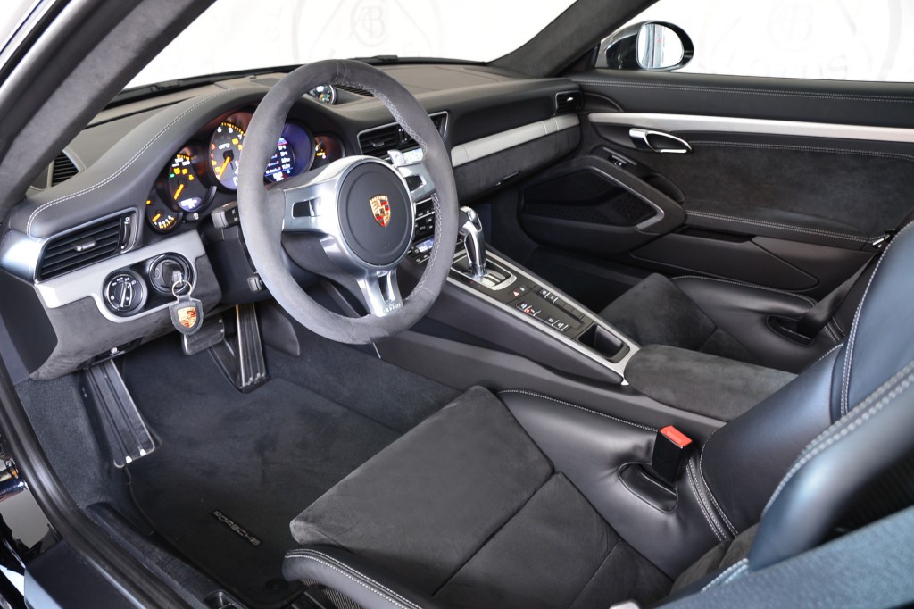 Noir Intense métallisé avec les sièges baquets 918 Carbone en cuir et Alcantara noir.