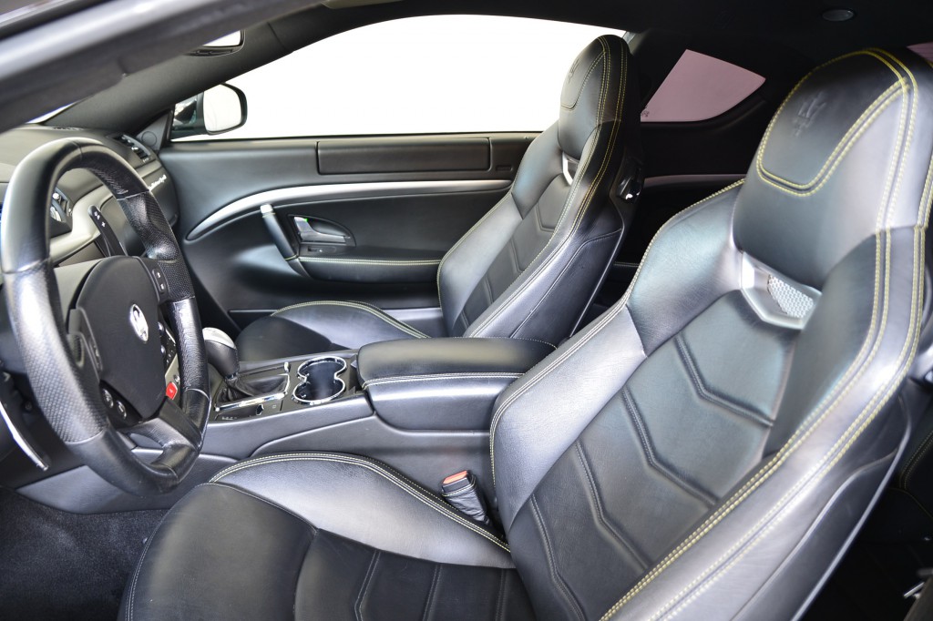 Noir métallisé avec les sièges Sport en cuir noir et les coutures jaunes