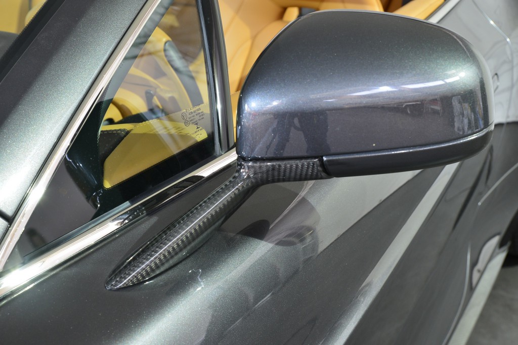 Météorite Silver métallisé avec le cuir Leather Sahara Tan & Bitter Chocolate Contemporary. La capote électrique est noire. Placage Piano black et volant One-77.