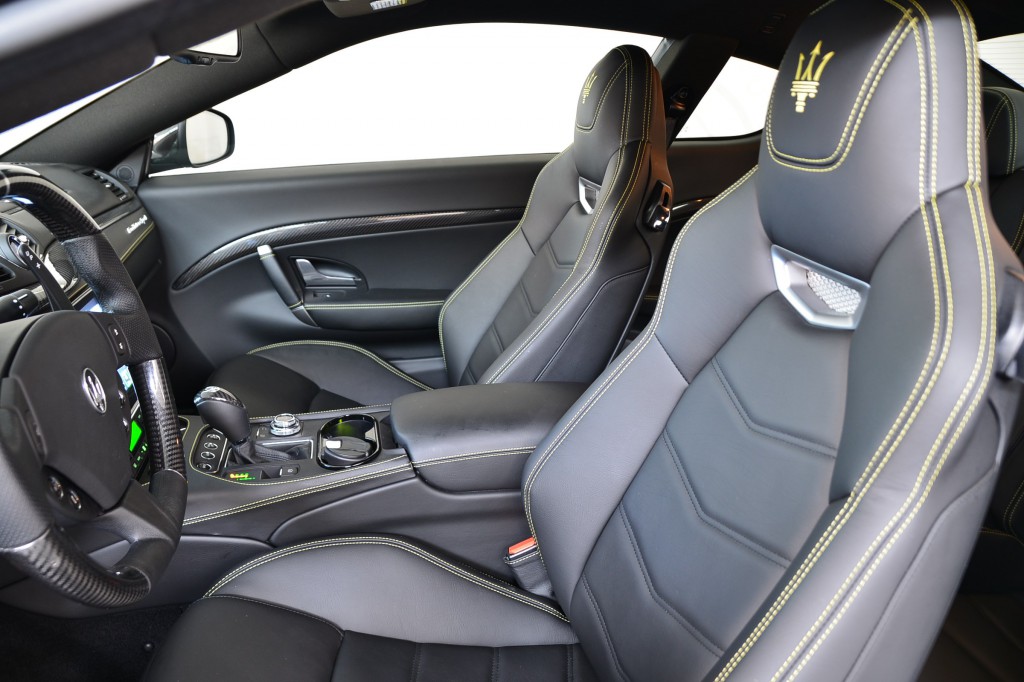 Noir Carbone métallisé avec les sièges Sport en cuir noir. Coutures jaunes.