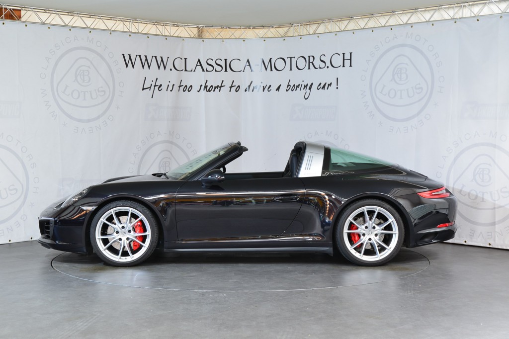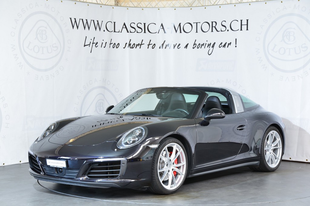 ¨LIFE IS TOO SHORT TO DRIVE A BORING CAR!", Excellent état et bel équipement pour cette Porsche 991.2 Targa 4S PDK., Noir métallisé avec les sièges en cuir noir. Equipement complet dont : Roues arrières directrices, Echappement Sport, PDLS, Pack Chrono Sport, Bose Surround Sound, Sièges éléctriques à mémoires, Sièges chauffants et ventilés, Volant chauffant, Régulateur de vitesse adaptatif, Etc..