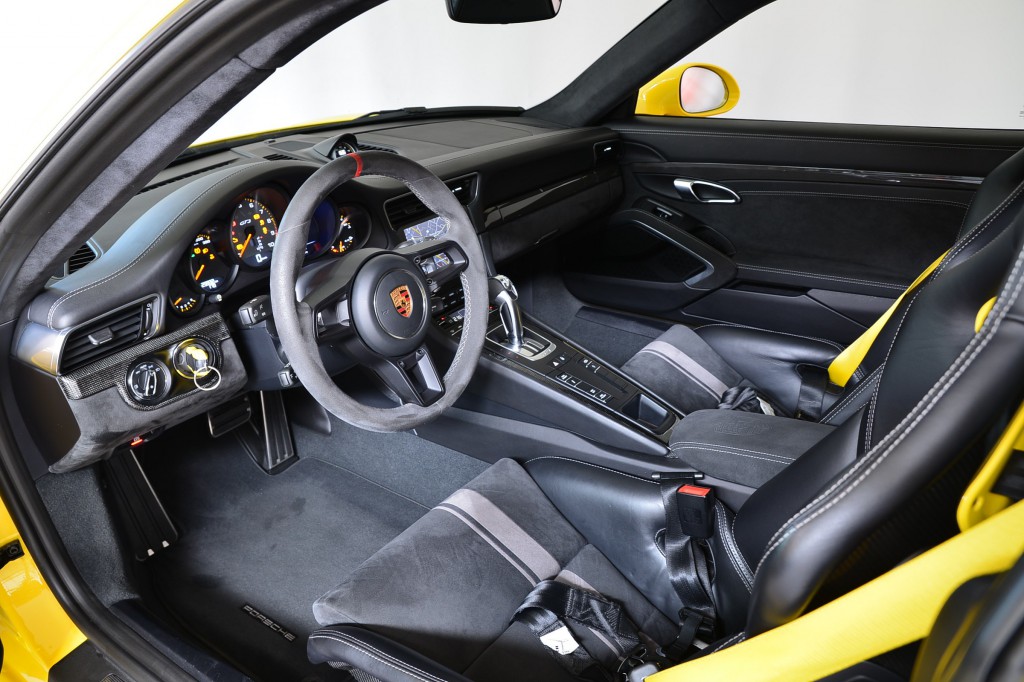 Equipement complet dont : Ceintures de sécurités 6 points jaune - Sièges baquets - Lift-system - Pare-brise avec bande colorée - Rétroviseurs extérieurs sport - Seuils de portes carbone - Logo Porsche sur accoudoir central - Poignées extérieures noires - Phares LED noirs - Détecteur de pluie - Système de nettoyage des phares en couleur - Clé en couleur jaune - Bouchon du réservoir alu - Tableau de bord en cuir avec surpiqûres argent - Pack carbone - Pare-soleil en Alcantara - Régulateur de vitesse - Caméra de recul - DAB - Navi - Bluetooth - Etc..