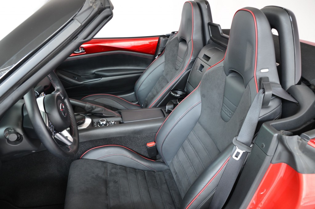 Soul Red métallisé avec les sièges en cuir et Alcantara noir.
