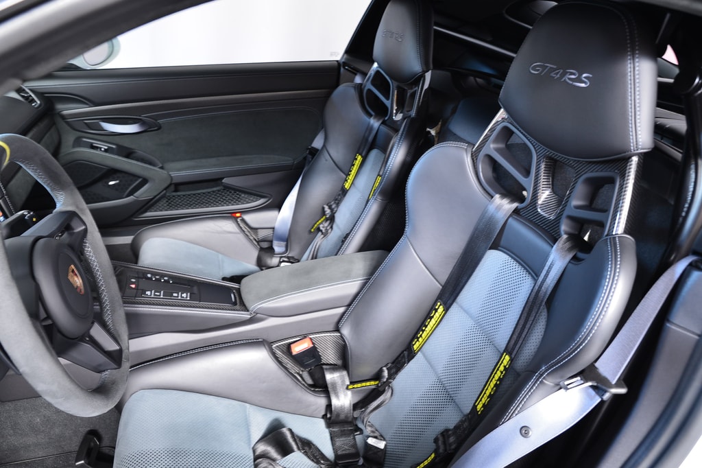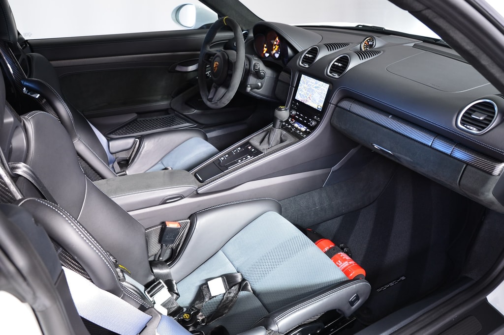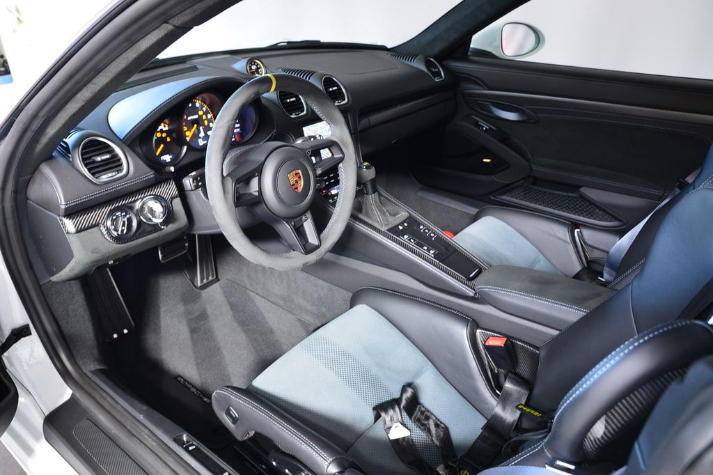 Equipement complet dont : Etriers de freins peints en noir - Lift System - Tapis de sol - Sièges baquets - Colonne de direction en cuir - Extincteur - Assistant au stationnement AV+AR avec caméra de recul - Bose Sound System - Ceintures 6 points - Pack Clubsport - Clé en couleur - Equipement Race-Tex - Porsche Swiss Package - Centures de sécurité Gris Arctic - Etc..