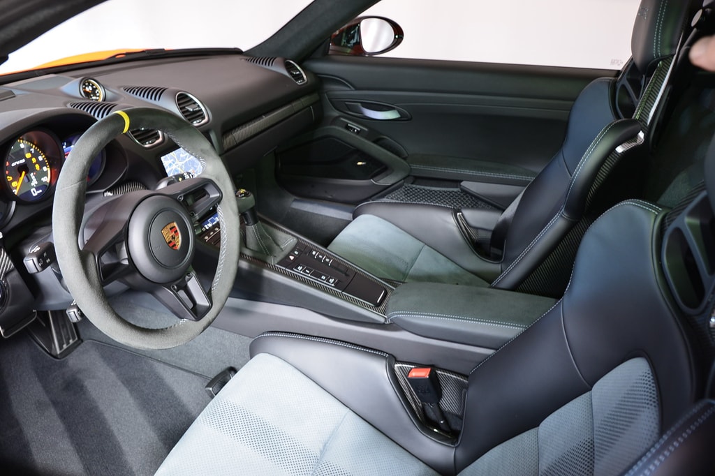 Equipement complet dont : Lift System - Feux AV LED avec PDLS - Détecteur de pluie et rétroviseur intérieur jour/nuit automatique - Sièges baquets - Extincteur - Assistance au stationnement AR avec caméra de recul - Bose Sound System - Pack Chrono - Pack Club Sport - Seuils de portes éclairés GT4 RS - Régulateur de vitesse - Le véhicule est actuellement présenté avec un covering orange, les phares AV ainsi que les coques de rétroviseurs sont recouverts d'un PPF - Etc..