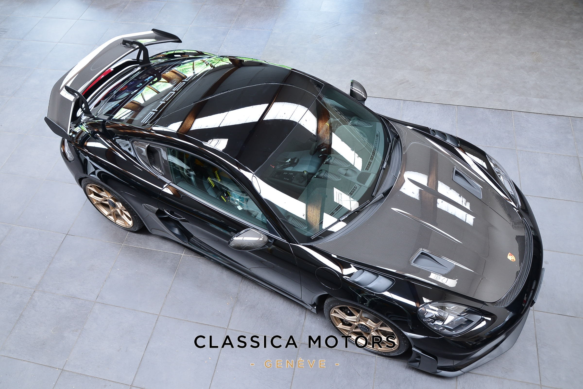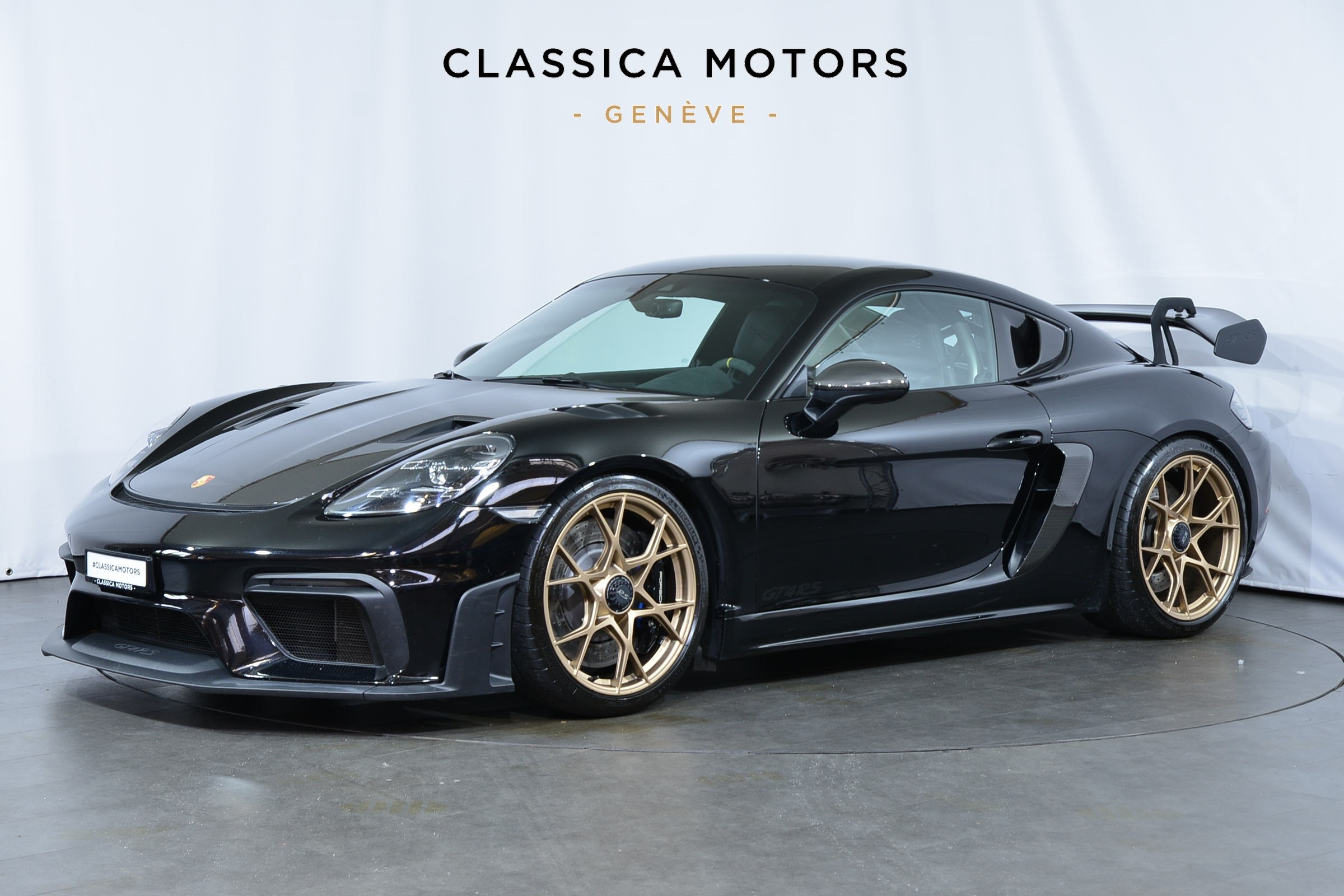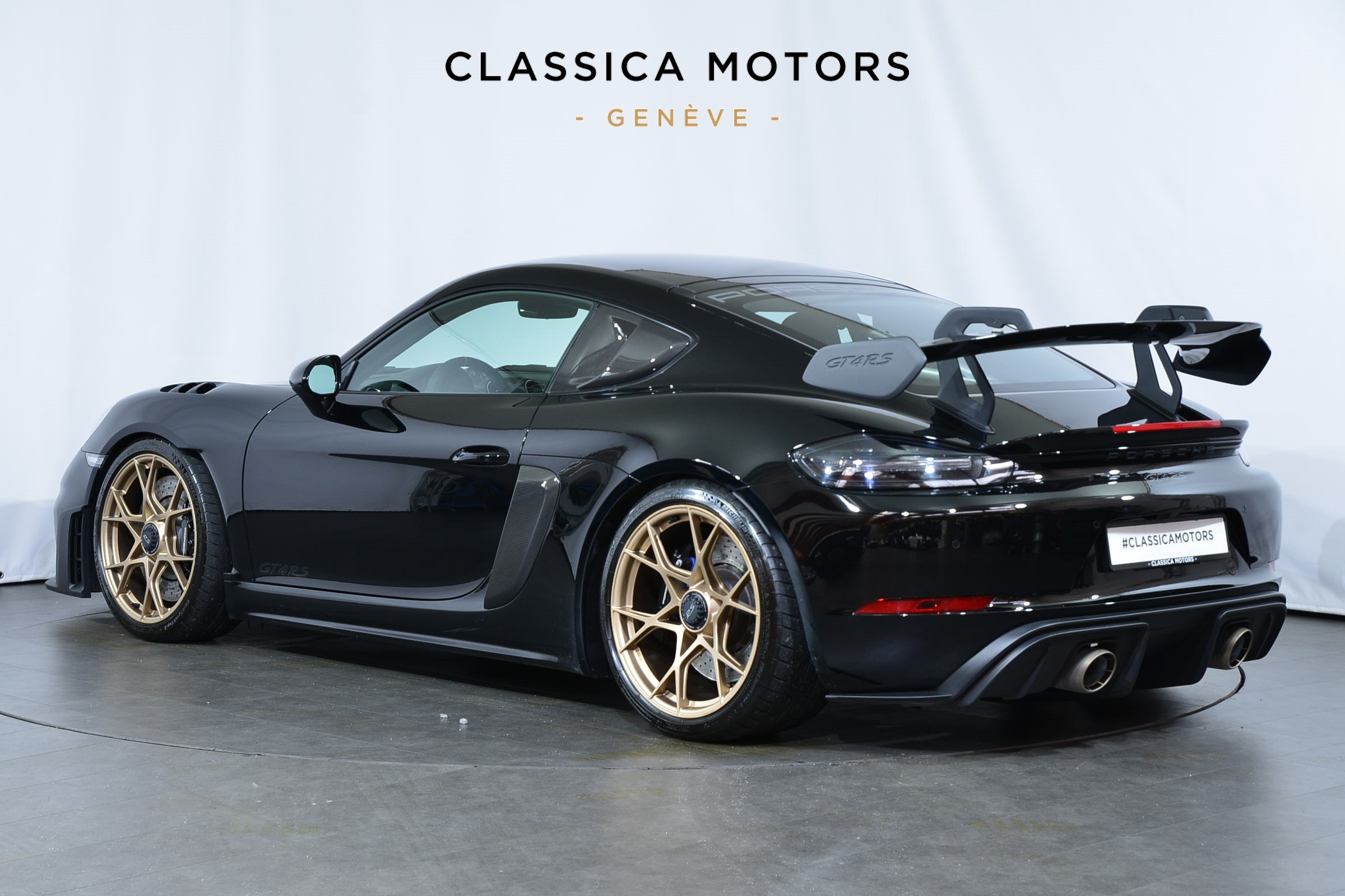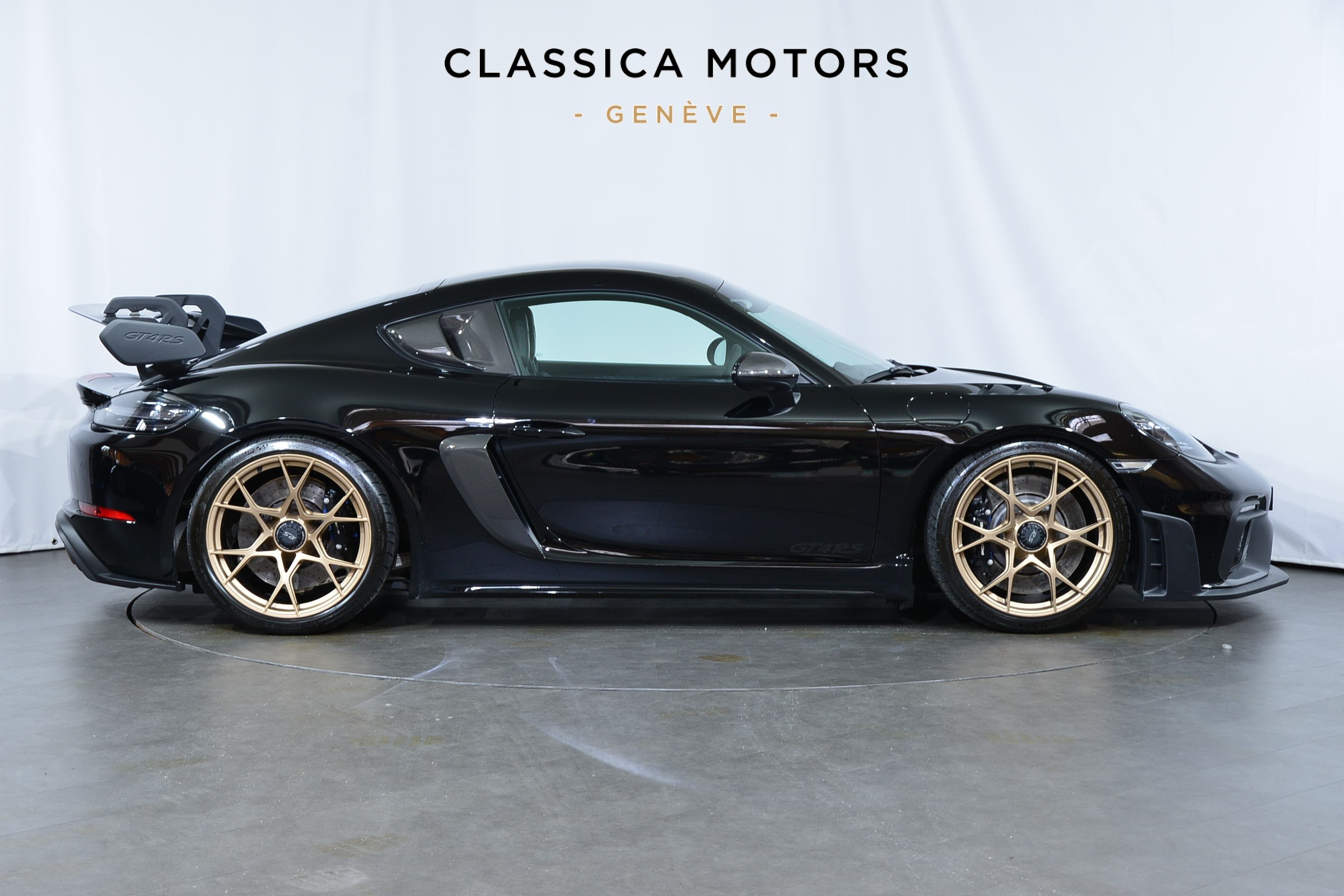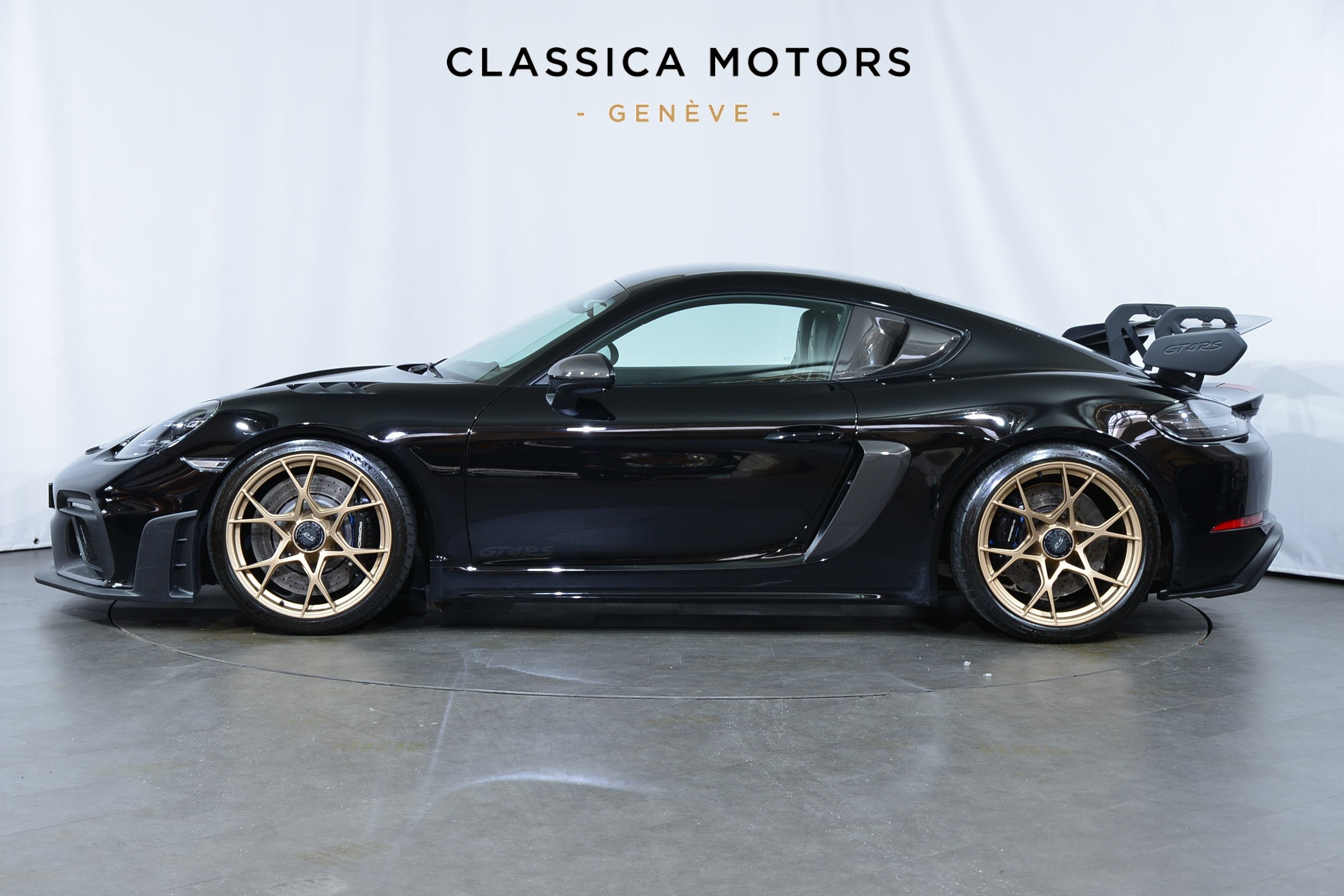 Porsche 718 Cayman GT4 RS PDK – Pack Weissach, Véhicule suisse de 1ère main, présenté dans une teinte Noir brillant avec sièges baquets en cuir et Race-Tex noir & gris Arctic.