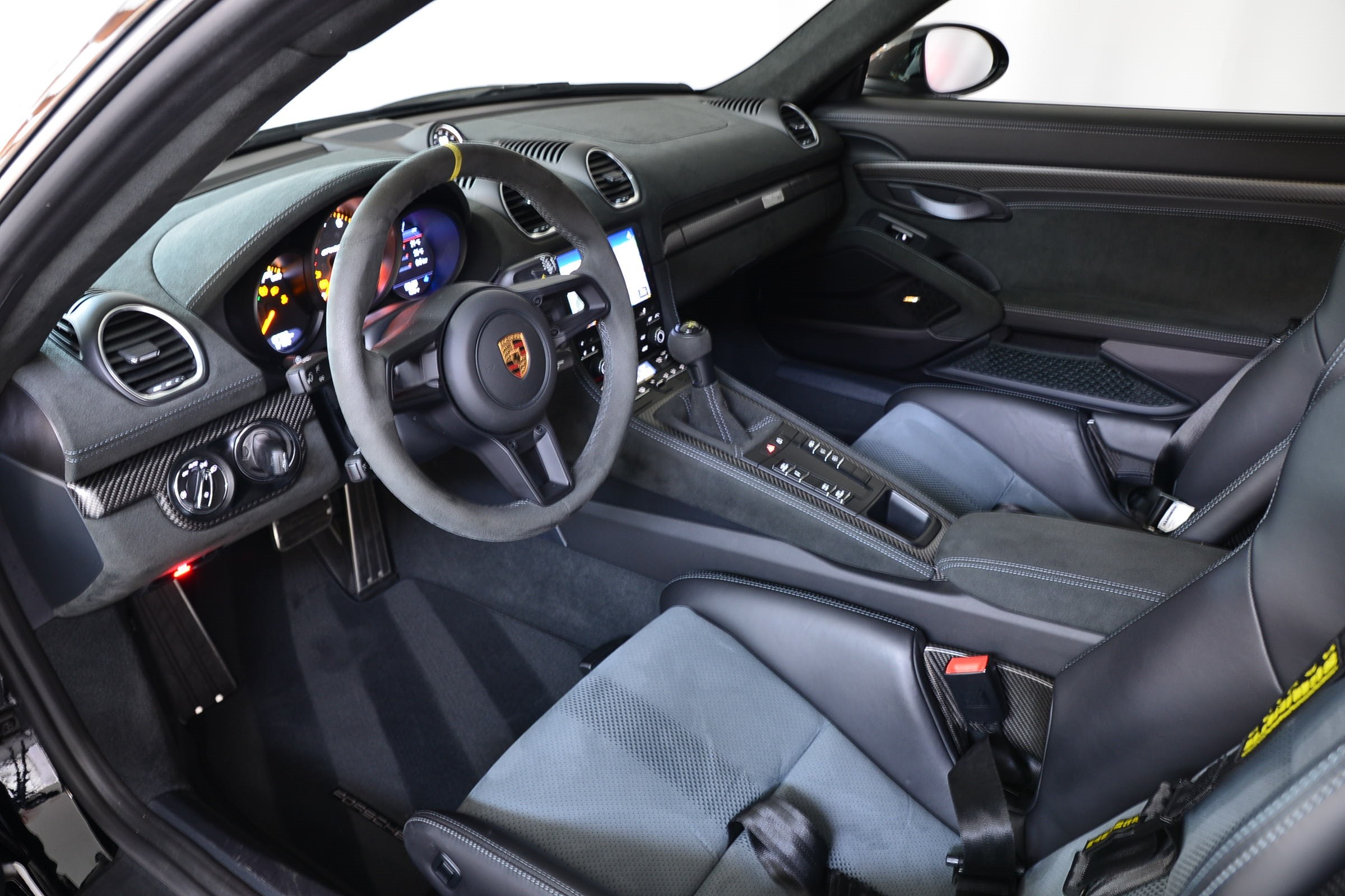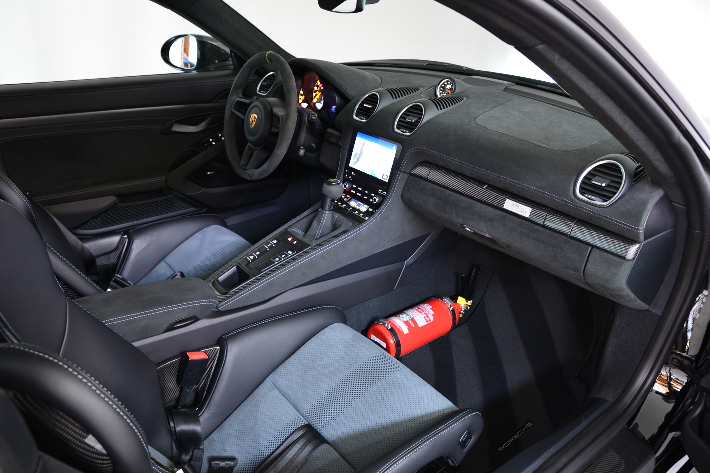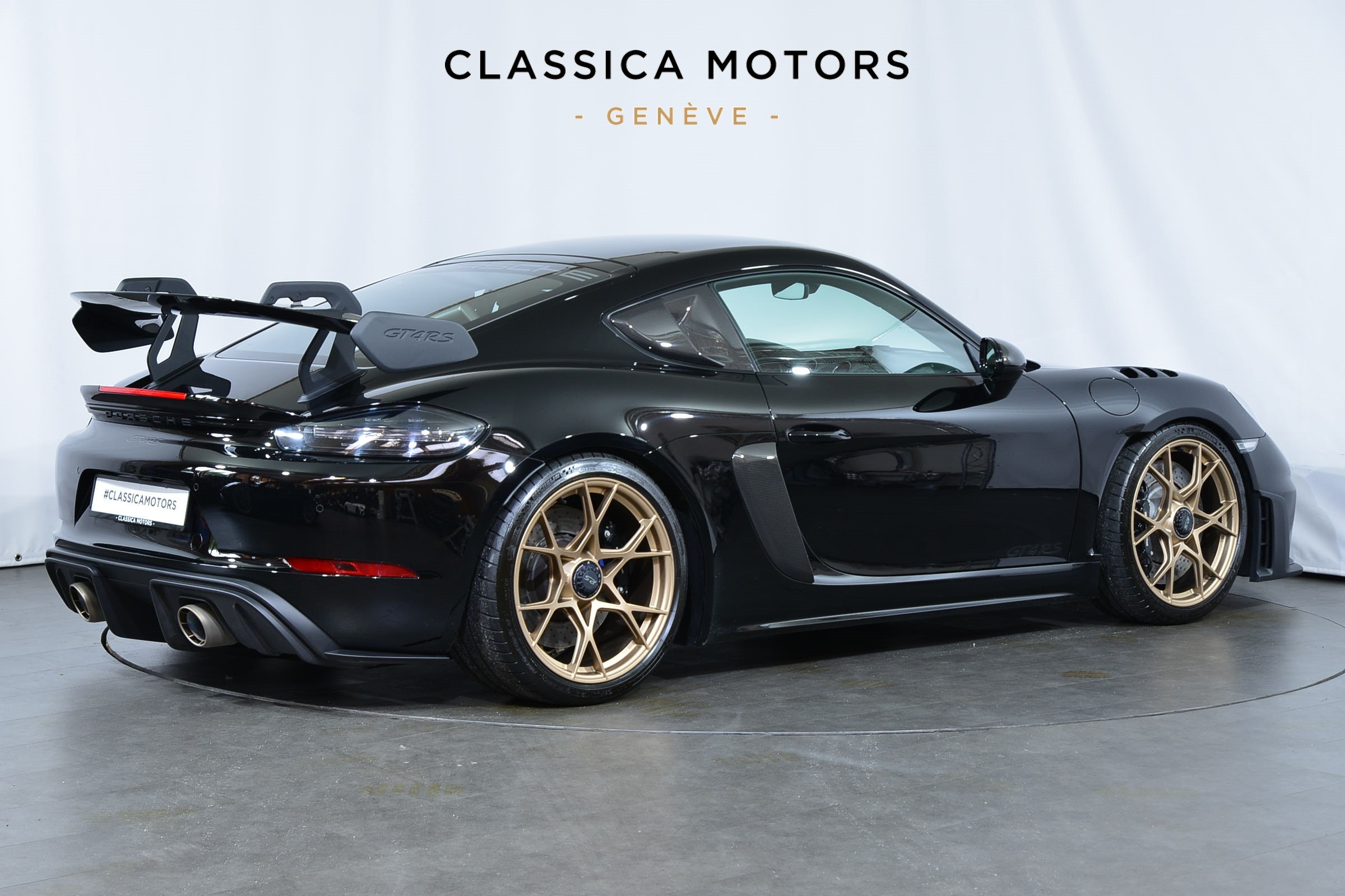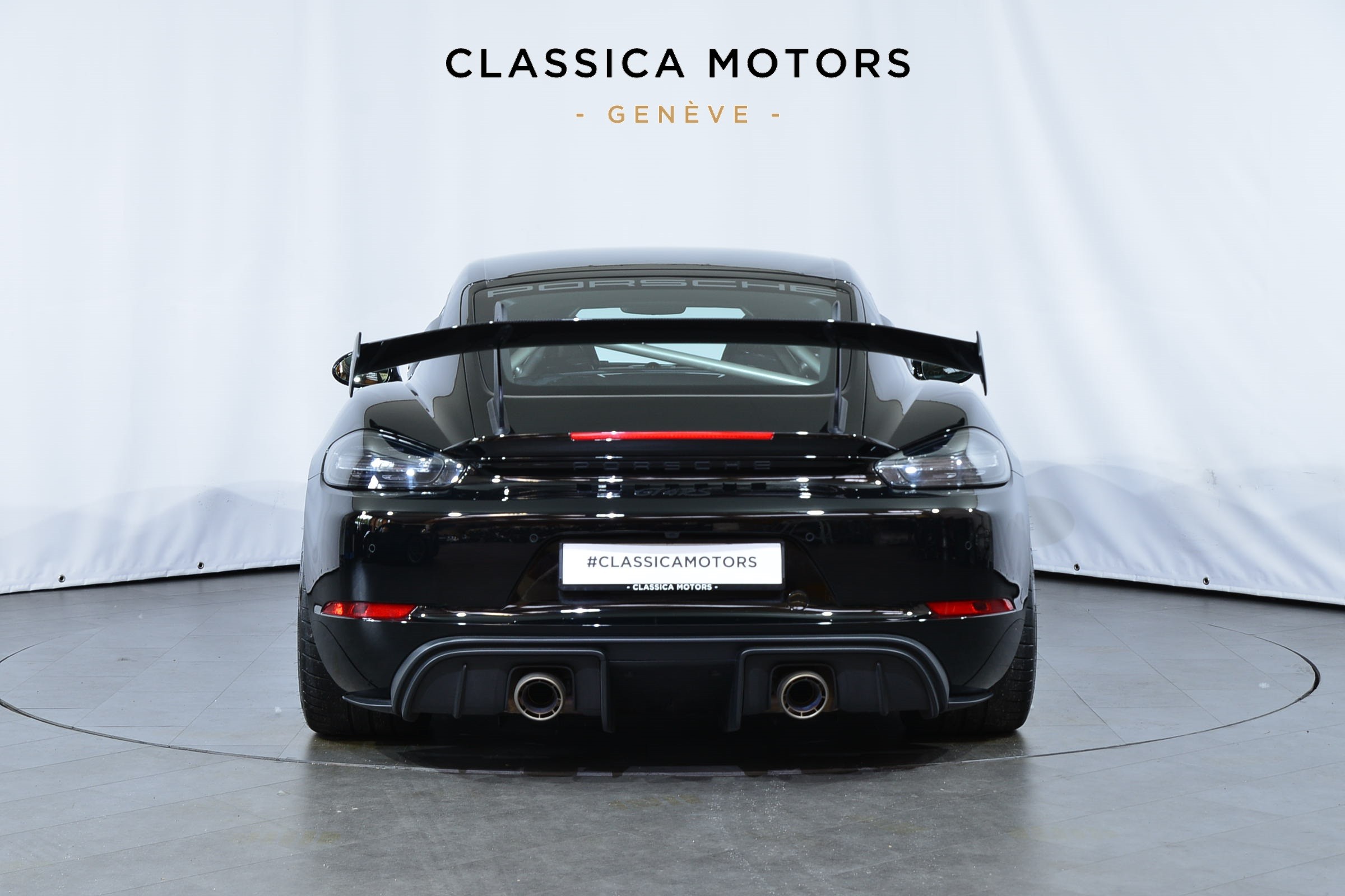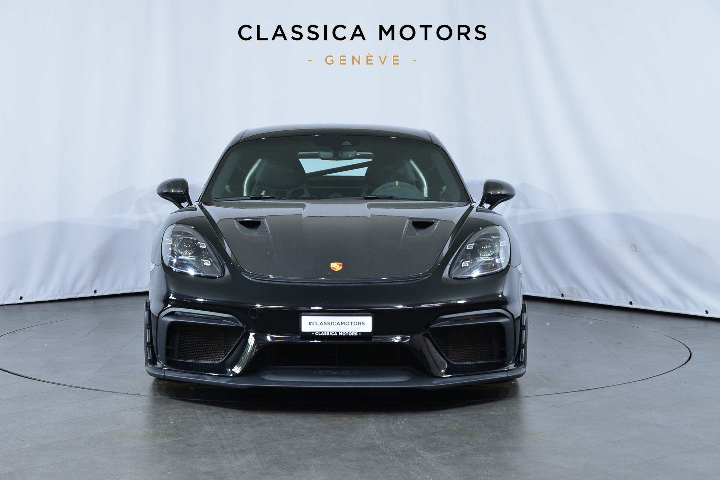 Porsche 718 Cayman GT4 RS PDK – Pack Weissach, Véhicule suisse de 1ère main, présenté dans une teinte Noir brillant avec sièges baquets en cuir et Race-Tex noir & gris Arctic.