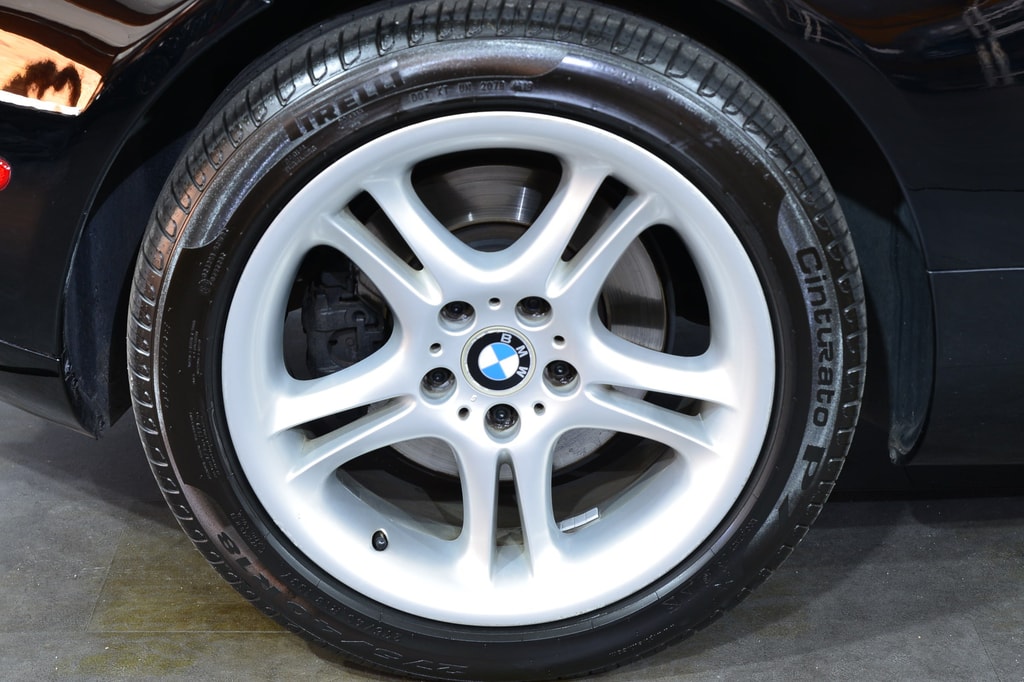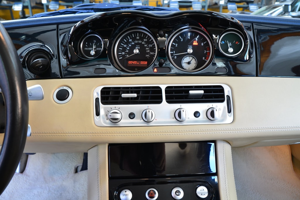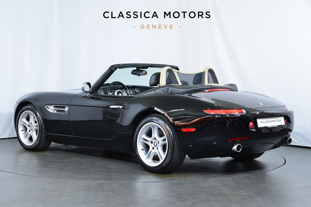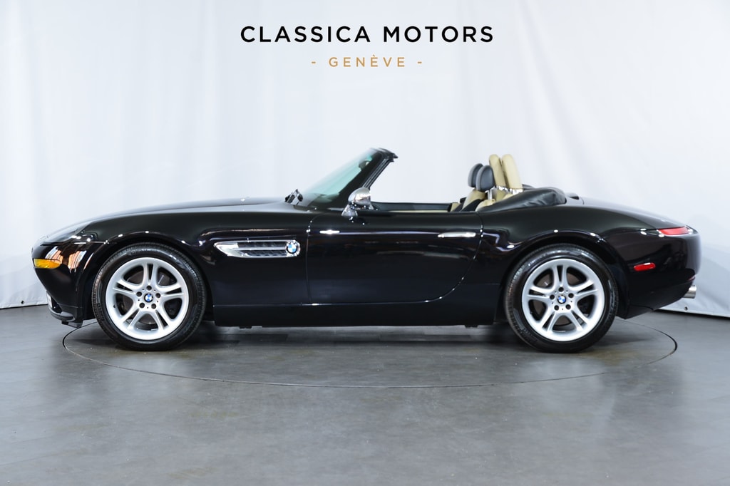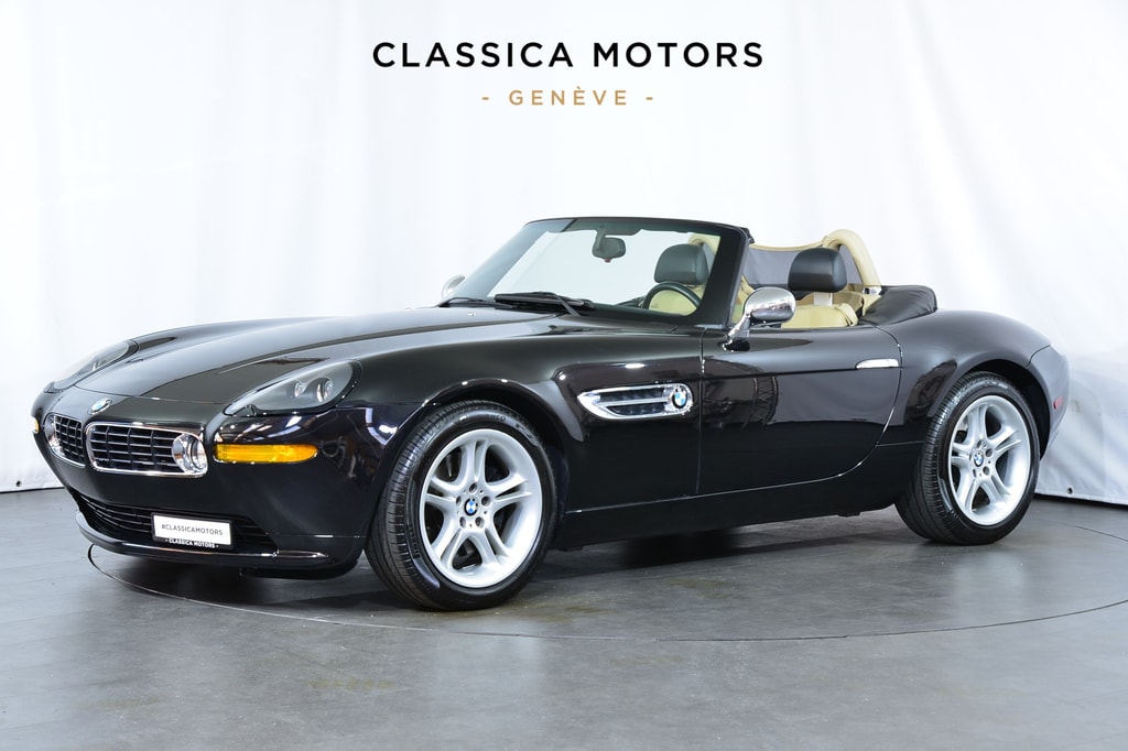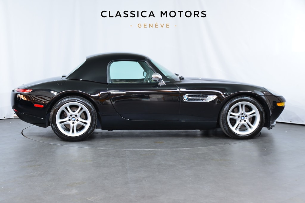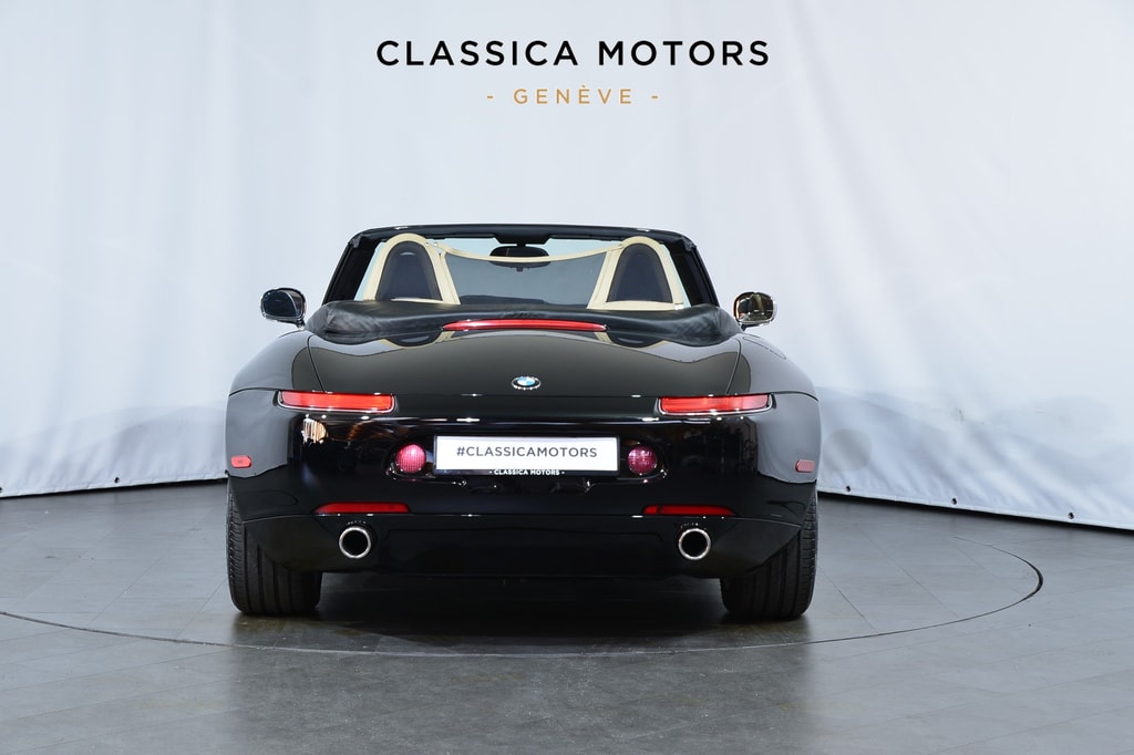 Noir métallisé avec les sièges en cuir beige noir et capote beige.