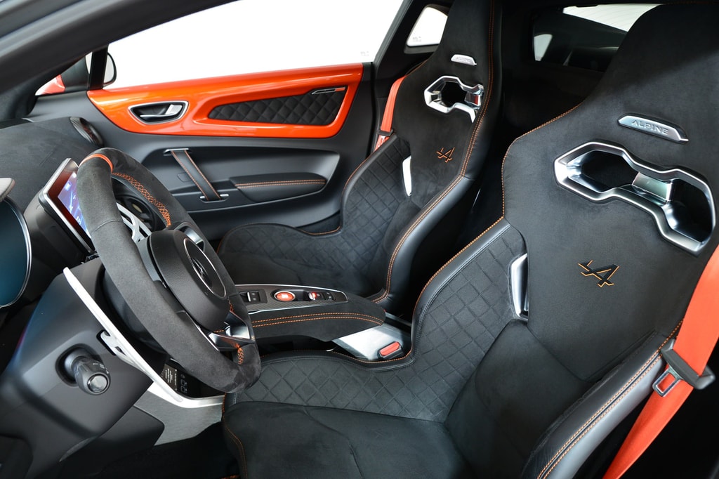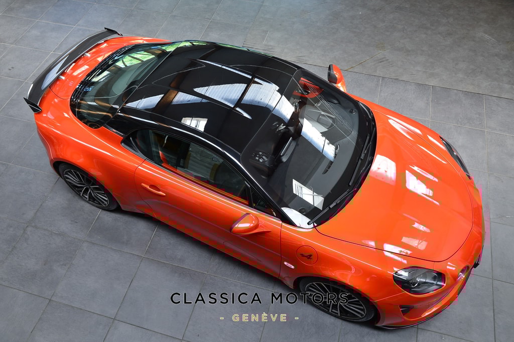 Equipement complet dont : Pack Microfibre - Volant Microfibre - Pack rétroviseurs - Rétroviseurs extérieurs rabattables électriquement - Rétroviseur intérieur jour / nuit automatique - Aide au parking AV + AR avec caméra de recul - Jantes 18" GT Race - Pack Kit Aero - Lame avant + Aileron carbone - Boomerang feux avant noir - Sièges baquets Sabelt Racing - Tapis de sol avec logo Alpine - Prédisposition pour ceinture 6 points - Système audio Focal - Peinture du toit contrastée noir profond - Ceintures orange - Etc..