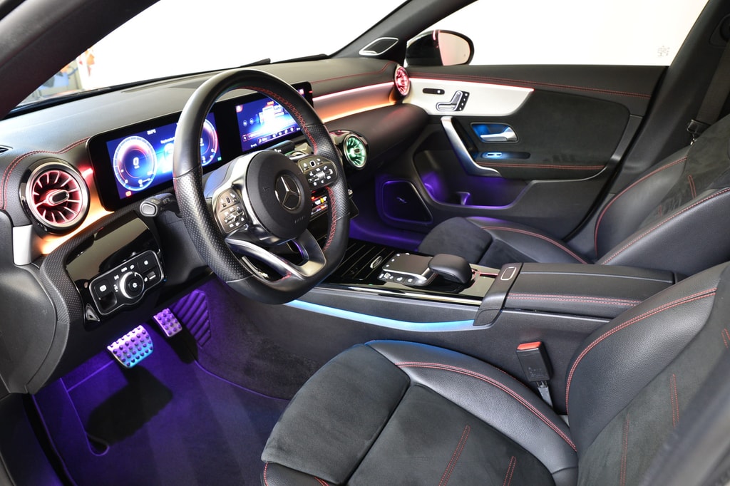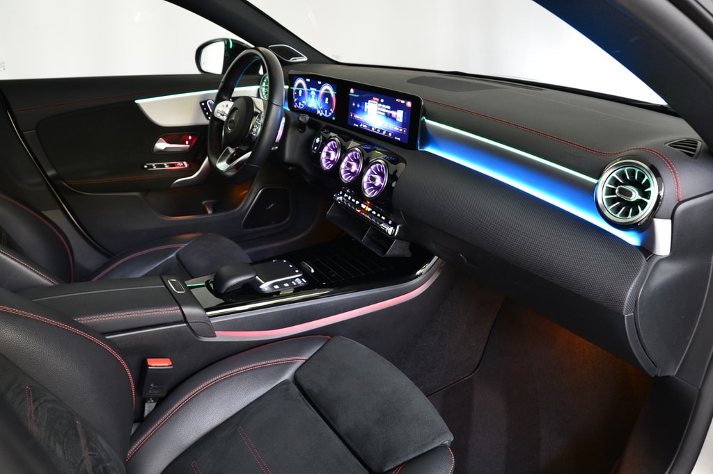 Equipement complet dont : Détection des panneaux de signalisation - Vitres avec verre isolant incl. vitres latérales à partir du montant B teintées sombres - Revêtement interne du toit noir - Assistant grands phares adaptatifs Plus - KEYLESS GO - Tapis en velours AMG - Airbags latéraux AR - Vide-poche sur la console centrale avec couvercle à enrouleur - Prise de courant dans le coffre - Pack coffre à bagages - PRE-SAFE système de sécurité - Eclairage d'ambiance Multi-Colour - Systeme dappel durgence Mercedes-Benz - Pack stationnement avec caméras panoramiques - Intégration du smartphone - Sièges sport à l'avant - Suppression de l'identification du modèle sur le hayon du coffre à bagages - Dossiers de sièges rabattables à l'arrière, - Pack d'assistance à la conduite - Système de freinage sport - Pack Sport Black sur AMG Line - Rétroviseurs extérieurs en couleur noir finition brillante - Jantes alliage AMG de 18" à 5 doubles branches Monte 235/40 R 18 sur 8 J × 18 - Pack Premium Plus- Pack Premium avec Edition -, LED MULTIBEAM projecteurs pour une visibilité parfaite: les phares MULTIBEAM, LED adaptatifs réagissent à la situation du trafic avec des LED individuellement gérables., Les feux-route partiels évitent les autres usagers de la route, sans les éblouir. Quant à, l'éclairage adaptatif et dans les virages, il illumine le champ de vision de manière optimale,, ce qui vous permet de détecter plus rapidement les dangers - Siège conducteur à réglage électrique avec memory - Siège passager à réglage électrique avec memory - Accoudoir central AR - Ecran d'instruments entièrement numérique - Ecran médias - Systeme de sonorisation Surround Burmester - Navigation par disque dur - Toit ouvrant panoramique - Pack confort KEYLESS-GO - Pack Stationnement avec caméra de recul - Sièges chauffants pour conducteur et passager avant Chaleur douillette et donc confort, d'assise et de déplacement élevé. Par temps froid ou en fonction de vos souhaits, les, surfaces d'assise des sièges chauffants arrivent rapidement à une température agréable., L'intensité se règle sur trois niveaux. Intelligents et commodes, les sièges chauffants se, désactivent automatiquement - Soutien lombaire à 4 réglages - Pack rétroviseurs - Rétroviseurs extérieurs électriquement rabattables - l'éclairage d'environnement - Etc..