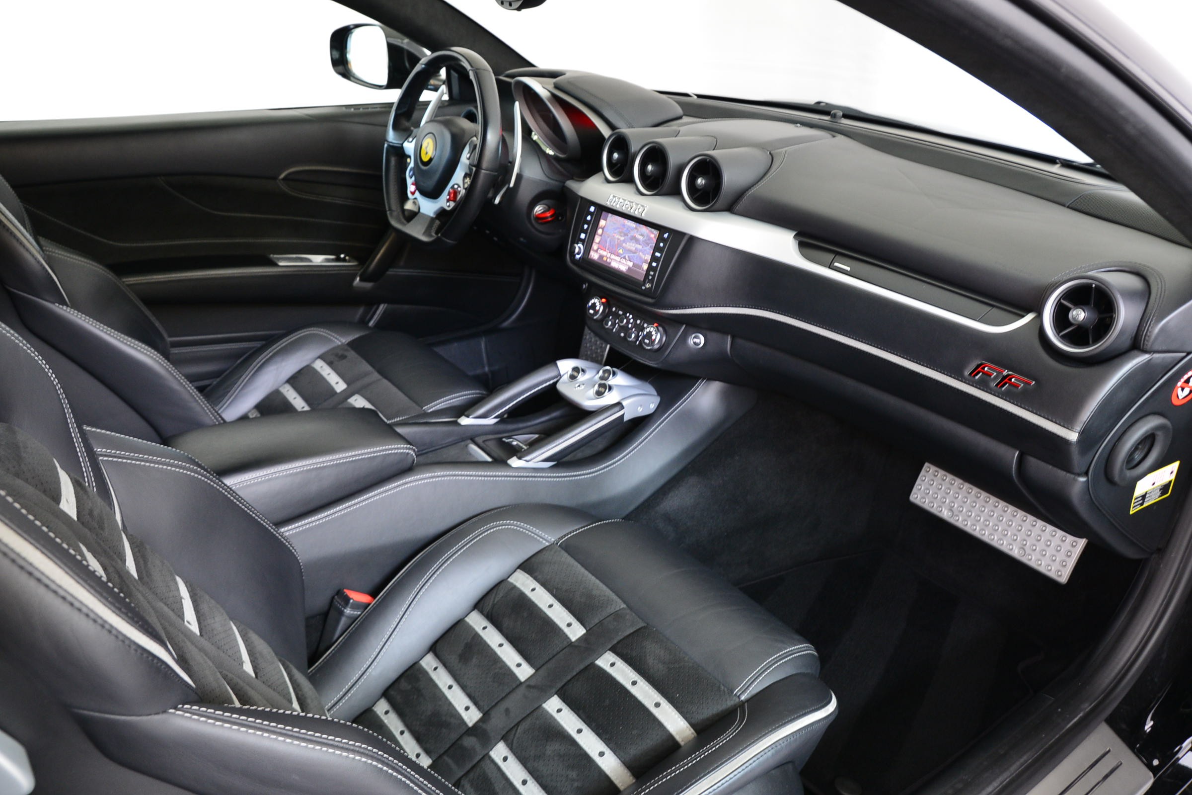 Ferrari FF 6.2 V12 4 roues motrices – Boîte séquentielle 7 vitesses, Véhicule suisse, présentée dans une élégante teinte Noir métallisé avec sièges Daytona en cuir & Alcantara noir et gris.
