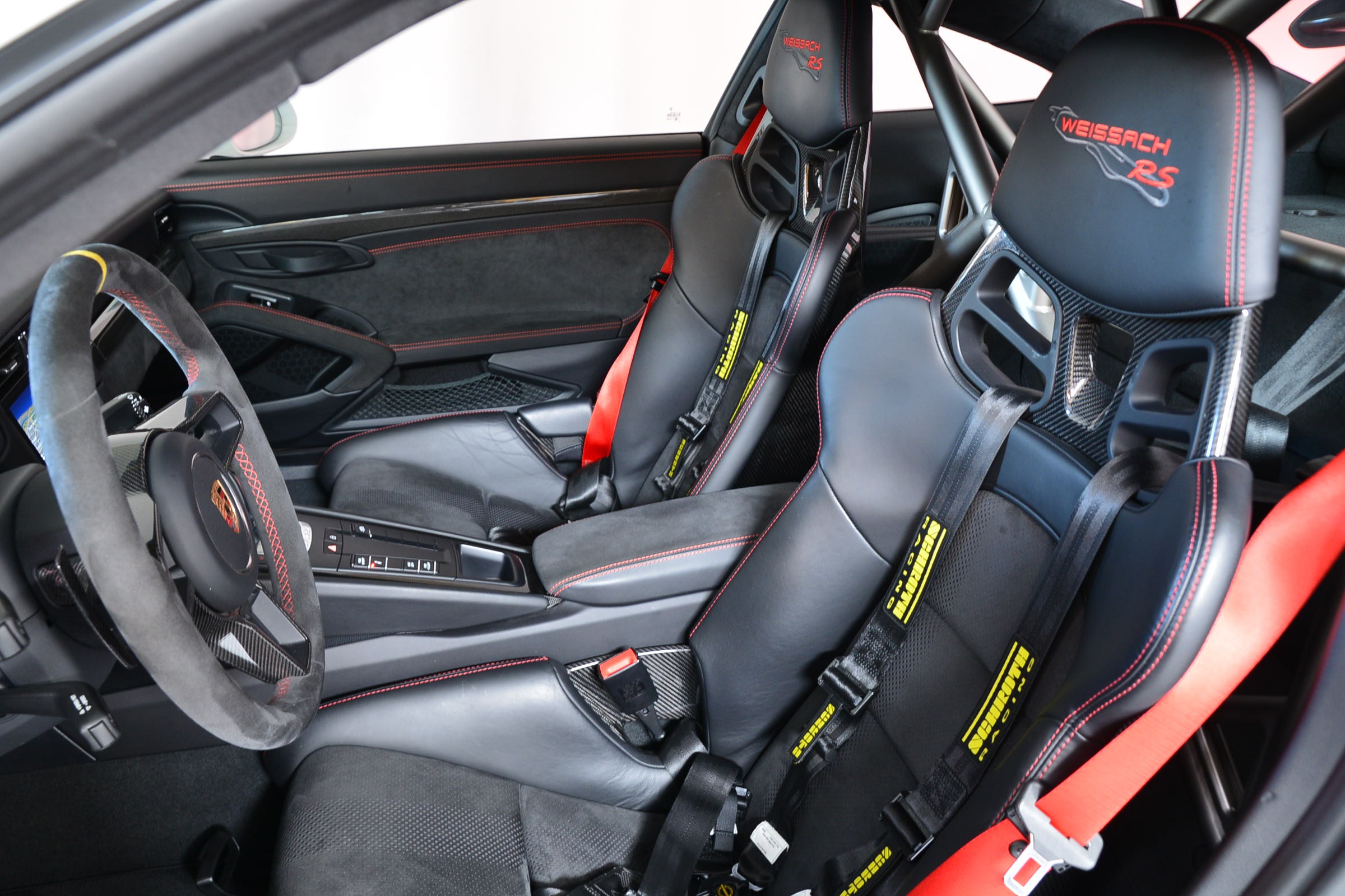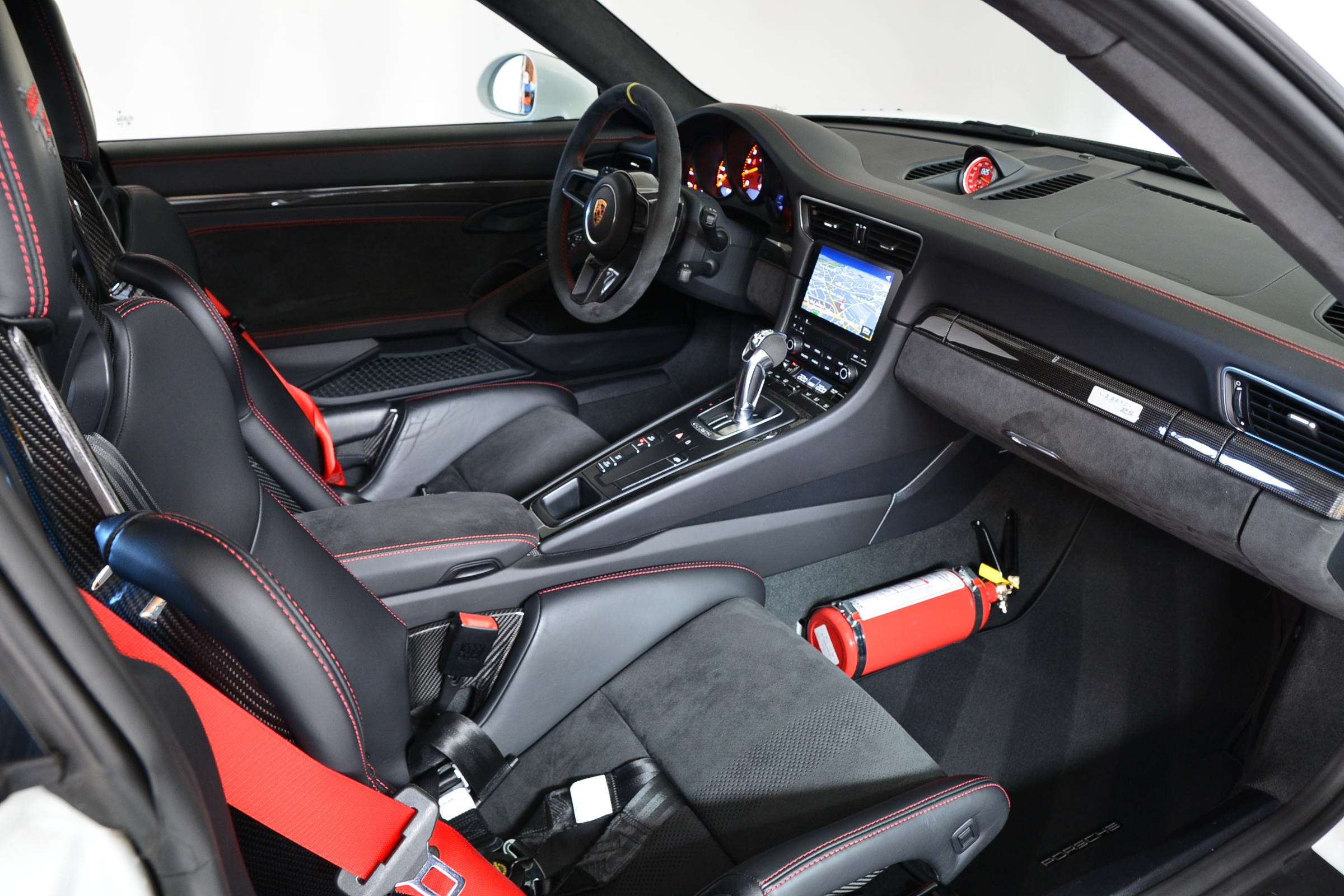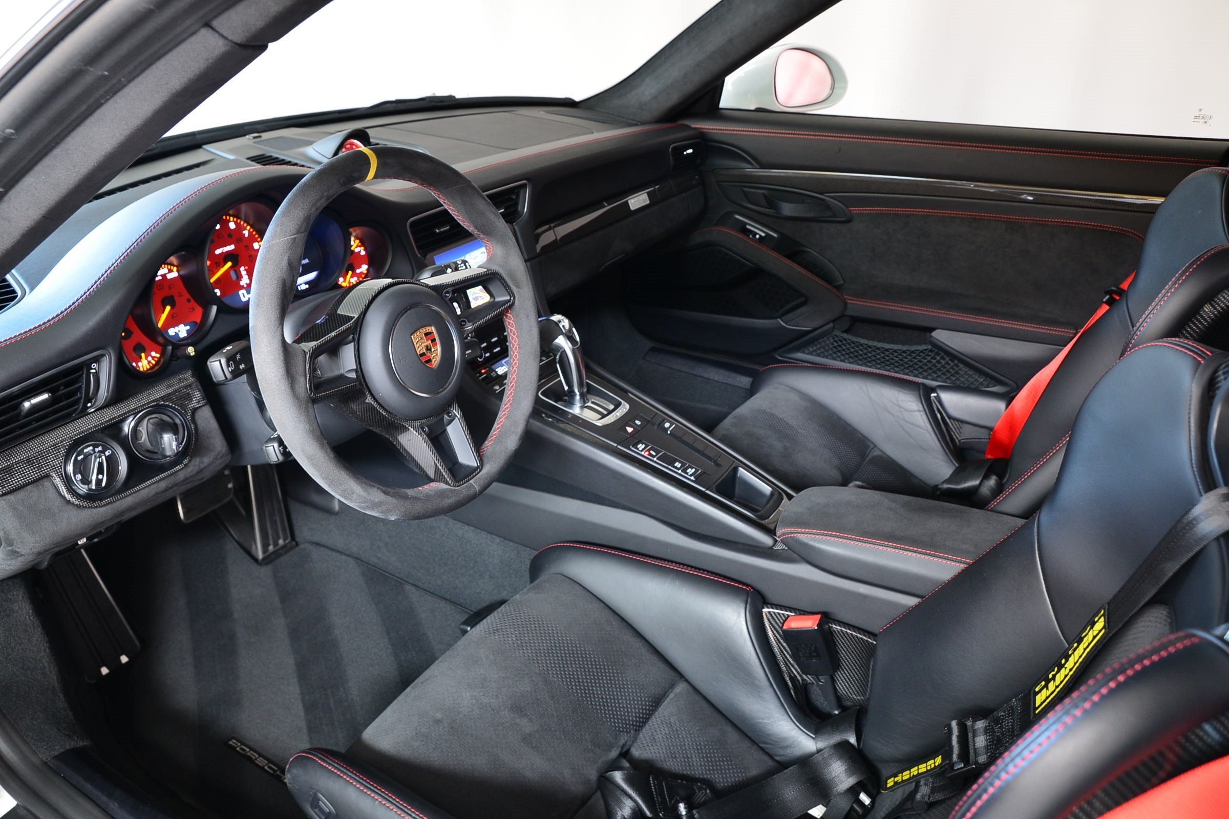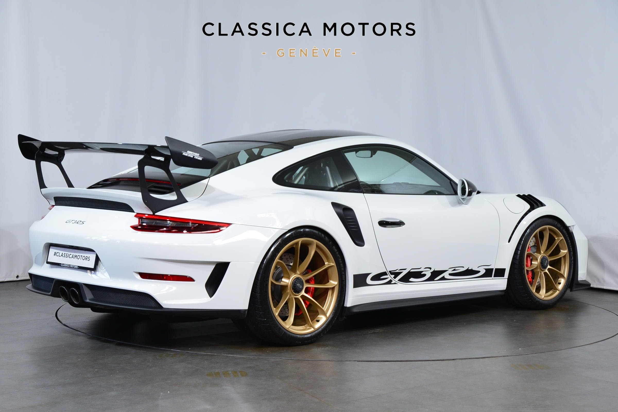 Porsche 911 GT3 RS (991.2) Pack Weissach, Véhicule suisse, présentée dans une teinte Blanc uni avec sièges baquets noirs.