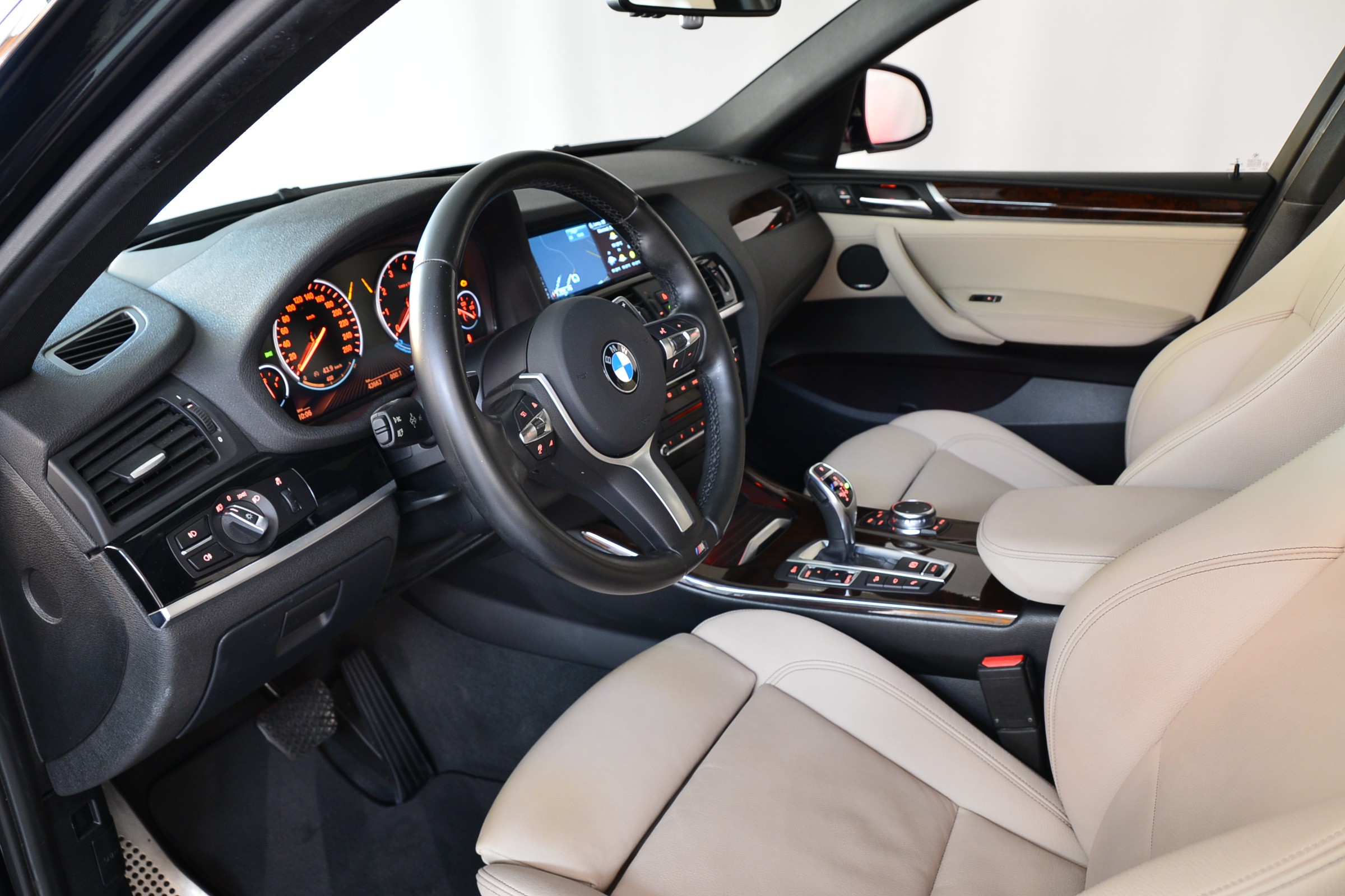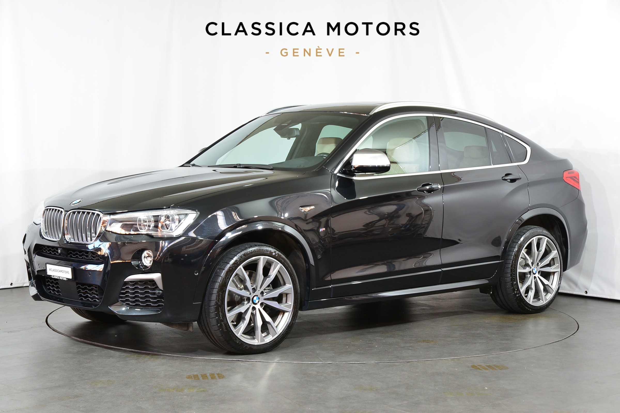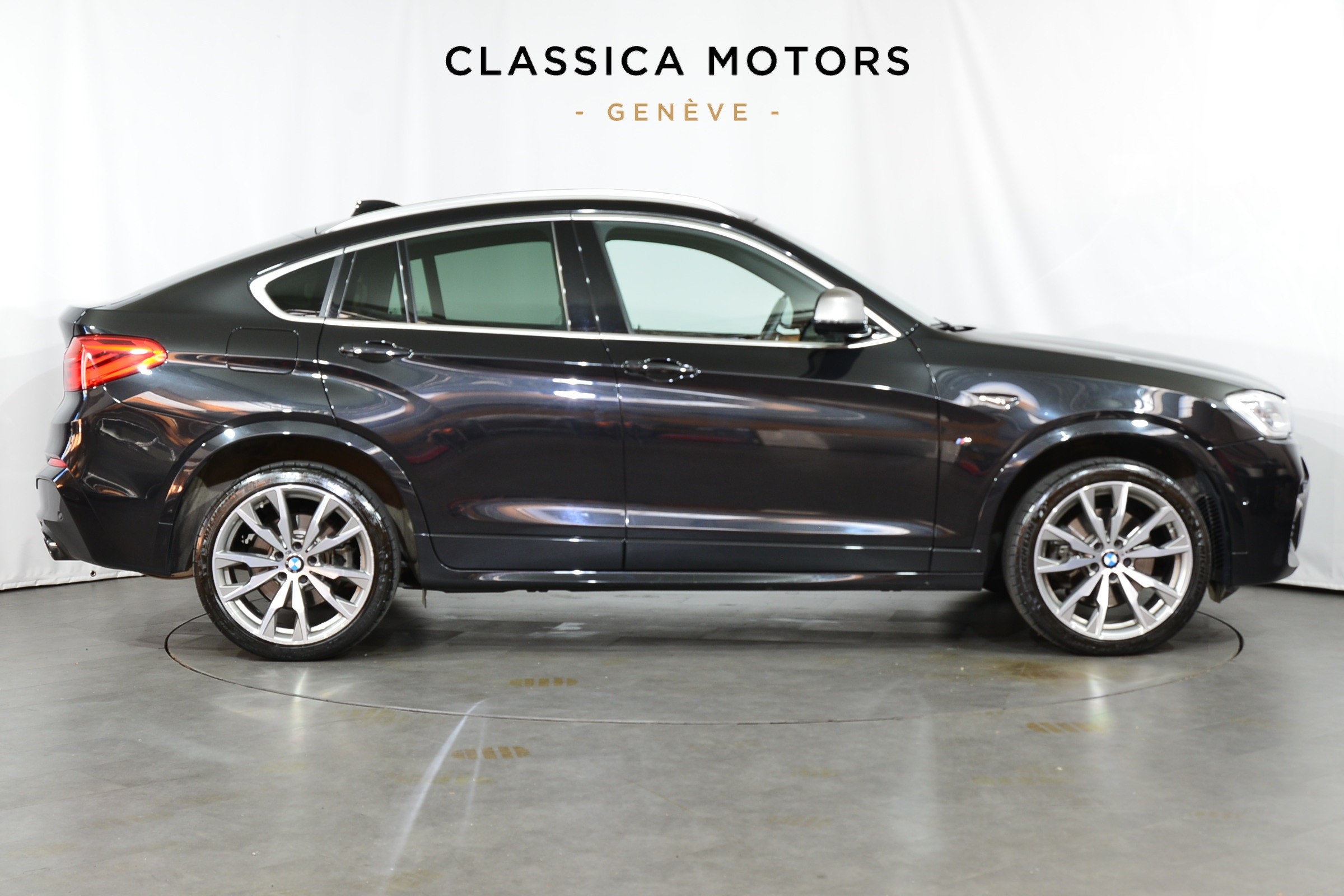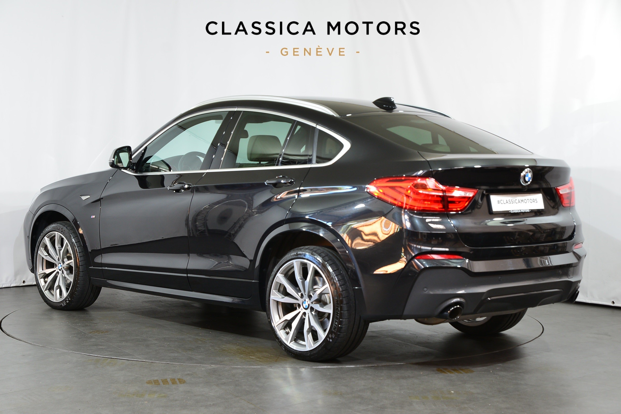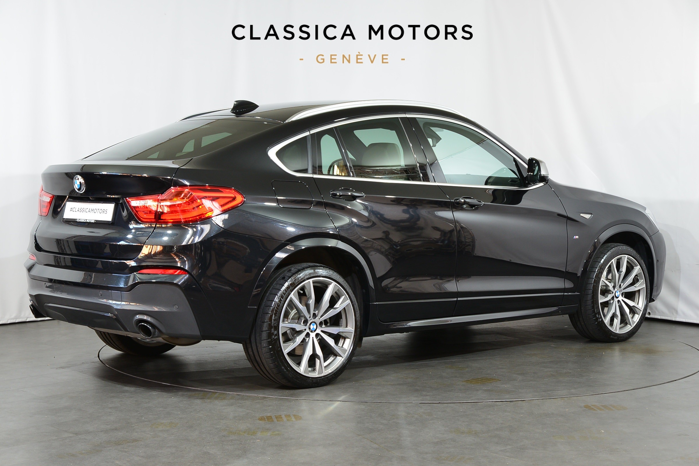 BMW X4 M40i, Véhicule suisse, présenté dans une élégante teinte Noir Saphir métallisé associée à un intérieur en cuir beige.