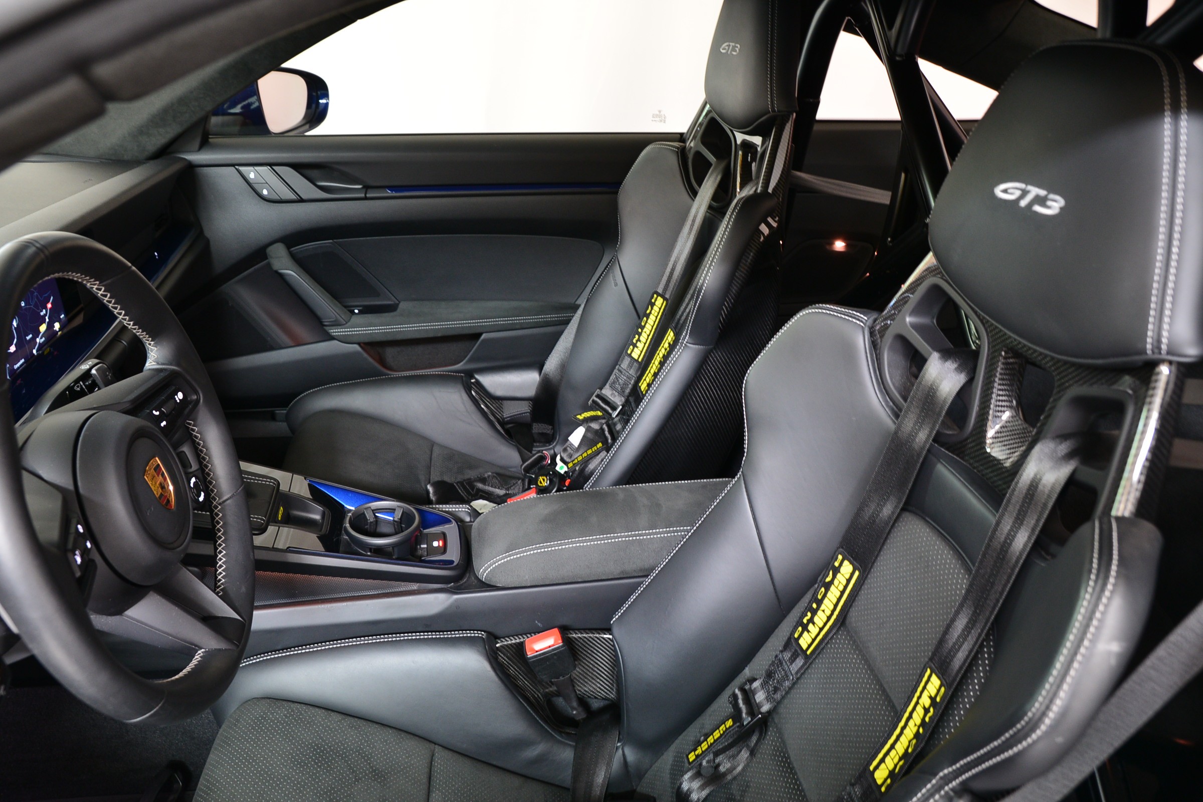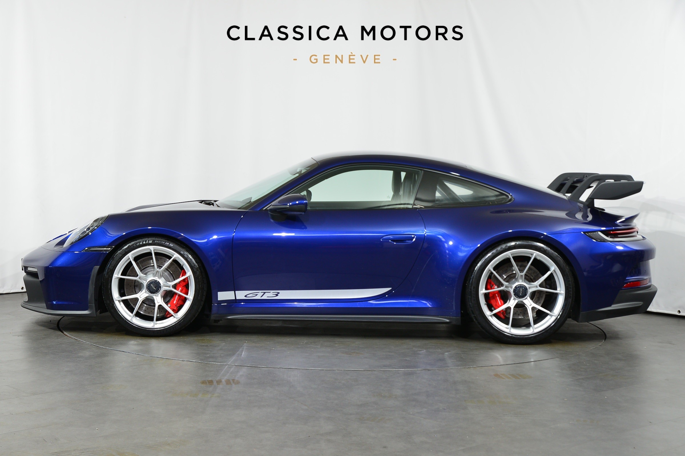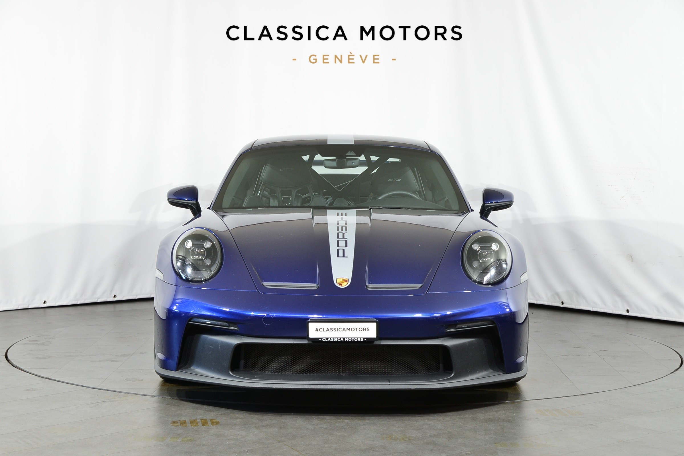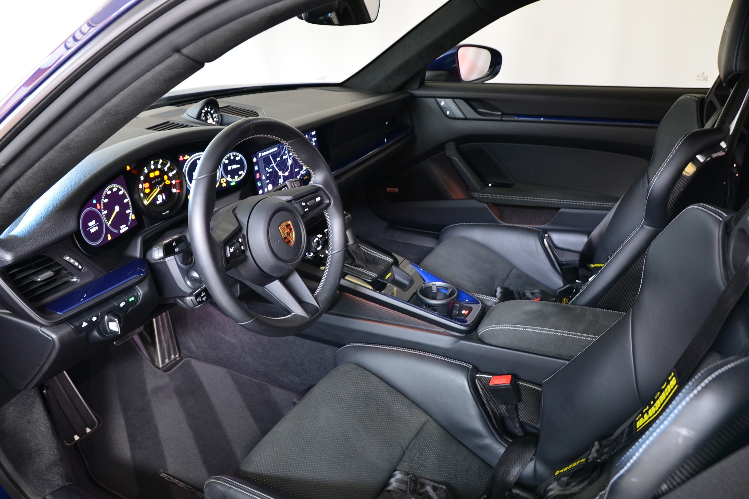 Porsche 911 GT3 PDK, Véhicule suisse, présentée dans une superbe teinte Bleu Gentiane métallisé avec intérieur cuir et Alcantara noir.
