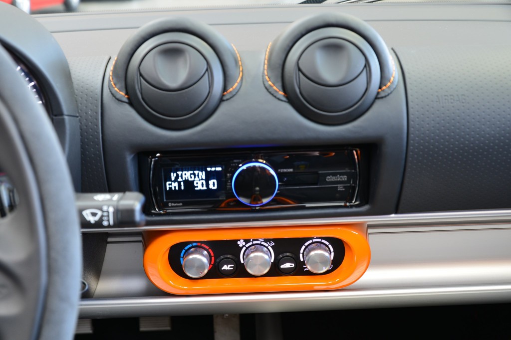 Orange métallisé avec les sièges Carbone en Alcantara et coutures oranges.