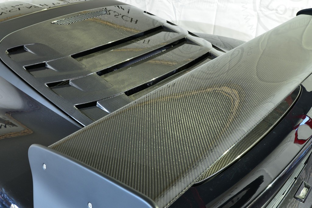 Noir métallisé avec les sièges Carbone en Alcantara et coutures rouges. Pack couleur extérieure rouge.
