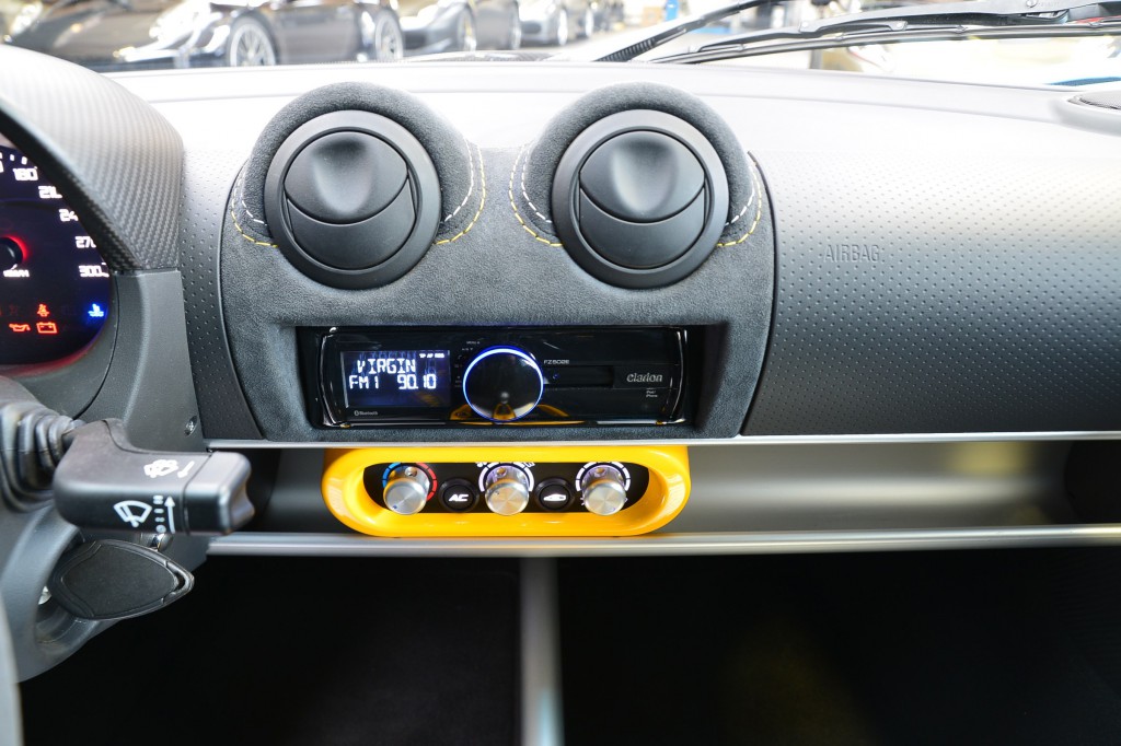 L'équipement est très complet dont: Echappement Titane à clapets - Pinces de frein AP Racing rouges - Volant Alcantara - Pack intérieur jaune - Pack Alcantara - Radio & 2 HP - Climatisation - Tapis de sol - Tapis intégral - Cruise control - Isolation phonique - Nombreuses pièces extérieures en Carbone - Jantes forgées noires - Batterie Lithium - Inserts Alcantara au tableau de bord - Seuils de porte en Carbone - Suspension Nitron réglable - Barres stabilisatrices Eibach - Etc..