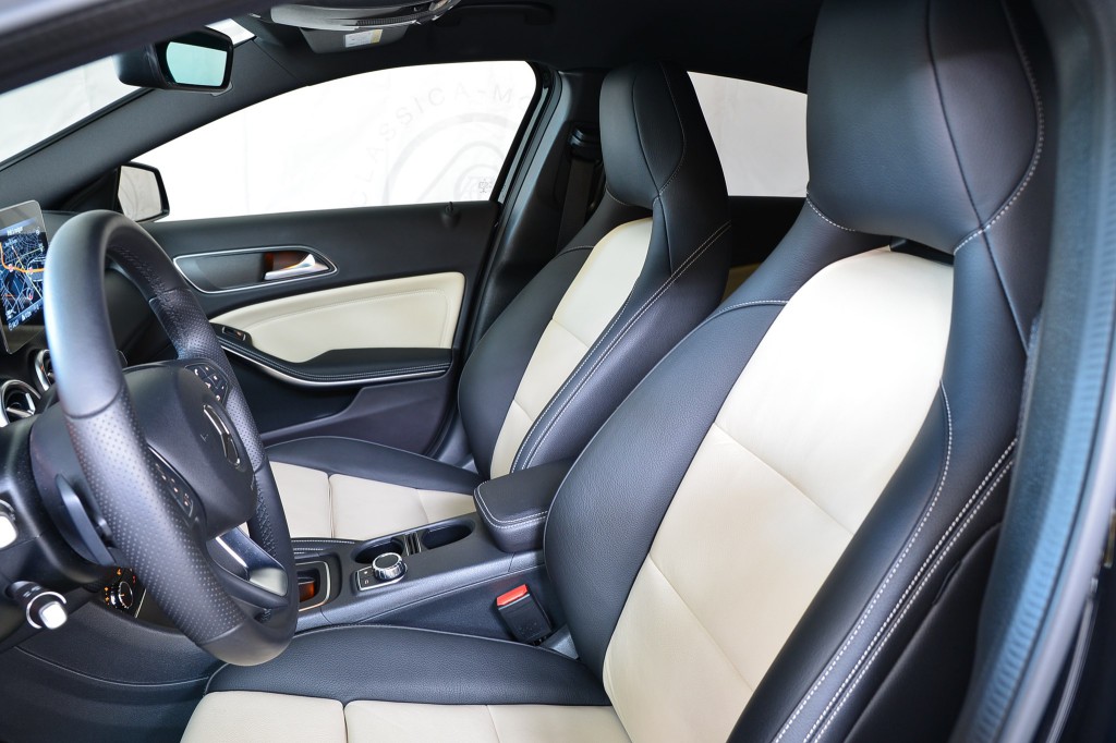 Noir métallisé avec les sièges chauffants en cuir Nappa noir et beige. Tableau de bord en cuir.