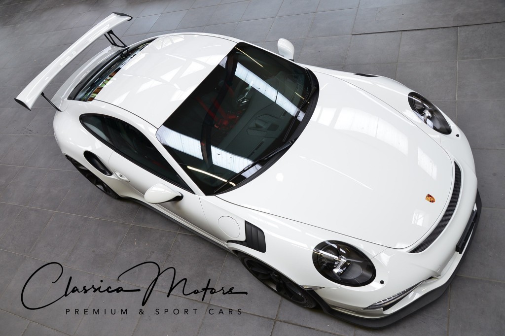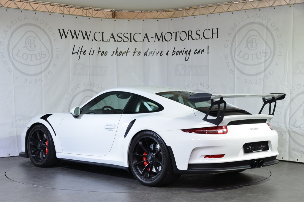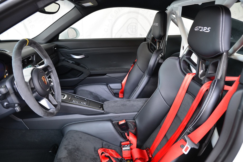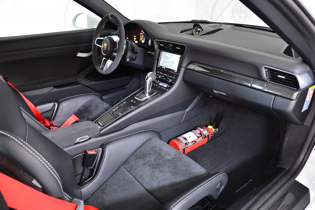 Bel équipement complet dont le pack Clubsport, le pack Sport-Chrono Plus, l'échappement Sport, le PCM, le réservoir 90 litres, le lift système, un harnais 6 points, le pack Audio ASK, l'arceau cage blanc, le pack éclairage, les tapis de sol, le Track APP, les clefs peintes en blanc, les phares Bi-xénon noirs et les feux de virage dynamiques, les seuils de porte en Carbone, les jantes peintes en noir satiné, les ceintures de sécurité en rouge Indien, le logo Porsche sur la console centrale, Etc..