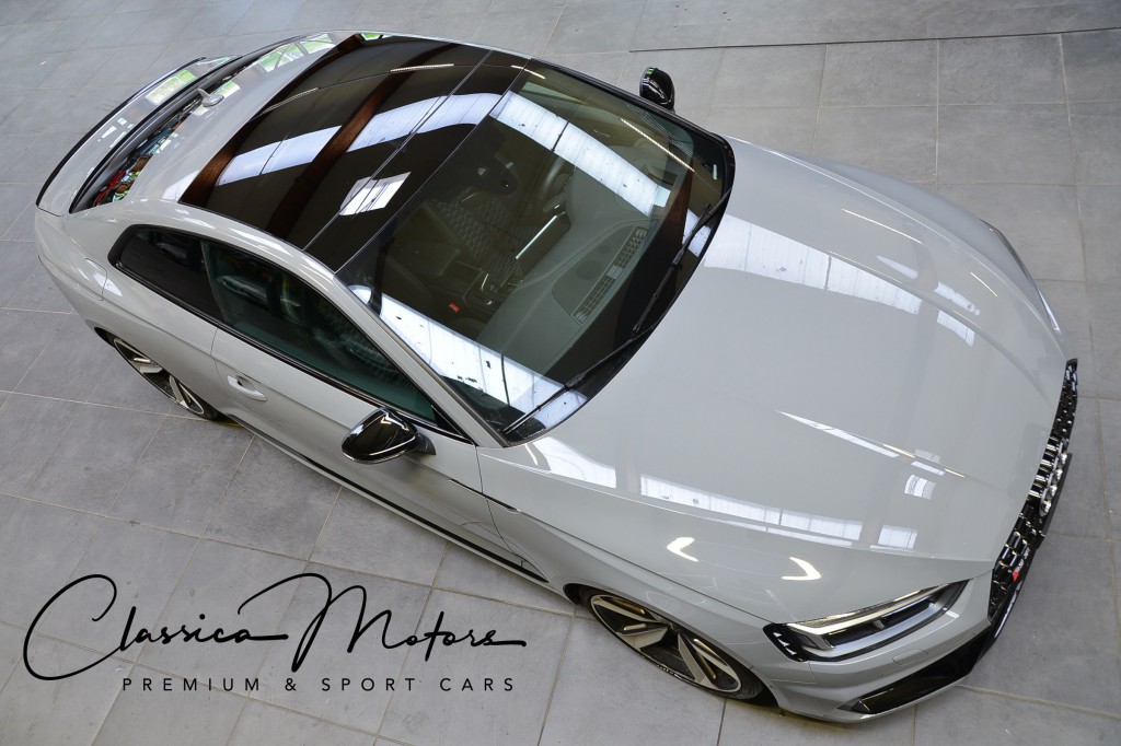 Equipement complet dont les jantes Audi Sport 20'' Peak anthracite mat, le navigation système MMi Plus, les sièges électriques à mémoire, le Sound-Système Bang & Olufsen, l'aide au parking arrière Plus, l'Audi virtual cockpit 12,3'', les applications en Carbone, le cruise control adaptatif, le toit panoramique vitré, les vitres teintées Privacy, le paquet optique noir, l'échappement sport, le pack Infotainment, le Head-Up Display, la caméra de recul, le pack Dynamique, Etc..