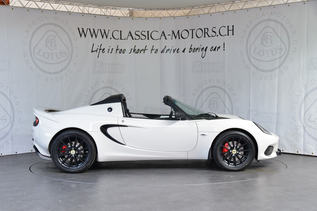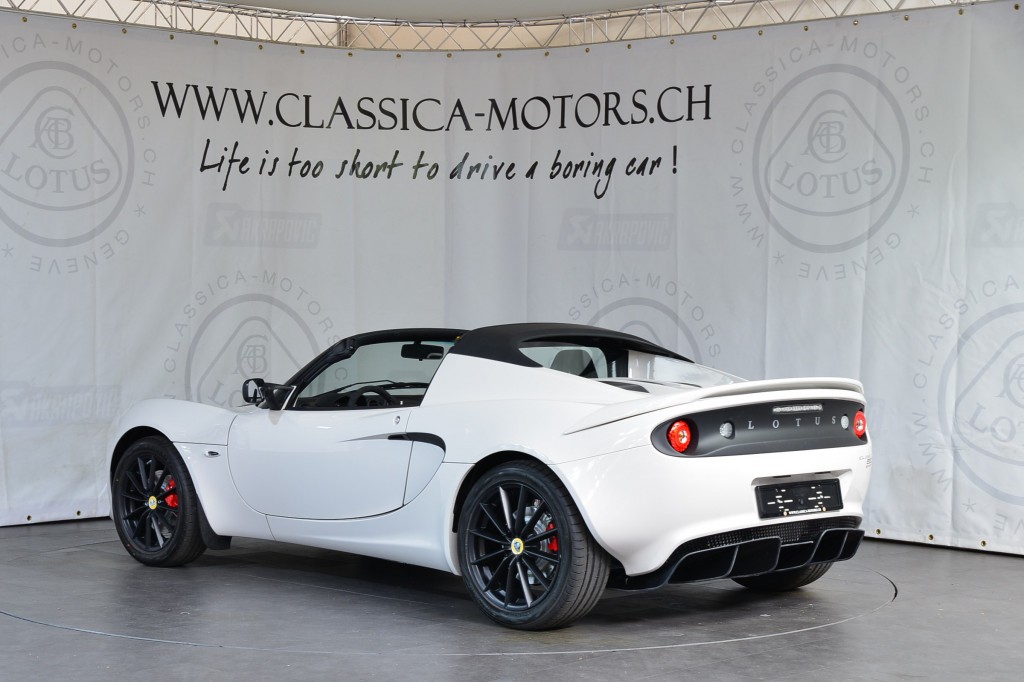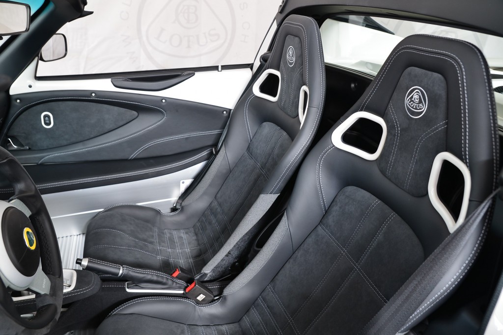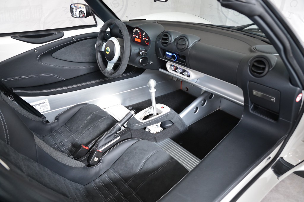 Peinture métallisée - Volant Alcantara - Isolation phonique - Pack intérieur Elise Grey - Coutures grises - Pack Alcantara - Aérateurs de ventilation en cuir - Black Pack - Cruise contrôle - Radio & 2 HP - Climatisation - Tapis de sol - Jantes noires - Suspensions Bilstein - Ressorts Eibach - Pinces de freins AP Racing rouges - Etc..