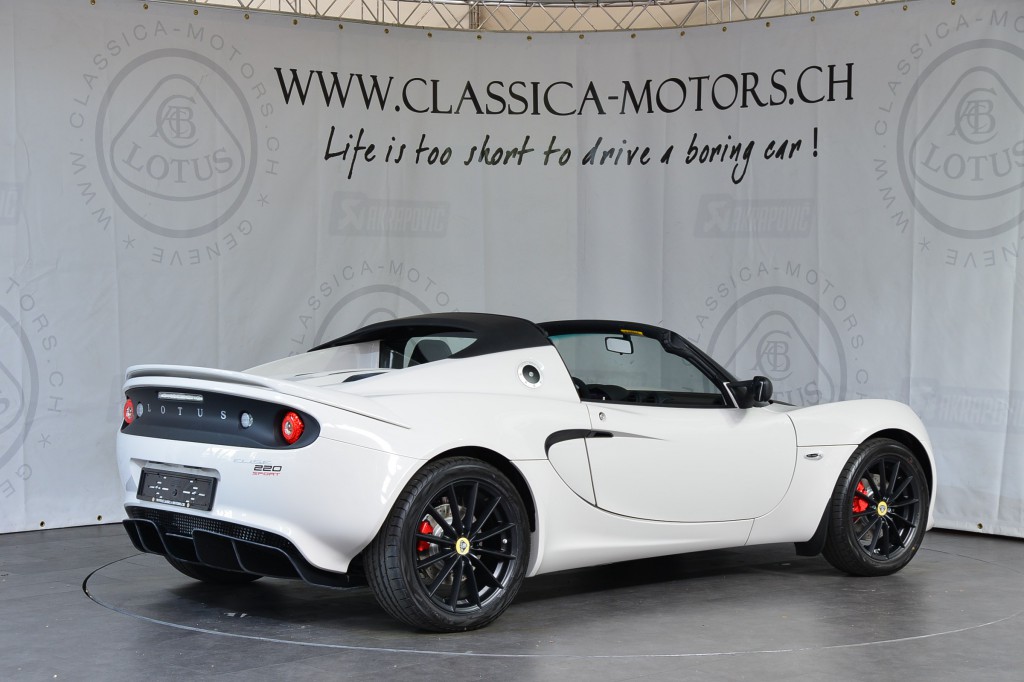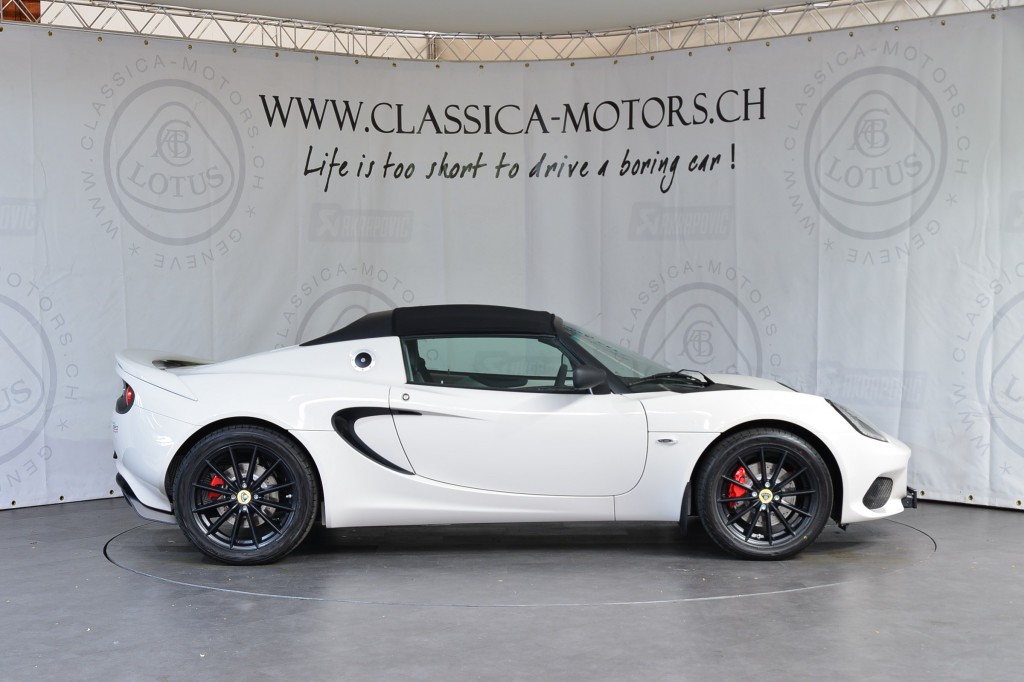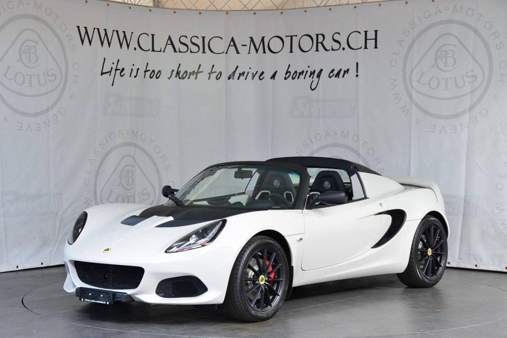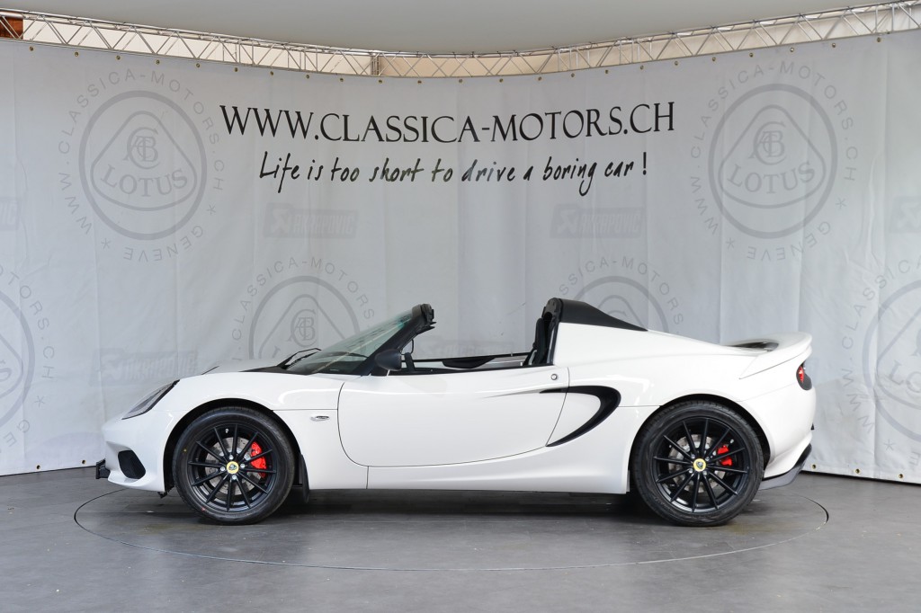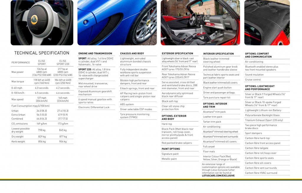 Peinture métallisée - Volant Alcantara - Isolation phonique - Pack intérieur Elise Grey - Coutures grises - Pack Alcantara - Aérateurs de ventilation en cuir - Black Pack - Cruise contrôle - Radio & 2 HP - Climatisation - Tapis de sol - Jantes noires - Suspensions Bilstein - Ressorts Eibach - Pinces de freins AP Racing rouges - Etc..