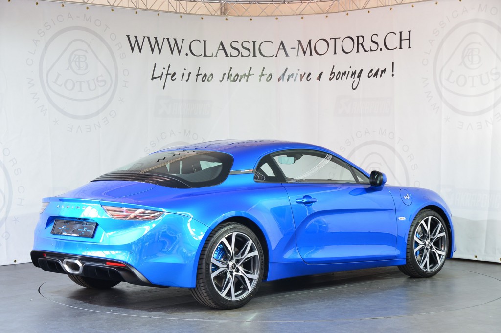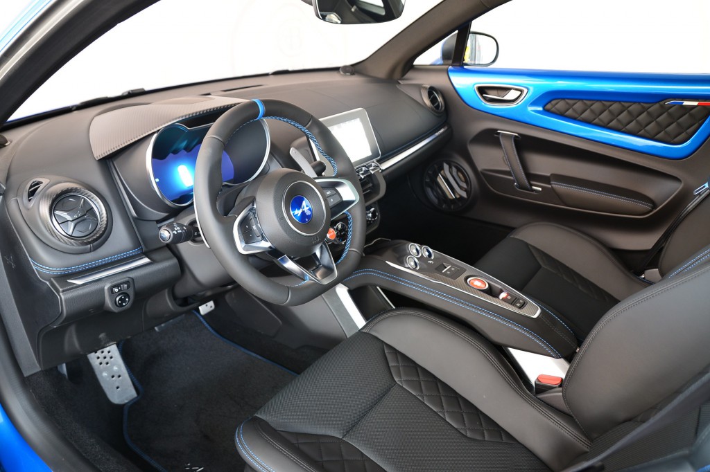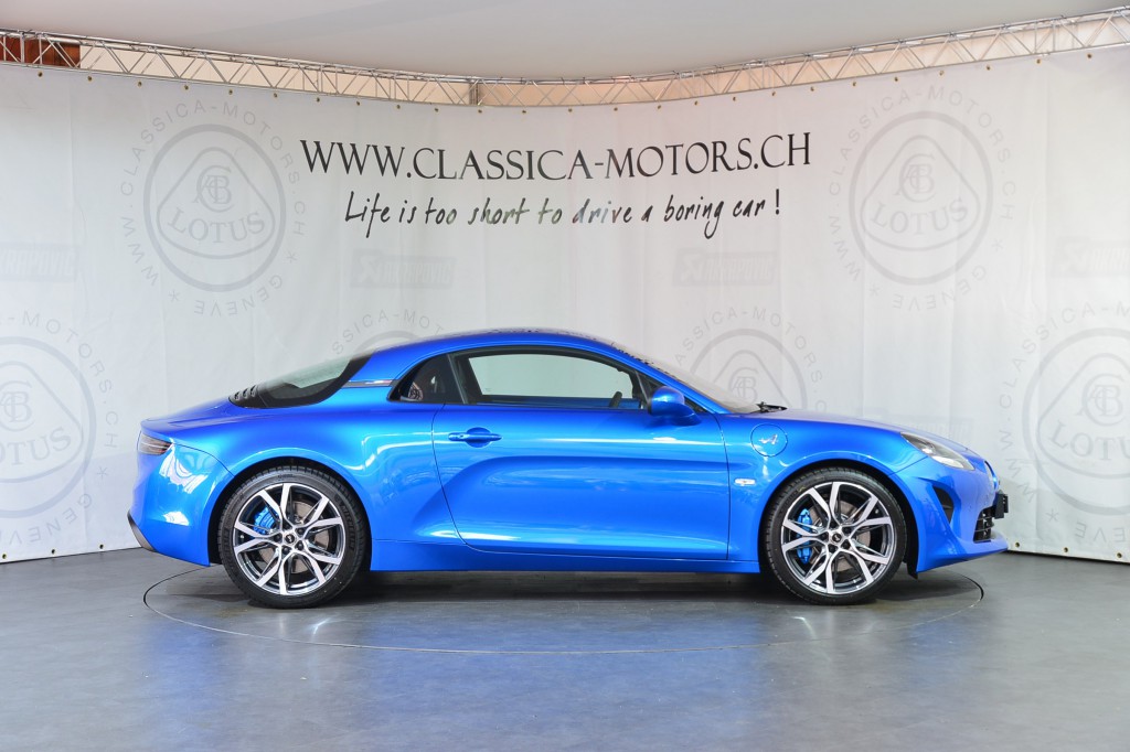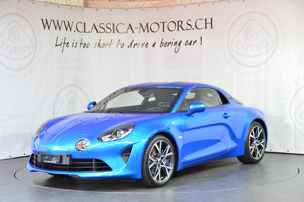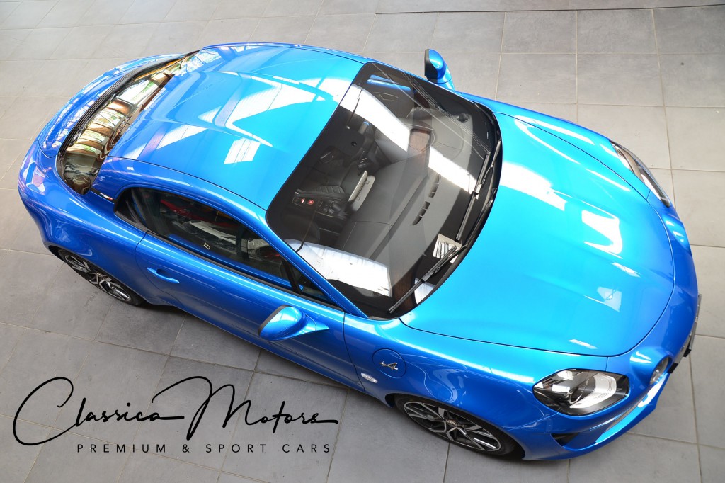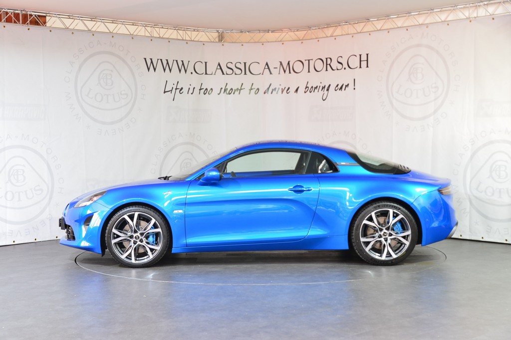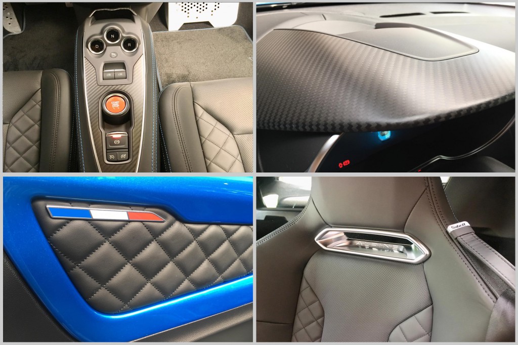 Equipement complet dont l'échappement Sport activable, le repose-pied aluminium, la peinture métallisée Bleu Alpine, le parc contrôle avant et arrière, l'Alpine Télémetrics, les freins haute performance, le pédalier aluminium, les étriers de freins bleu Alpine, les tapis de sol Alpine, les jantes Sérac 18'', les logos Alpine sur les ailes avant, les rétroviseurs électriques et chauffants, le système Audio Focal, Etc..